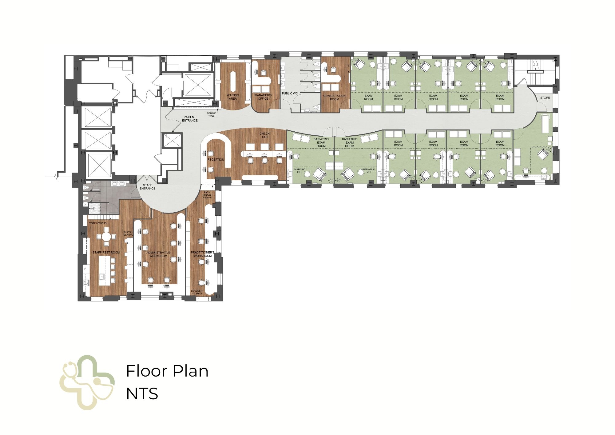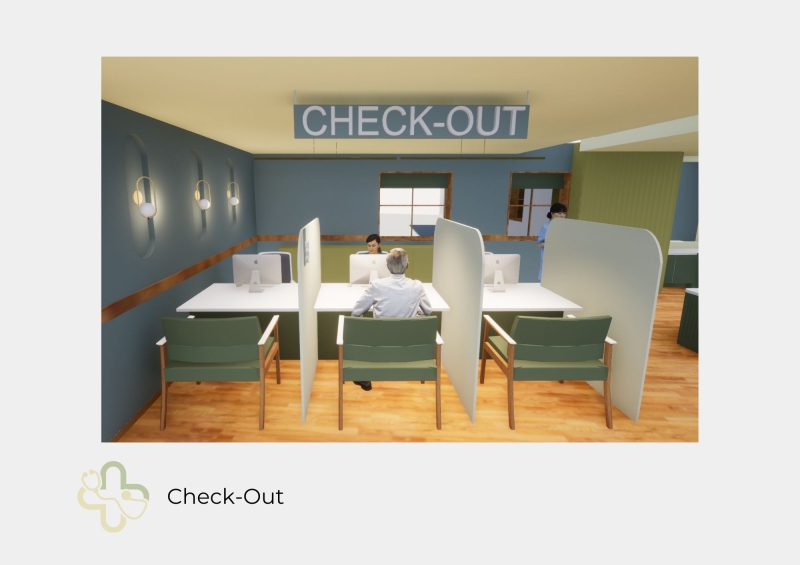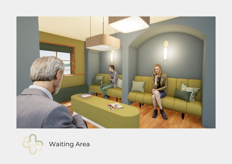 My proposal for the renovation of the clinic focuses on creating a welcoming environment for patients. Visiting a doctor when feeling ill can bring stress to a patient. Through my design choices, I aimed to put the patient at ease, while creating a pleasant workplace for the staff.
