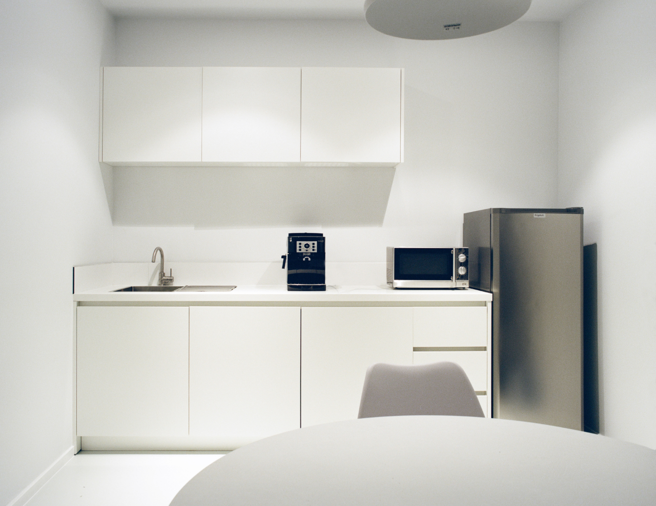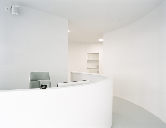 A former ING bank. A difficult space, with a lot of columns in the least wanted places, creating obstacles that are very difficult to circumvent. We decided to embrace them and include the columns in a sequence of curves that bring dynamics to the circulation and conviviality to the reception area.