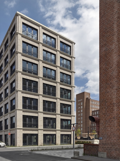 Masonry, architectural concrete and metal create atmospheric, technical-looking details that also support the creation of flexible, contemporary and spacious working environments in terms of both design and function.