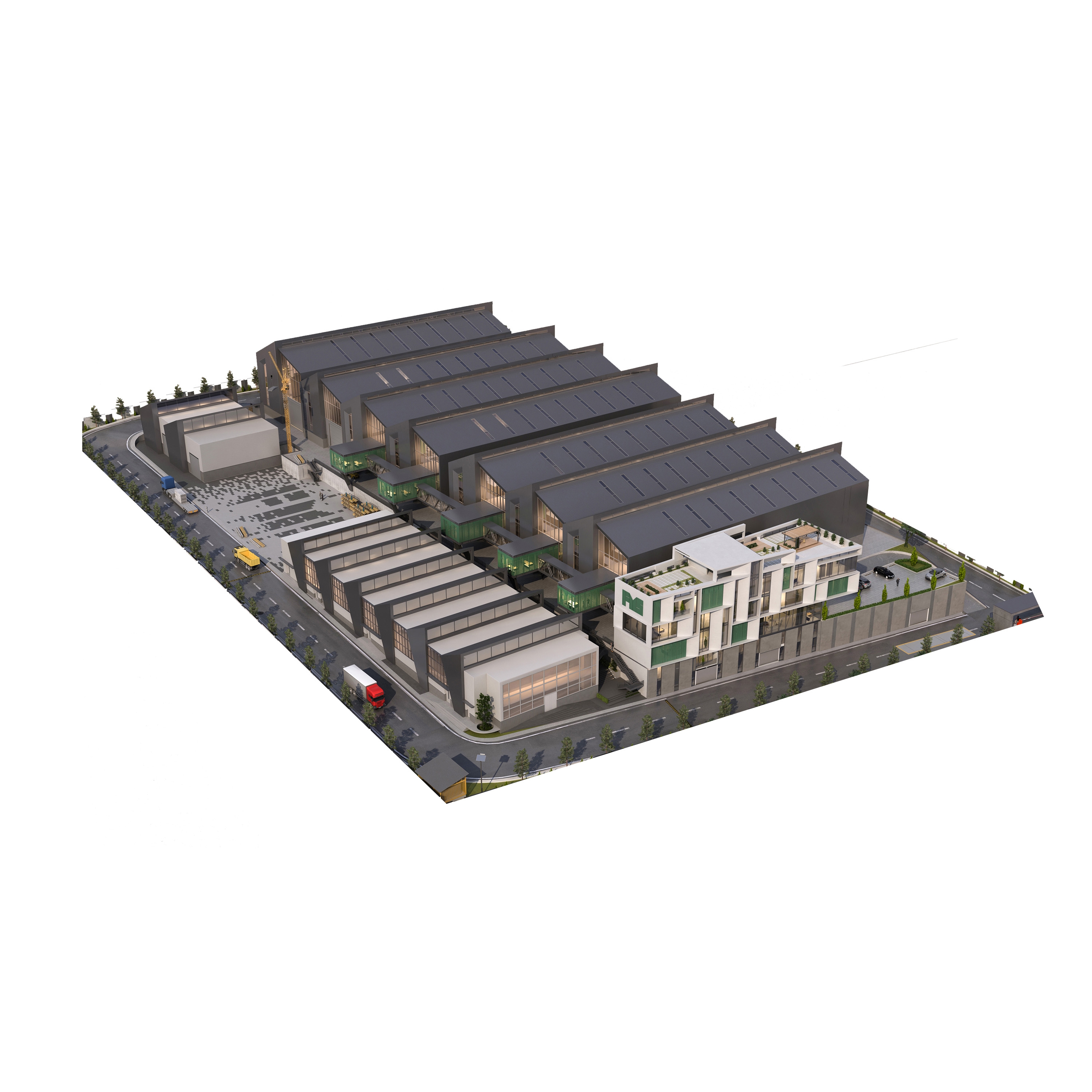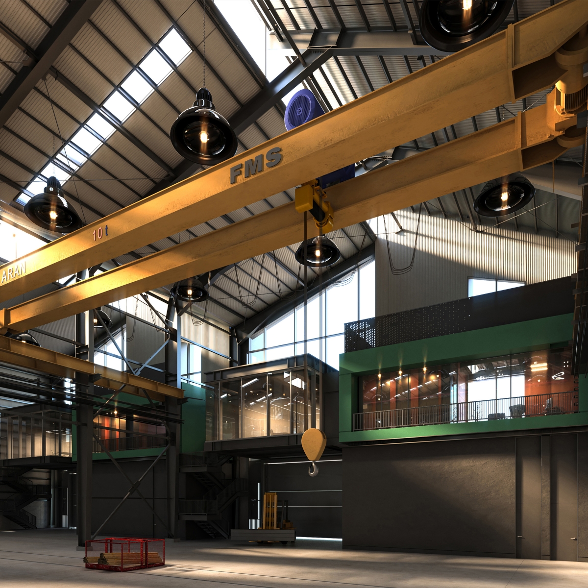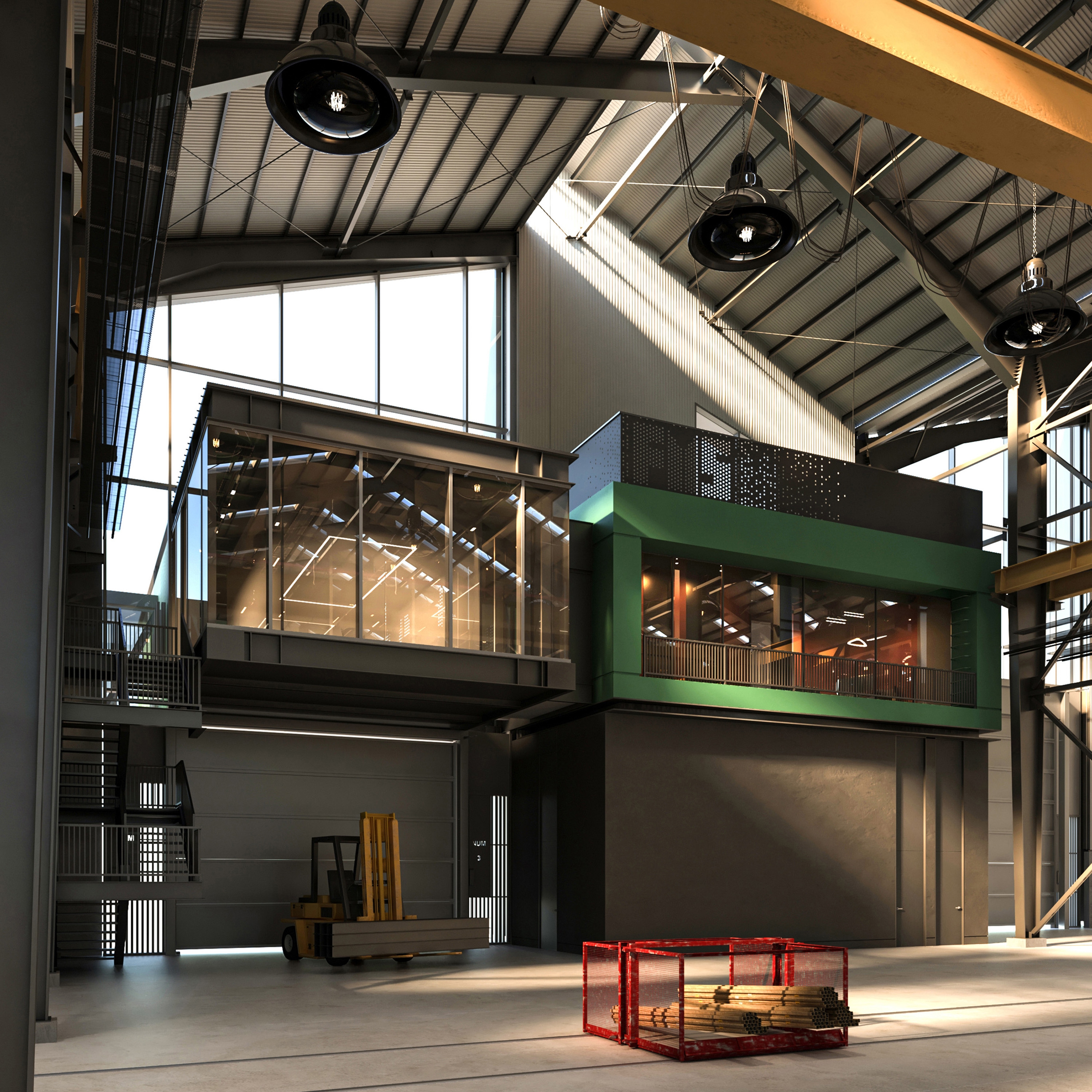 A project with an industrial use that is supposed to be active in the field of production of equipment and machinery related to the mining industry. The first challenge in the design was how to create an effective connection between the office building and the production sheds so that production could be fully monitored