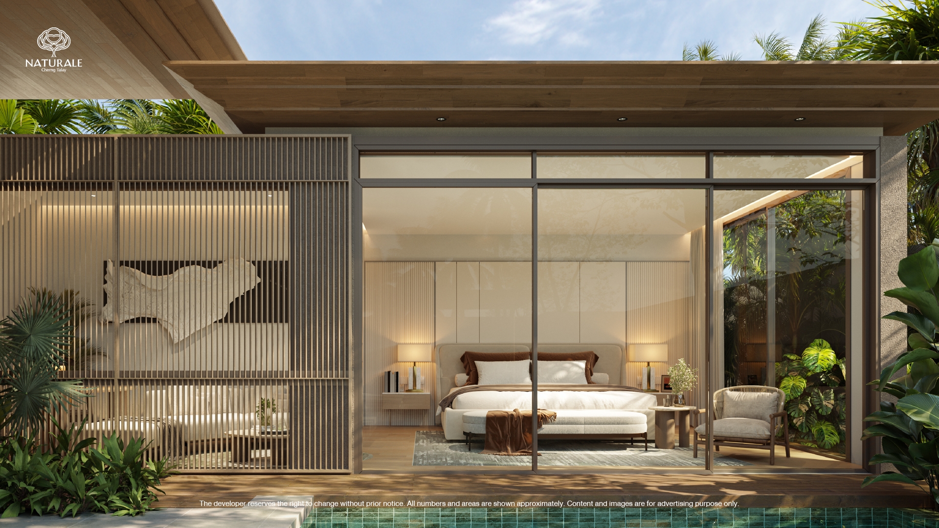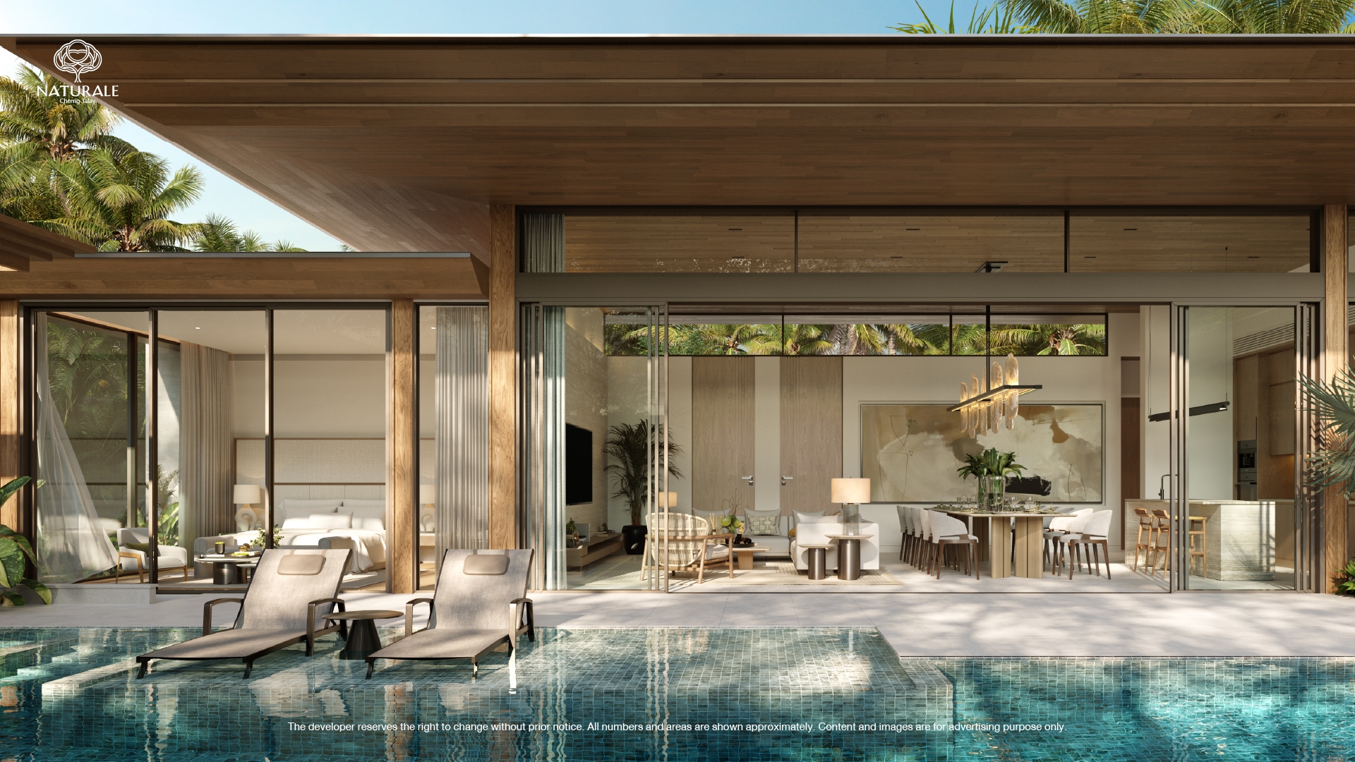 Naturale Phuket Private Pool Villas blend sustainable luxury with modern tropical design, reflecting profound consumer insight research aimed at solving consumer pain points. This exclusive project leverages materials research and testing to ensure safety and durability, offering a solution-oriented approach to residential design. Each villa is a testament to aesthetic elegance and functional innovation, featuring family-centric spaces designed with universal principles to accommodate the needs of every family member. The integration of food-grade kitchen tops and imported appliances underscores our commitment to safety and luxury. The outdoor saltwater swimming pool and family activity space are designed to foster family bonding and enjoyment, set against the backdrop of a lush landscape. Naturale Phuket stands as a model of sustainable luxury, incorporating locally sourced materials like hand-made teak wood to support local communities and minimize environmental impact. This project not only meets the criteria for aesthetics and innovation but also enhances the emotional quotient, offering families a space where luxury meets sustainability in harmony with the local environment.