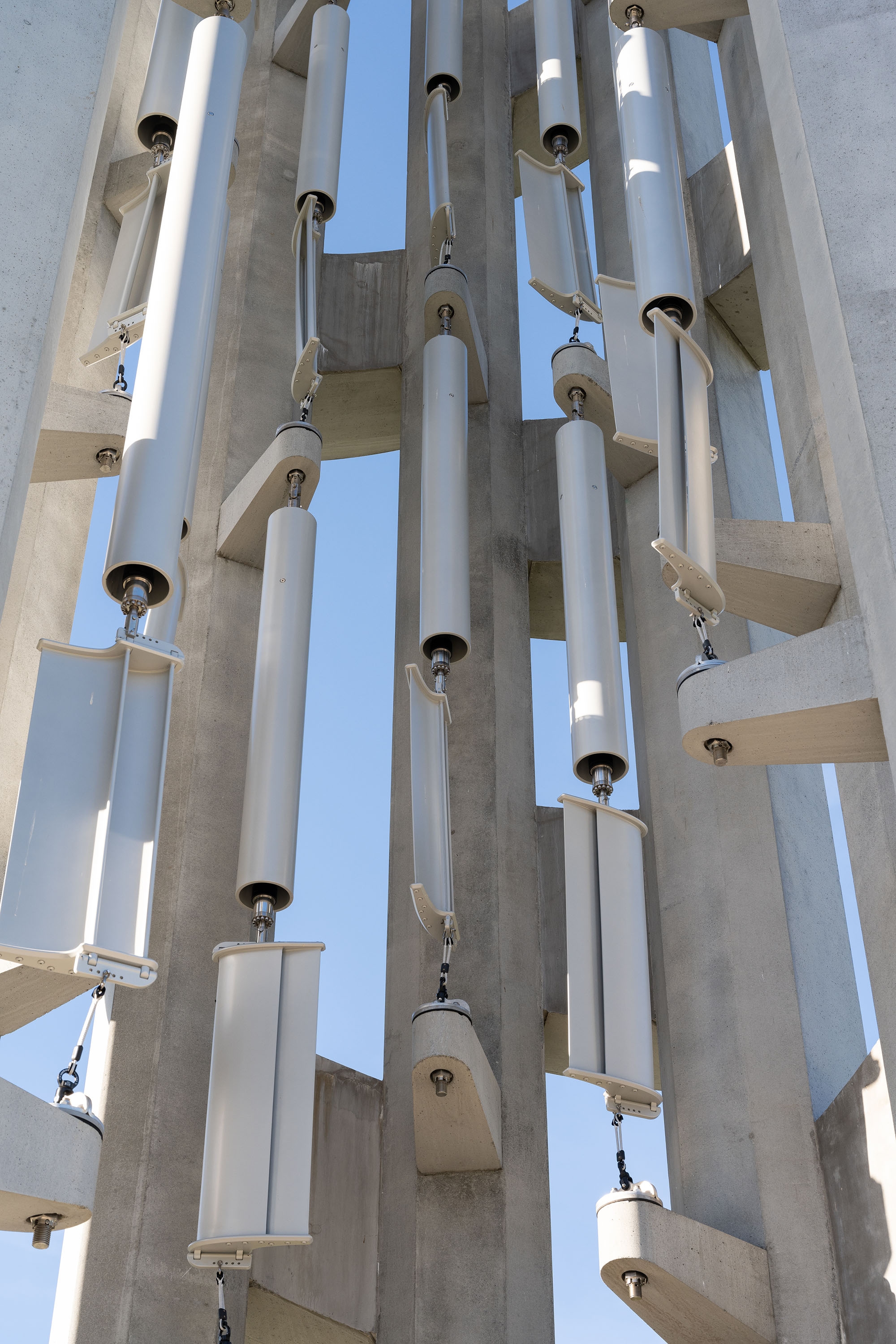The design team included a musician, chimes artist, acoustical engineer, wind consultant and sail designer. The scale and complexity of 40 chimes, with the variability of wind directions and velocities, required an interactive process of testing and simulation using musical tuning theory, chime mock-ups, computational fluid dynamic modeling, wind tunnel testing and digital acoustic lab simulation.