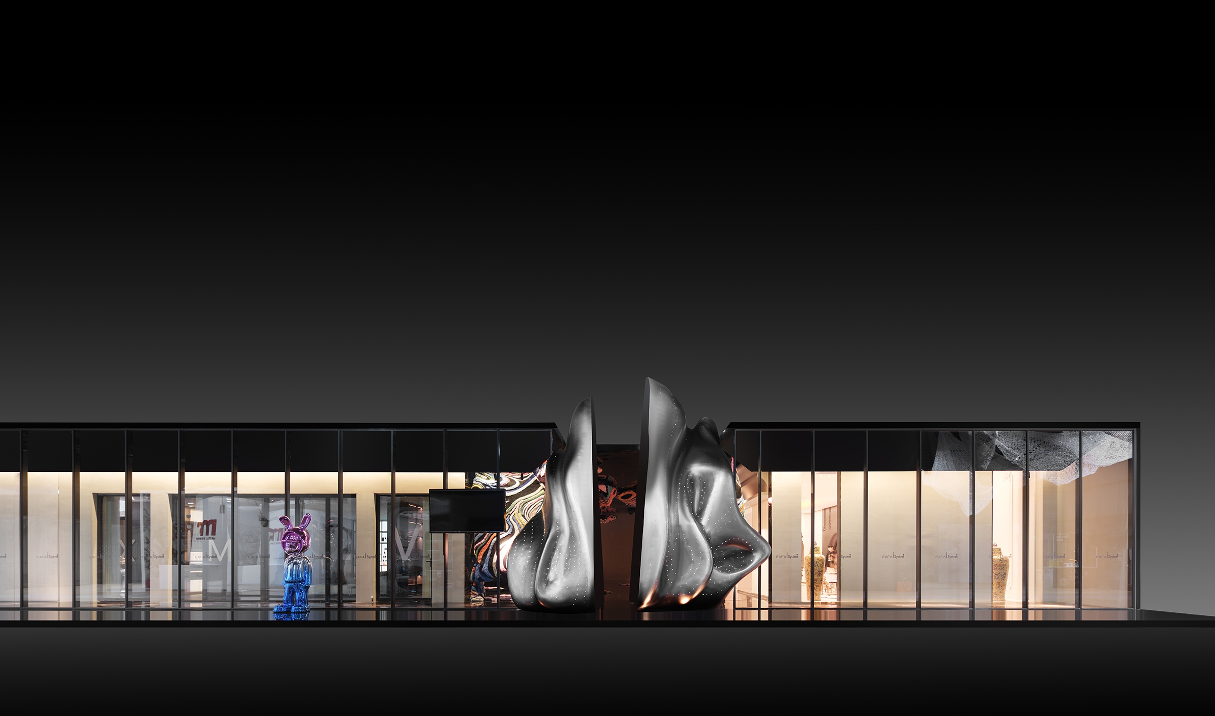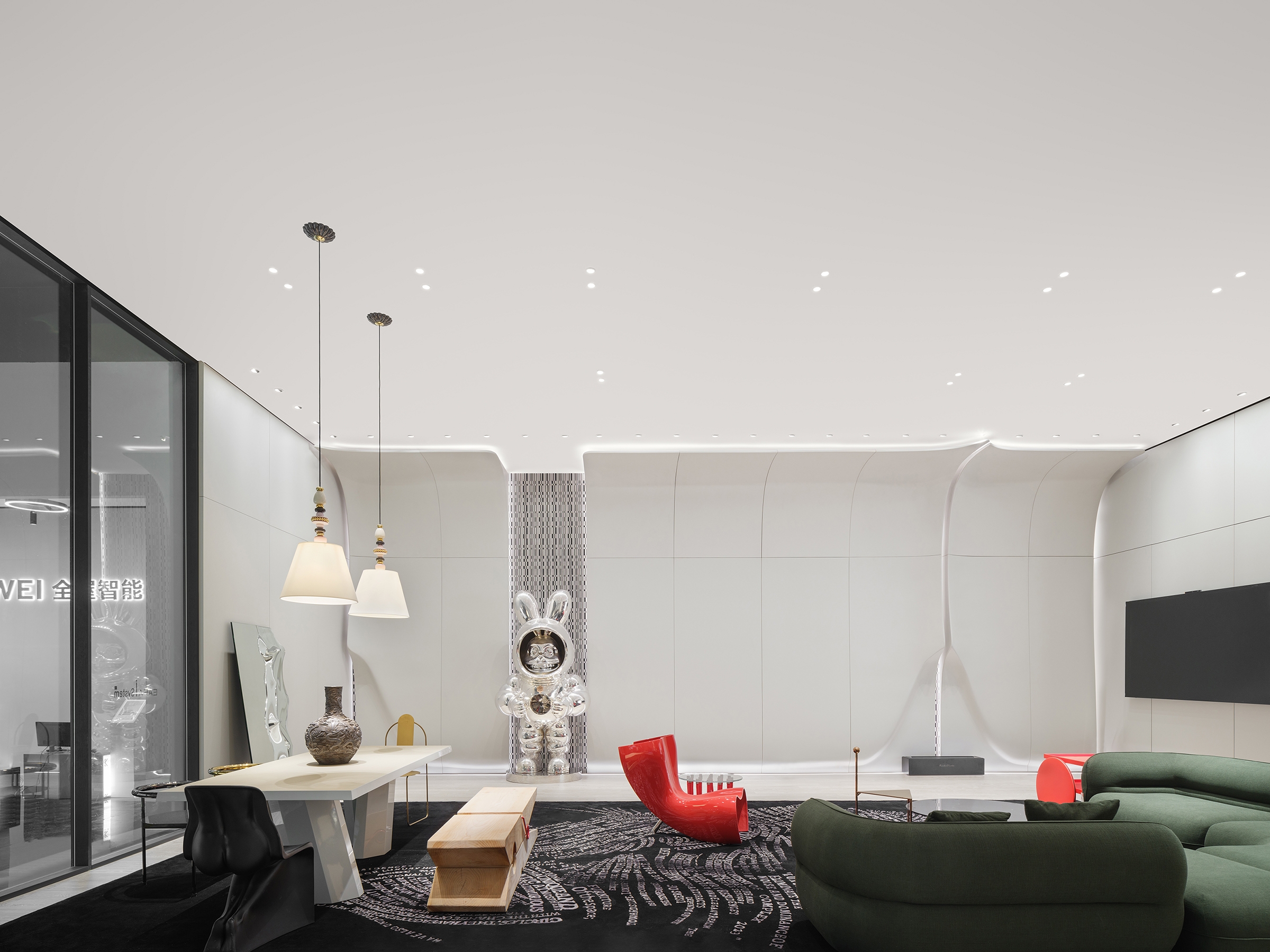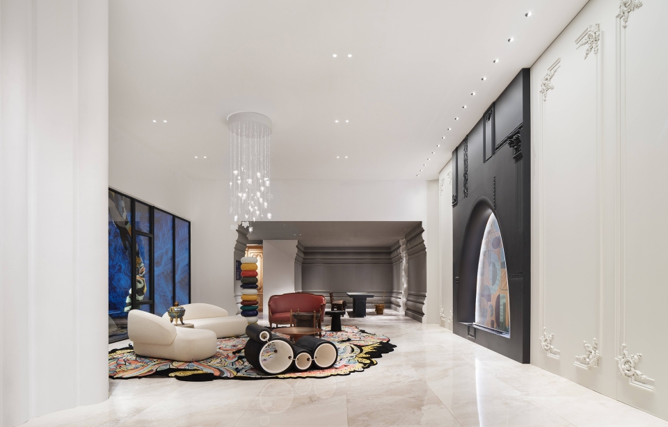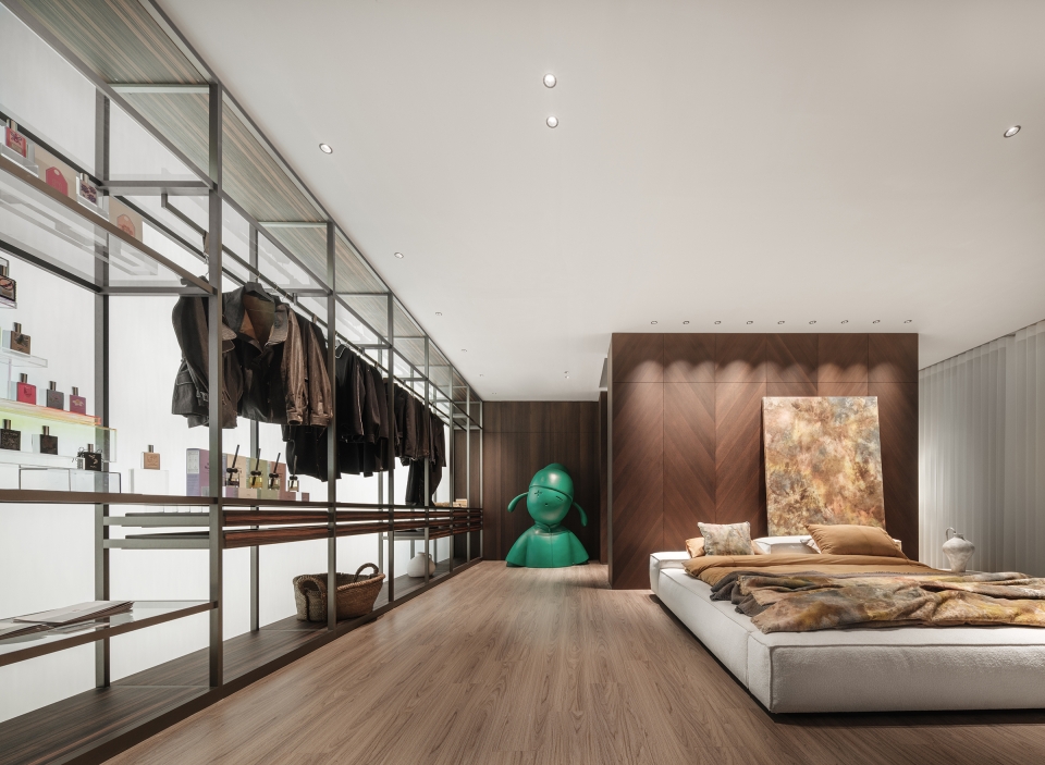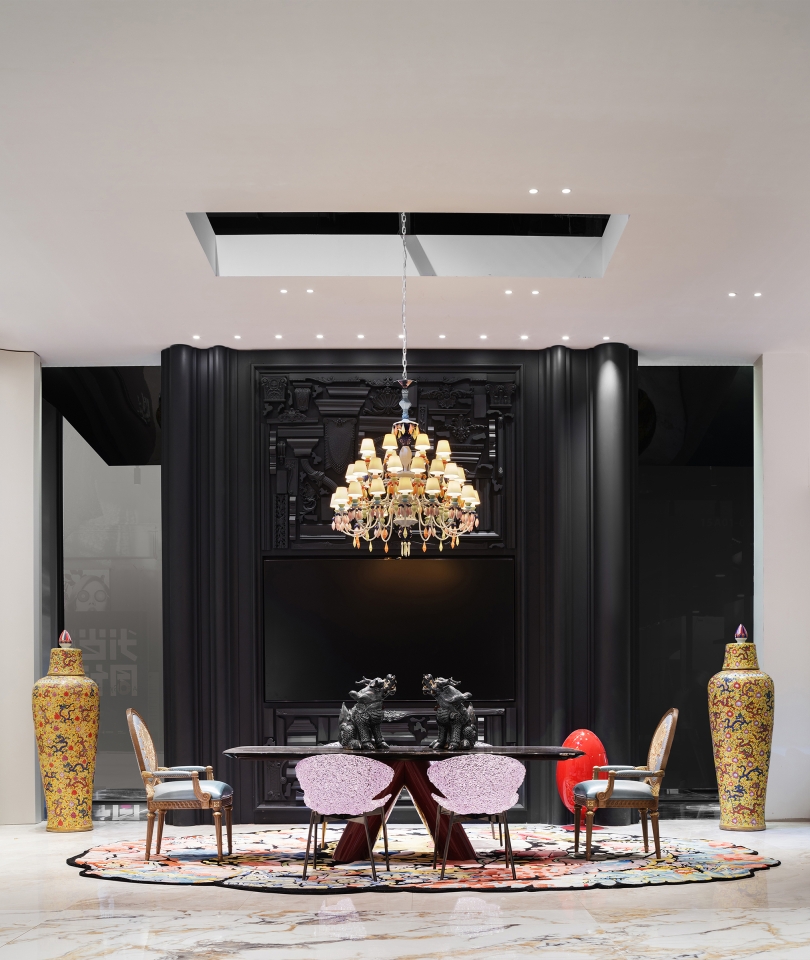 The space symphony echoes with the essence of both Eastern and Western cultures, where products not only embellish the scene but also assume their roles as protagonists within the entire ambiance. The ideal luxury abode transcends mere materialistic opulence to become a sanctuary for the soul. Upholding a harmonious design philosophy that balances material luxury with spiritual abundance, and where ambiance coexists with artistic conception, the designer masterfully weaves the idyllic scenes of Lingnan's landscapes into the fabric of lavish living. The front hall's corridor ceiling ingeniously employs mirror reflections to mimic the undulating state of water ripples, symbolizing that all who traverse will partake in the purest form of baptism.