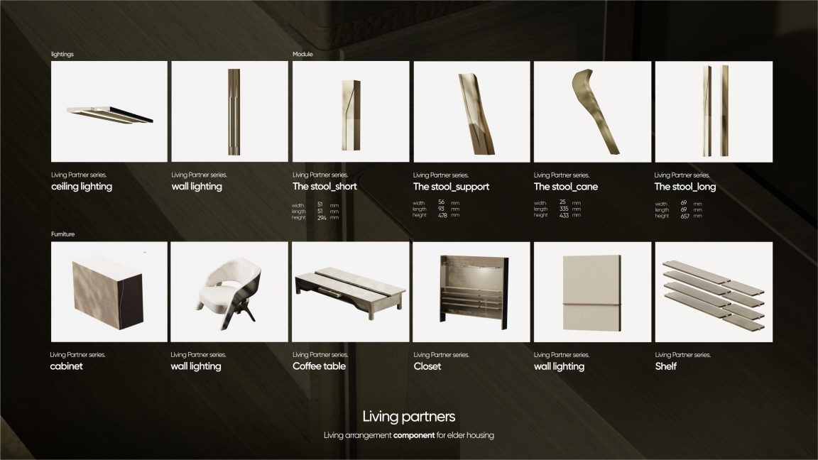 The project [Safe and Soft] proposes a personalized form of housing tailored for the elderly, addressing the paradox of high accident rates in homes where seniors should feel most secure. The solution involves renovating home structure to accommodate the physical needs of aging individuals through strategic spatial structure and interior furniture. Utilizing modular systems, I create adaptable structures that blend seamlessly with furniture, which name is the 'soft column', and it provides support without rigid barriers. Curved modules and smooth edges enhance safety and storage efficiency, while handles designed for grip aid mobility. A warm CMF, primarily leather and wood, promotes visual clarity and expansion. Recognizing age-related spatial perception challenges, they employ colors with distinct contrasts to mitigate accidents caused by misjudgment.