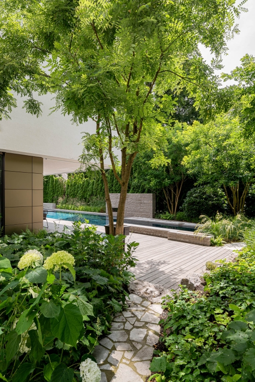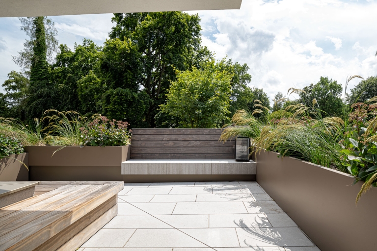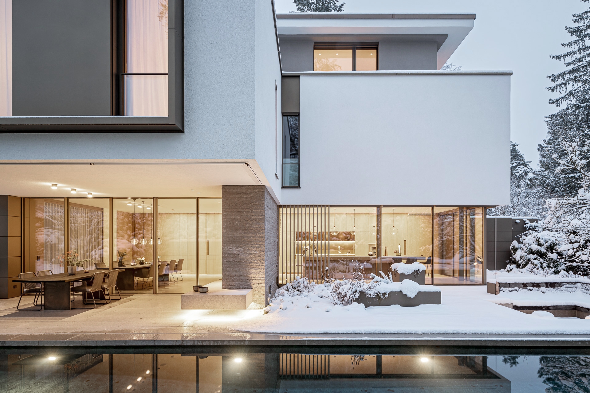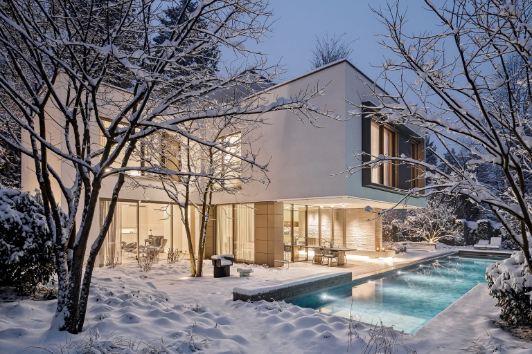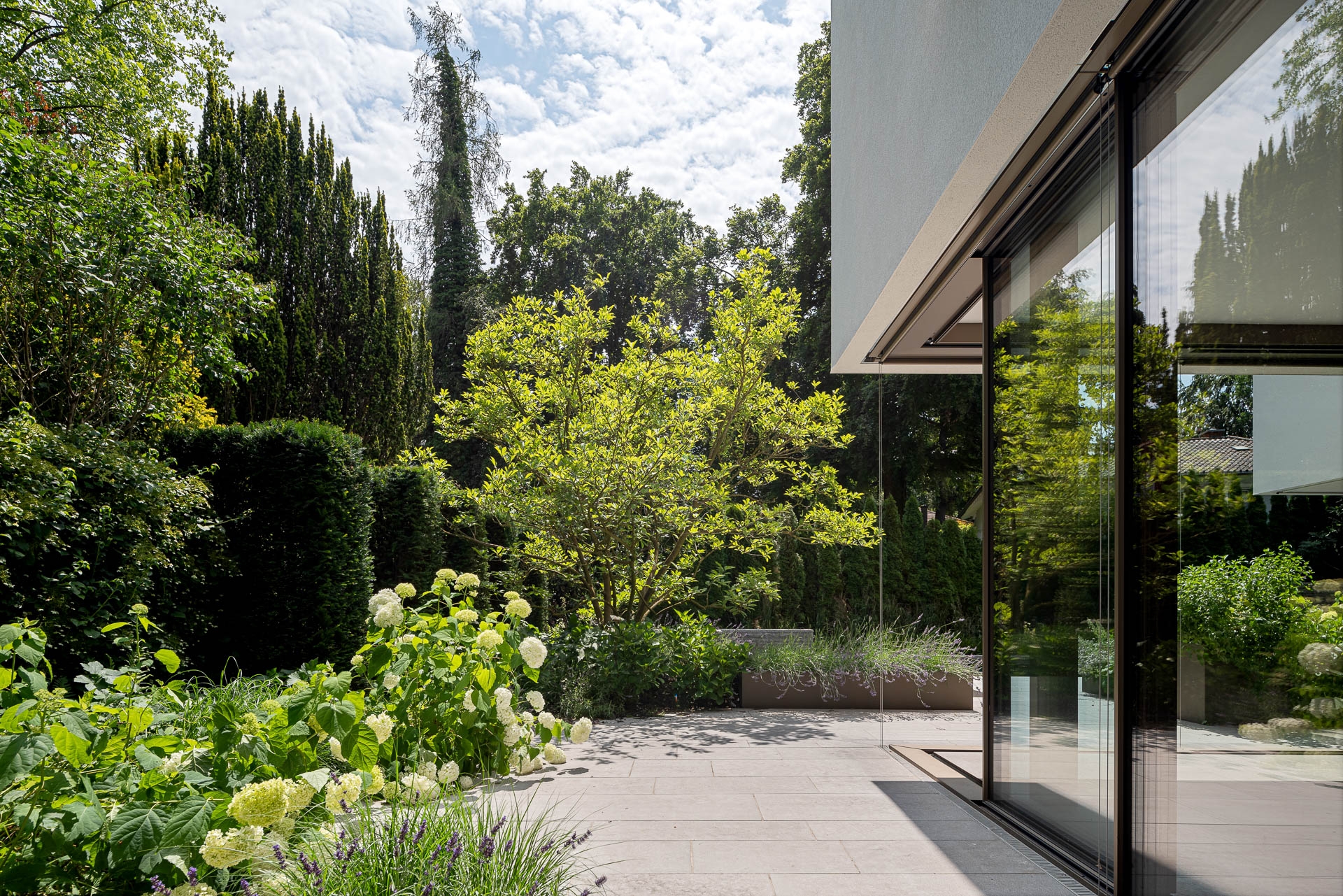 Next to a giant outdoor pool there was almost no space for a garden. So, the idea was to put the garden onto the roof and work close to the concept of a zero-seal house which means the sealed areas are given back to nature on the rooftop.