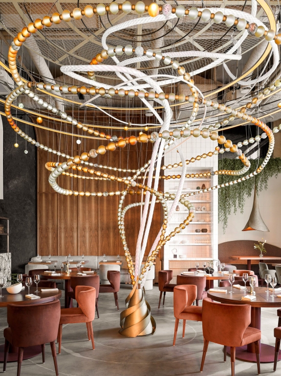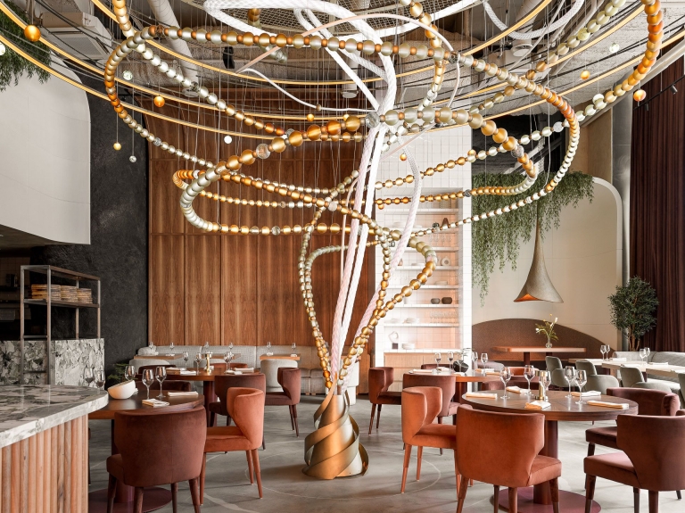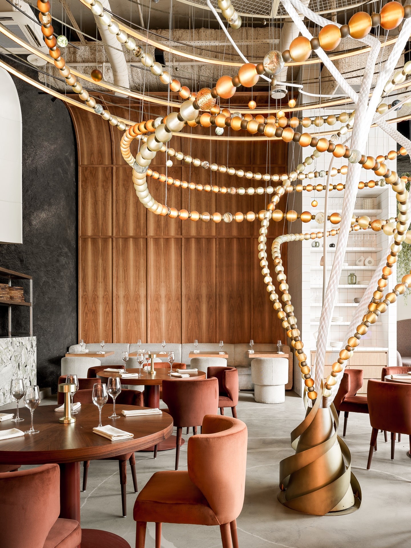 The result was a Feng Shui space dedicated to the five elements that hides many symbols and energies. All five elements - water, earth, air, fire and ether are present in the space of "KAFE 2•8•8". In the perception of the project, the authors involve all six senses - smell, taste, hearing, sight, touch and intuition, so that attendance becomes a holistic immersive experience for guests. The goal of the project is to create a space that brings people together, gives delicious food for their body, warmth to their soul and satisfies the curiosity of their mind.