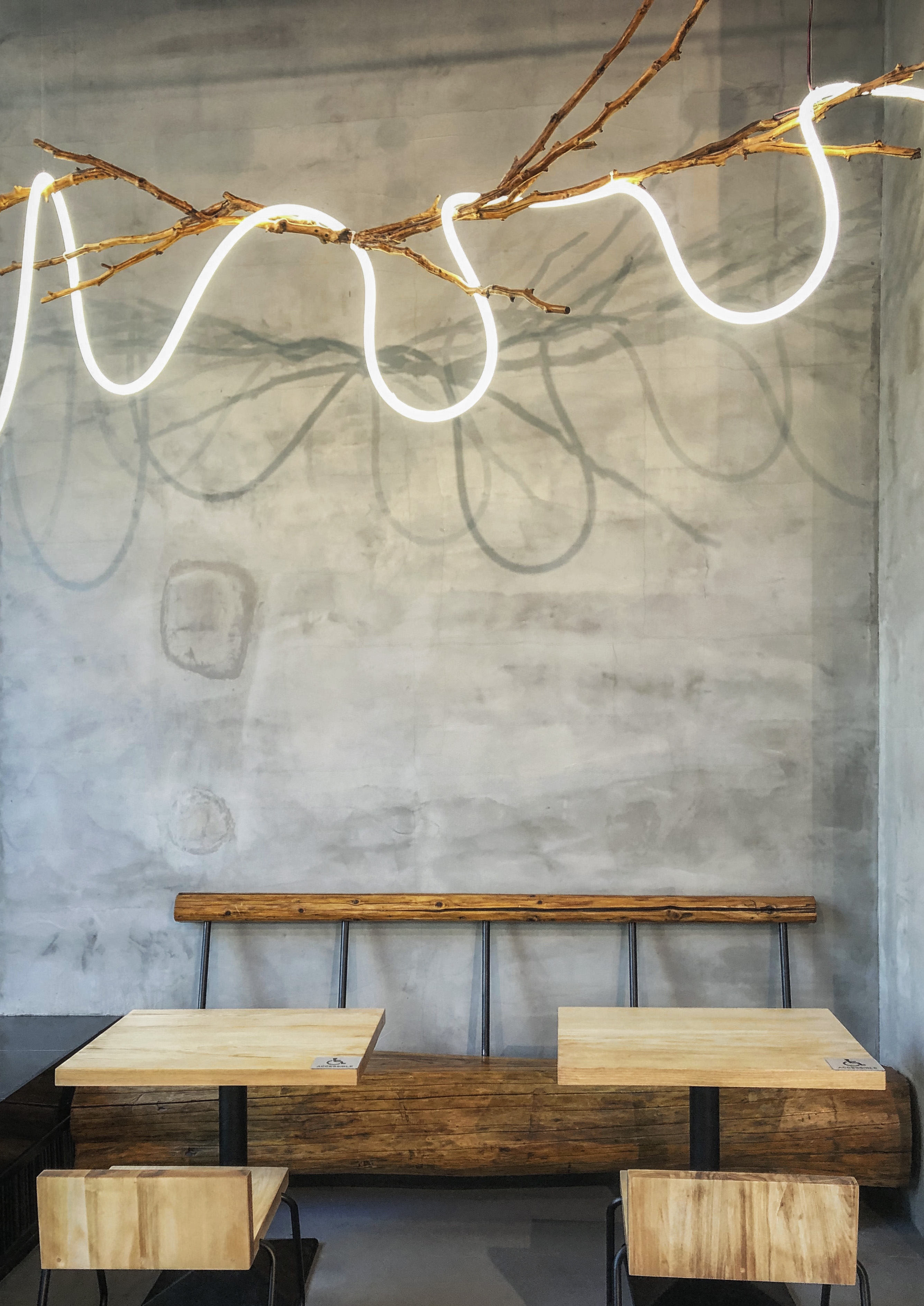 In terms of design, the store's benches are crafted from reclaimed timber and stacked stone. The aged wood originates from dismantled Japanese wooden structures, while the stacked stone was once the foundation supporting floorboards made from aged trees in traditional Japanese folk houses. By incorporating these enduring materials, we aim to create a space that will stand the test of time, remaining relevant and inviting for generations to come.