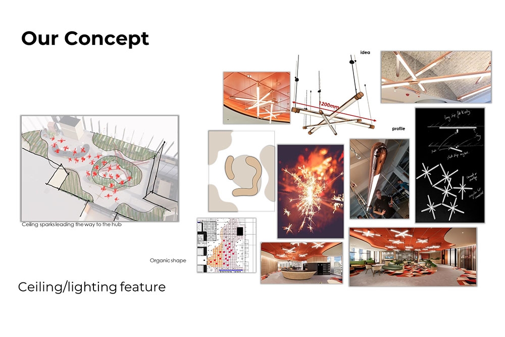 The "spark" concept is woven throughout the design, serving as a metaphor for the user experience. The space is intended to make everyone who enters feel like a star, setting a sense of excitement and possibility. By embracing organic shapes and natural materials, the design strikes a balance between the primal forces of nature and the innovative spirit of human ingenuity, creating an environment that is grounding and uplifting.