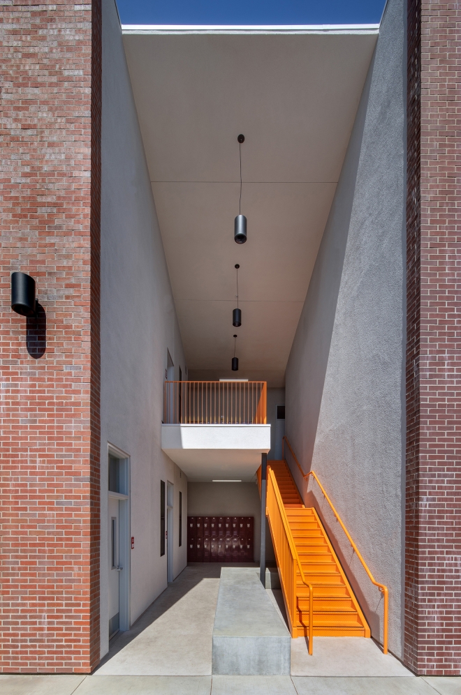 Additionally, the building anchors the campus even though it’s on a sliver of the site away from the main play areas. Instead of setting itself apart from the rest of campus it is now visible as a beacon.