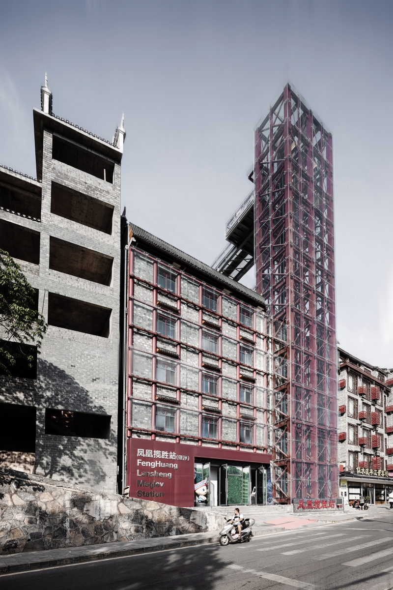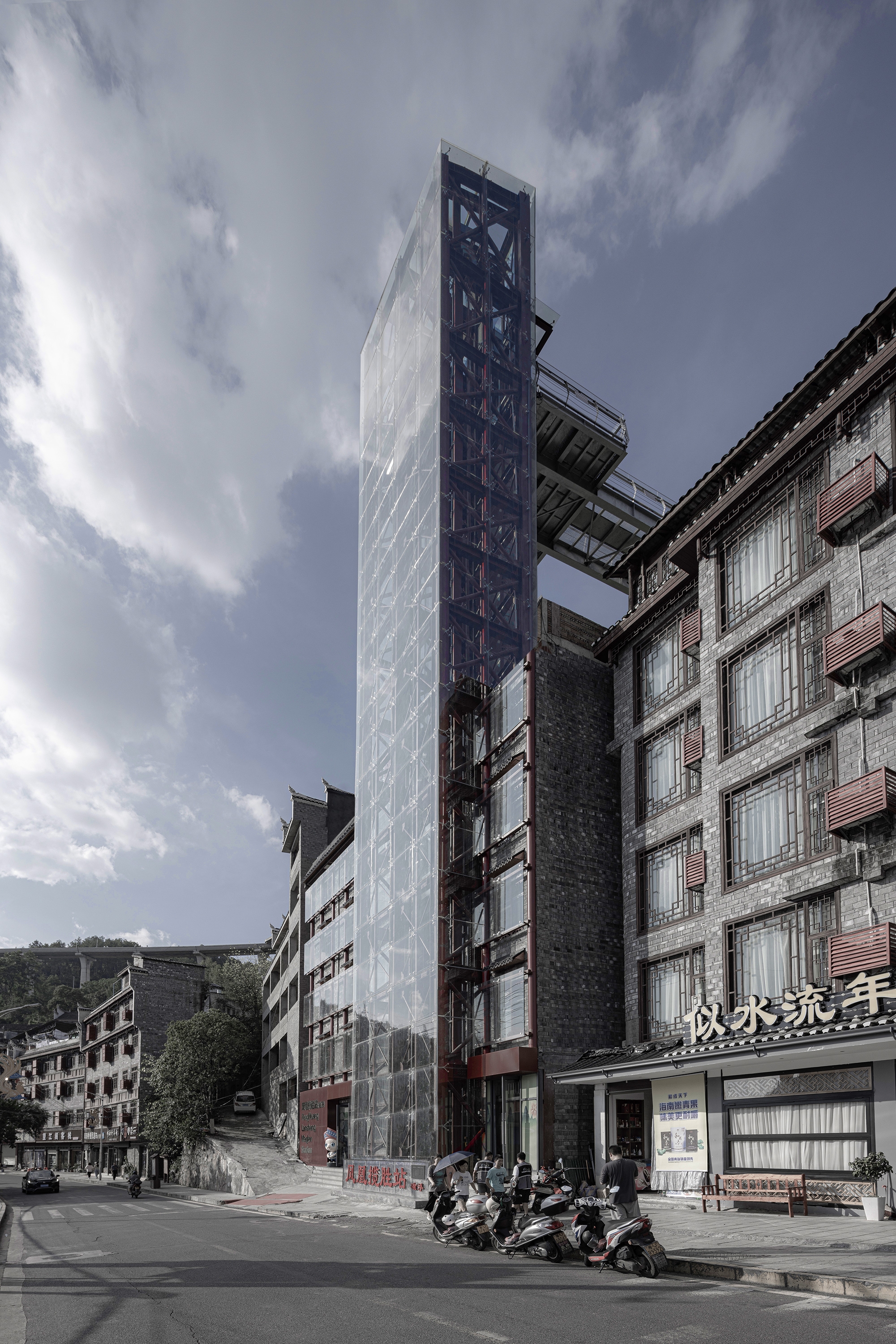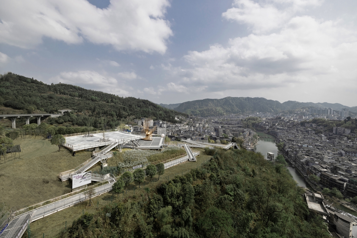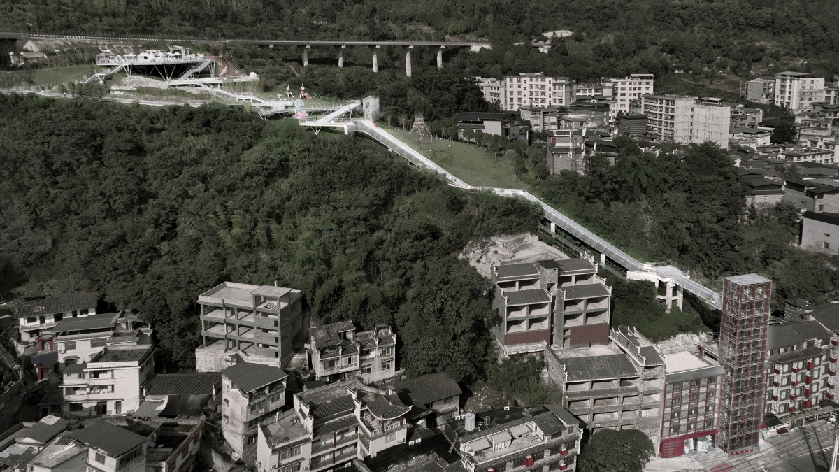 The project is mainly made of steel. It echoes the modern station with low maintenance cost and floats over the hills with high transparency. It connects to the ground with a point-like manner to minimize the damage to the existing vegetation.