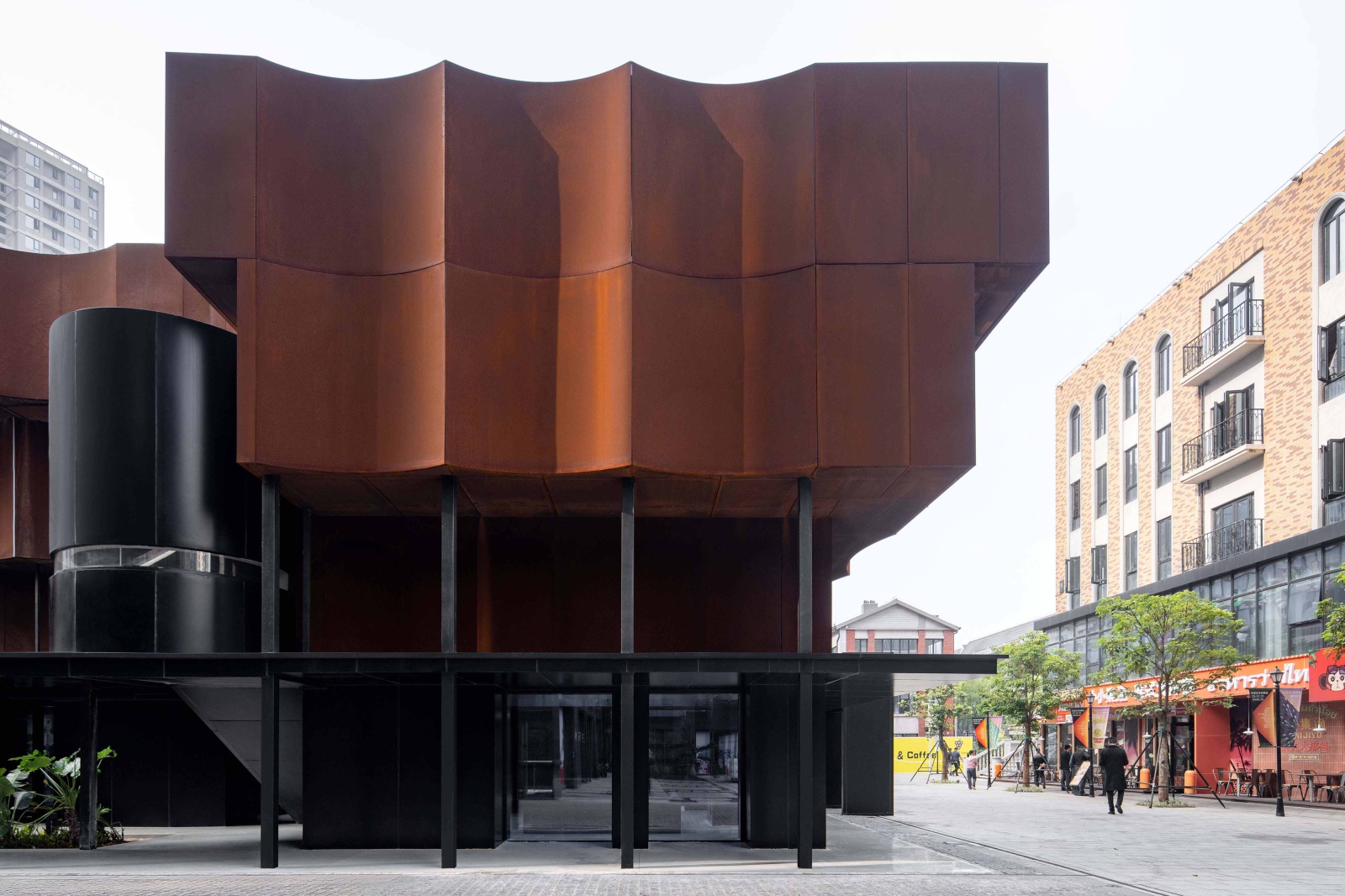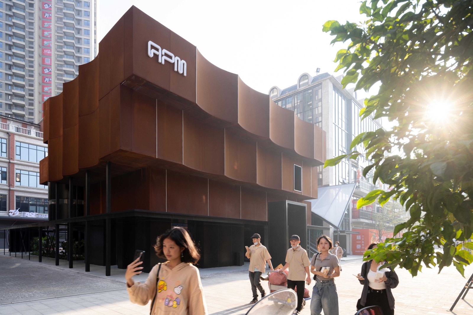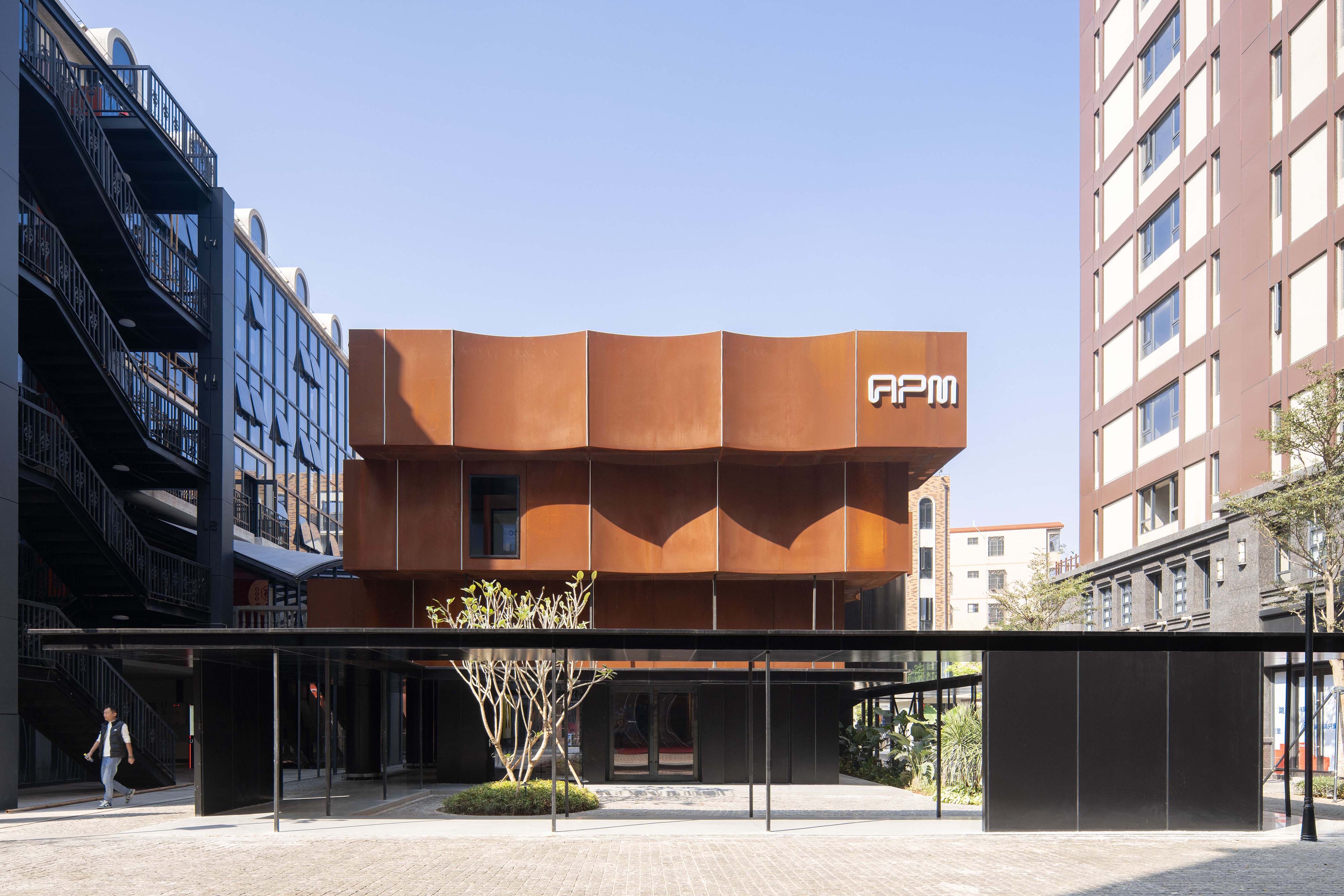 Apm Gallery is a building renovation project in Haikou GAOXINGLI,a commercial block in China.It has been transformed into an art gallery,infusing contemporary art into the block.A ring of modestly scaled corridors encircles the original building to guide foot traffic and invite people to approach. Openings that punctuating the ground-level exhibition walls help extend the dialogue outdoors,where passersby could catch glimpses of the indoor artworks. Art journey then starts from curiosity. The two-storey structure is wrapped by undulating corten steel,unfolding across a sequence of corridors and courtyards. Ascending from the corridors,three volumes gracefully stack,each overhanging to allow the new facade to bypass the eaves of the original building.Inside,the black gallery and the white gallery contrast with each other,providing unique exhibition experience for visitors.