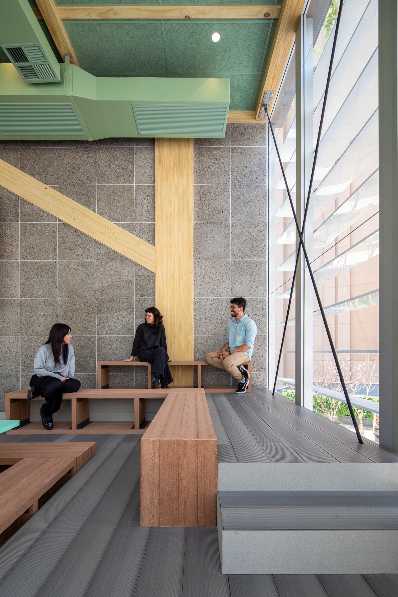 The choice for this project was to use engineered wood, from the ceiling to the floor, which significantly reduced the carbon footprint, since wood absorbs carbon dioxide instead of releasing it into the atmosphere. Since a significant portion of the wood is concealed by coverings, an opening was incorporated into the design for the walls to convey to visitors that the internal structure is made of wood. Furthermore, this project is based on the prefabrication technique, with a portion of the construction taking place inside an industrial warehouse.