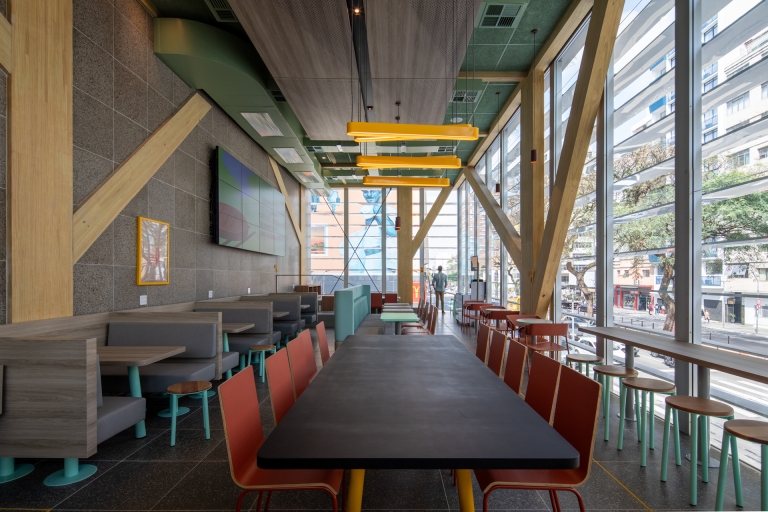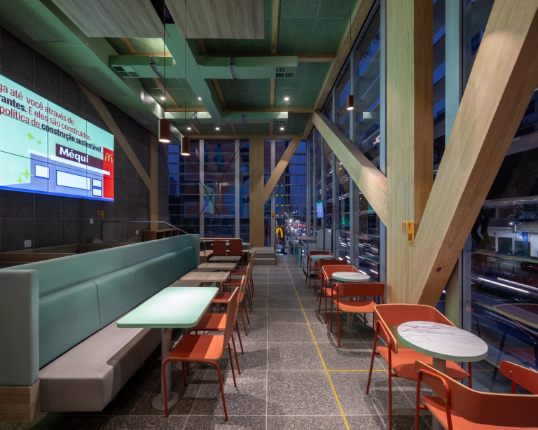 McDonald's has just opened a new unit in São Paulo, in the Paraíso district. Located in one of the busiest areas of the city, the restaurant marks a major step in the evolution of sustainable practices already adopted by the global restaurant chain, through what they call the Recipe for the Future. In addition to maintaining the measures that McDonald's has adopted over the years, the new "Méqui" moves even further towards sustainability, creating a restaurant that exceeds all expectations. Its architecture was by an architectural firm that constantly reinforces its commitment to environmental protection and innovation.