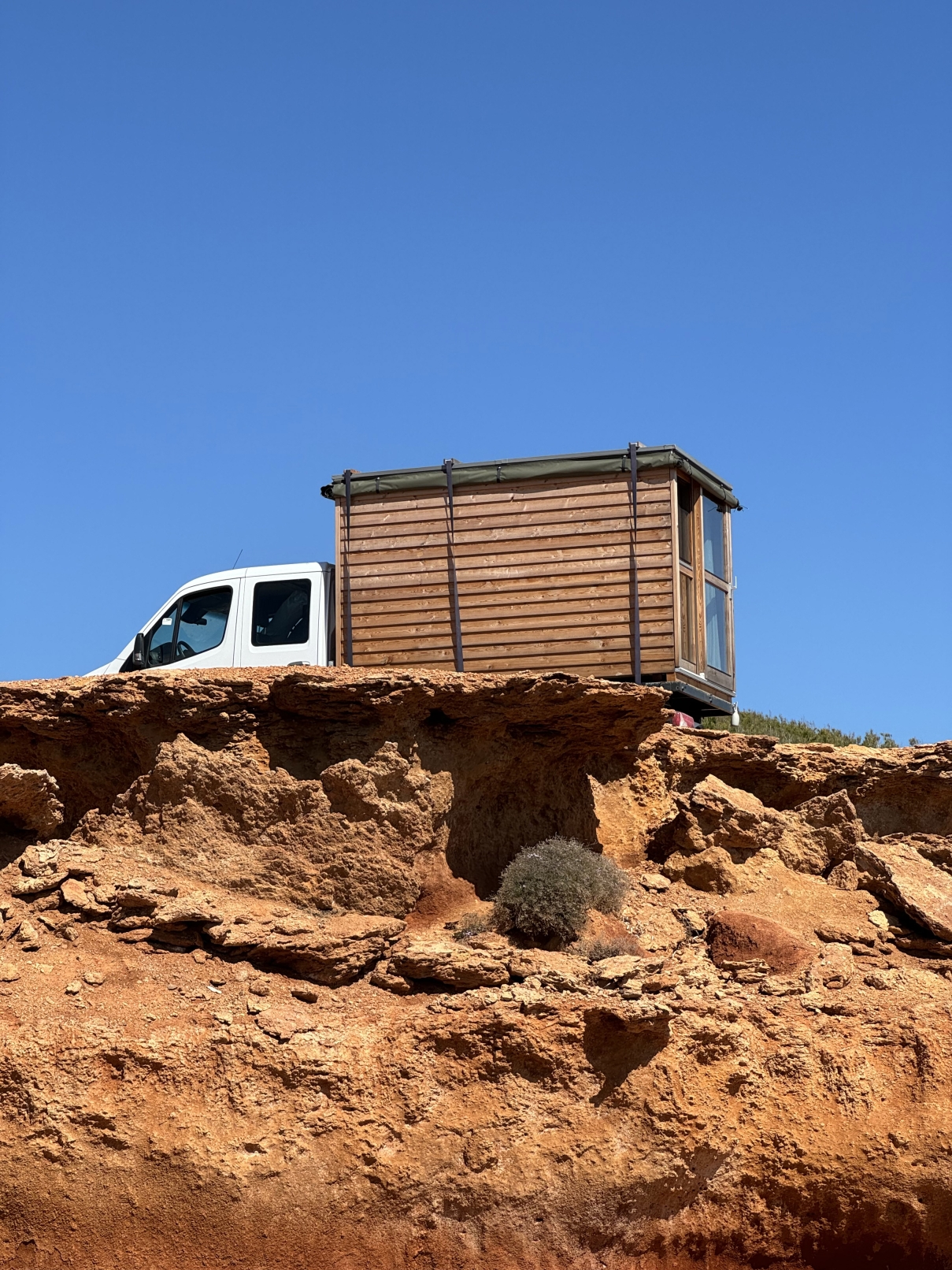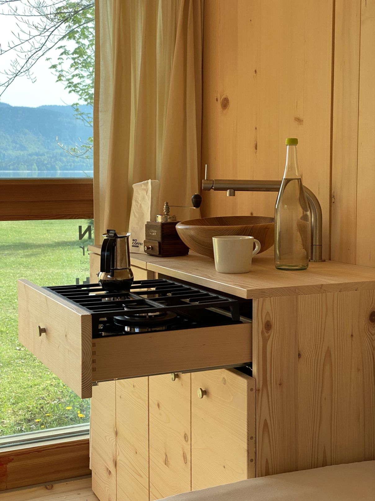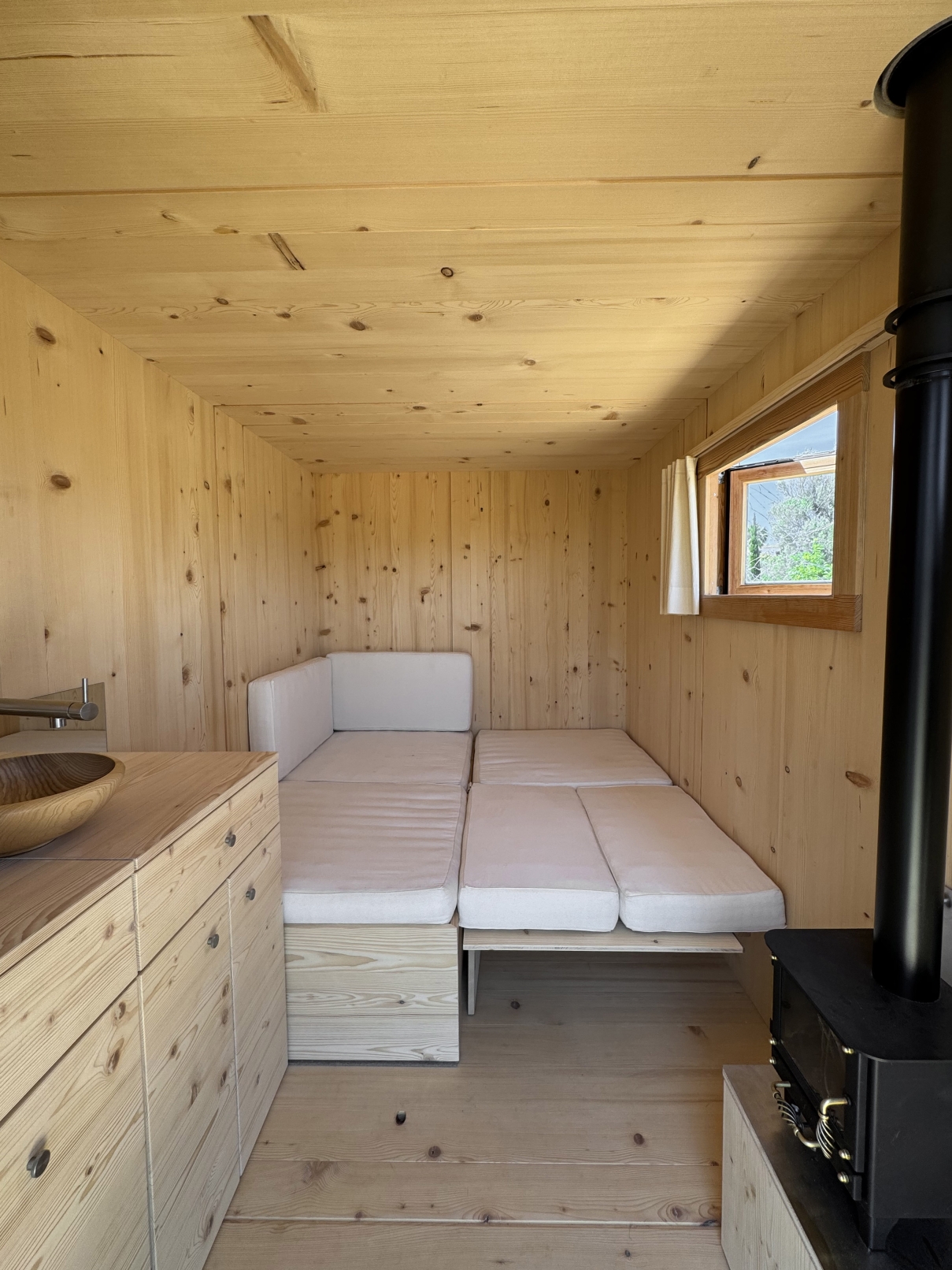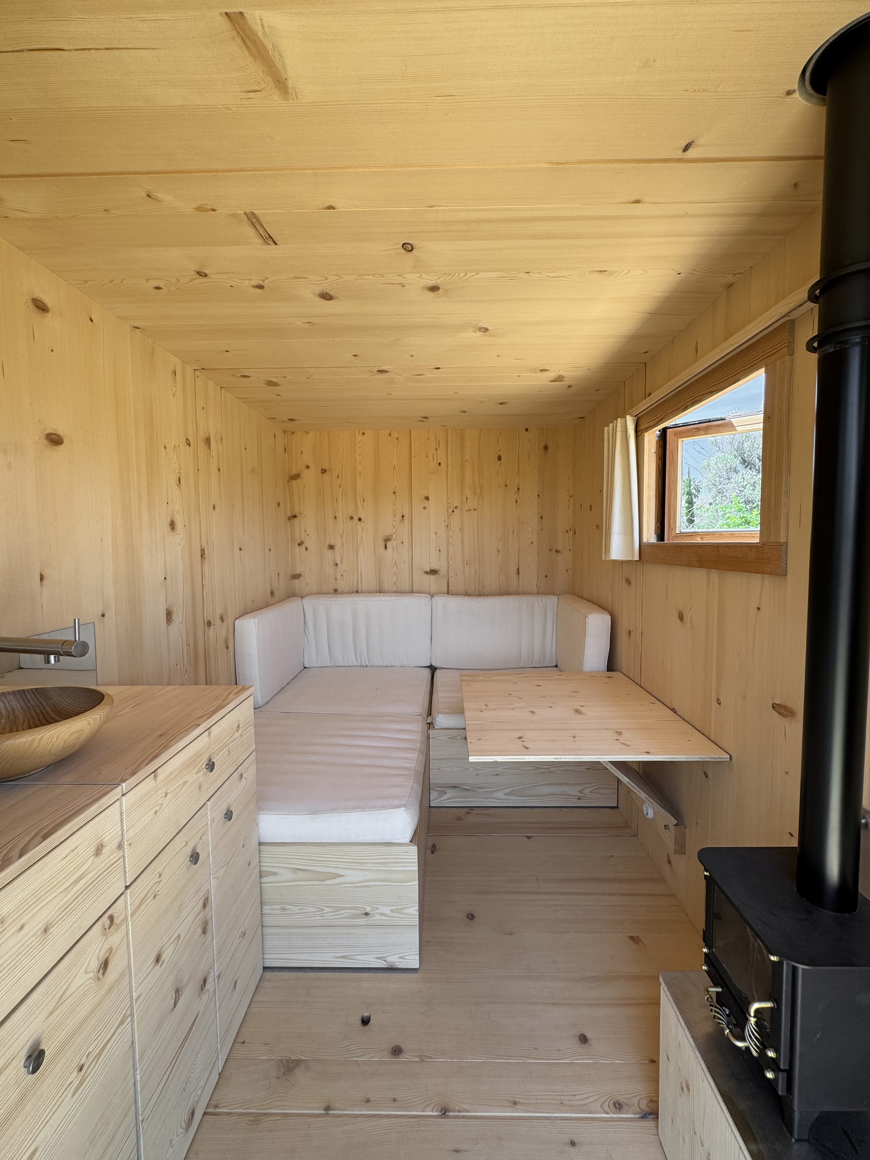 A pure mobile living/working space module, made from massive wood, free of chemical treatments, glue & plastic.
