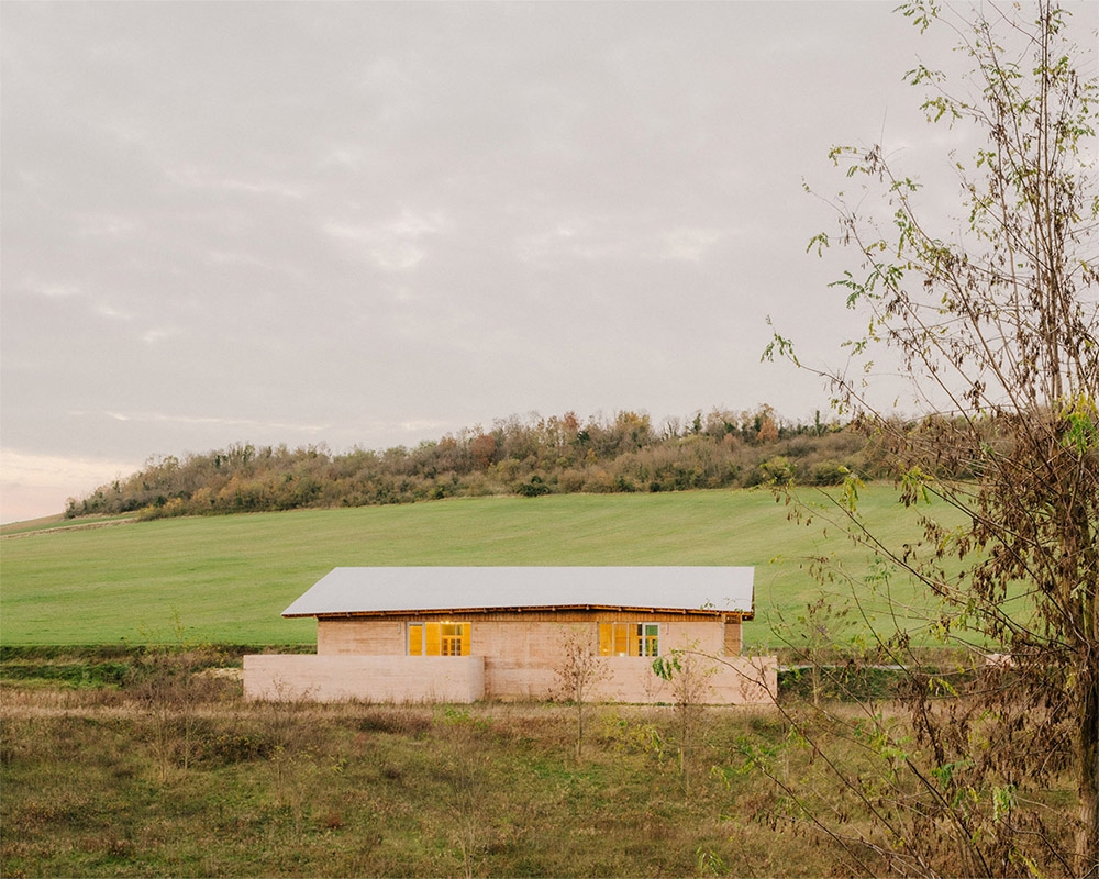 Implanted in an autonomous plot of land away from any urbanization, the building acts as a delicate intermediary between the domestic scale of its close context made of suburban areas and the scale of the large agricultural landscape, woven together by large infrastructures.