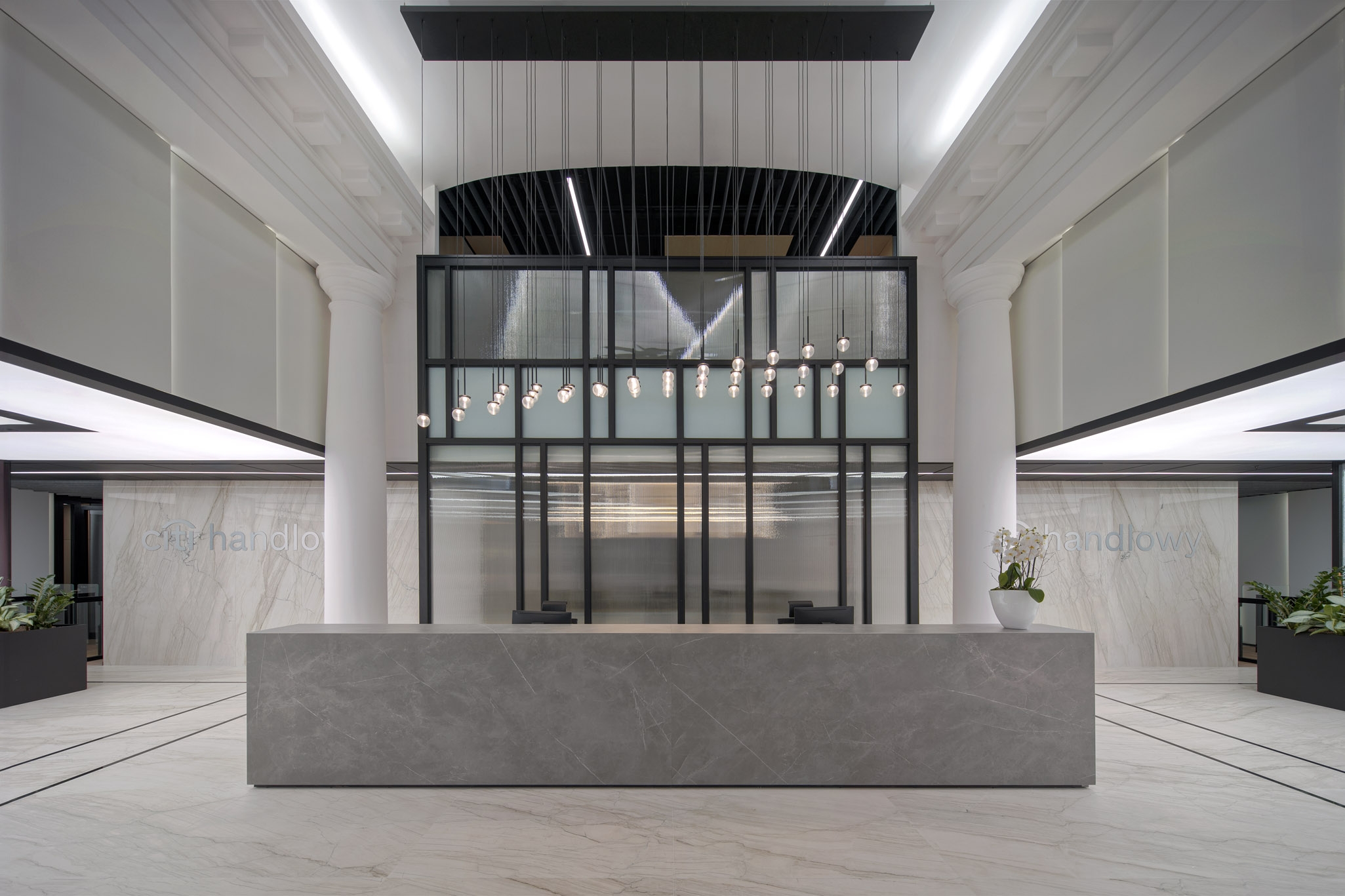 The project of reconstruction of the Citi Bank Handlowy management building located in the Jab?onowski Palace at the theater square in Warsaw, in addition to reconstruction of the building's interior, patio roofing, the work also includes modernization of the equipment and arrangement of the courtyard in front of the entrance to the building. The main issue of the project was to care about high standards of acoustic,lighting, ecology and high standard materials to create a comfortable workplace for people.The building has a BREEAM Excellent certification, photovoltaics and bioadaptive lighting.