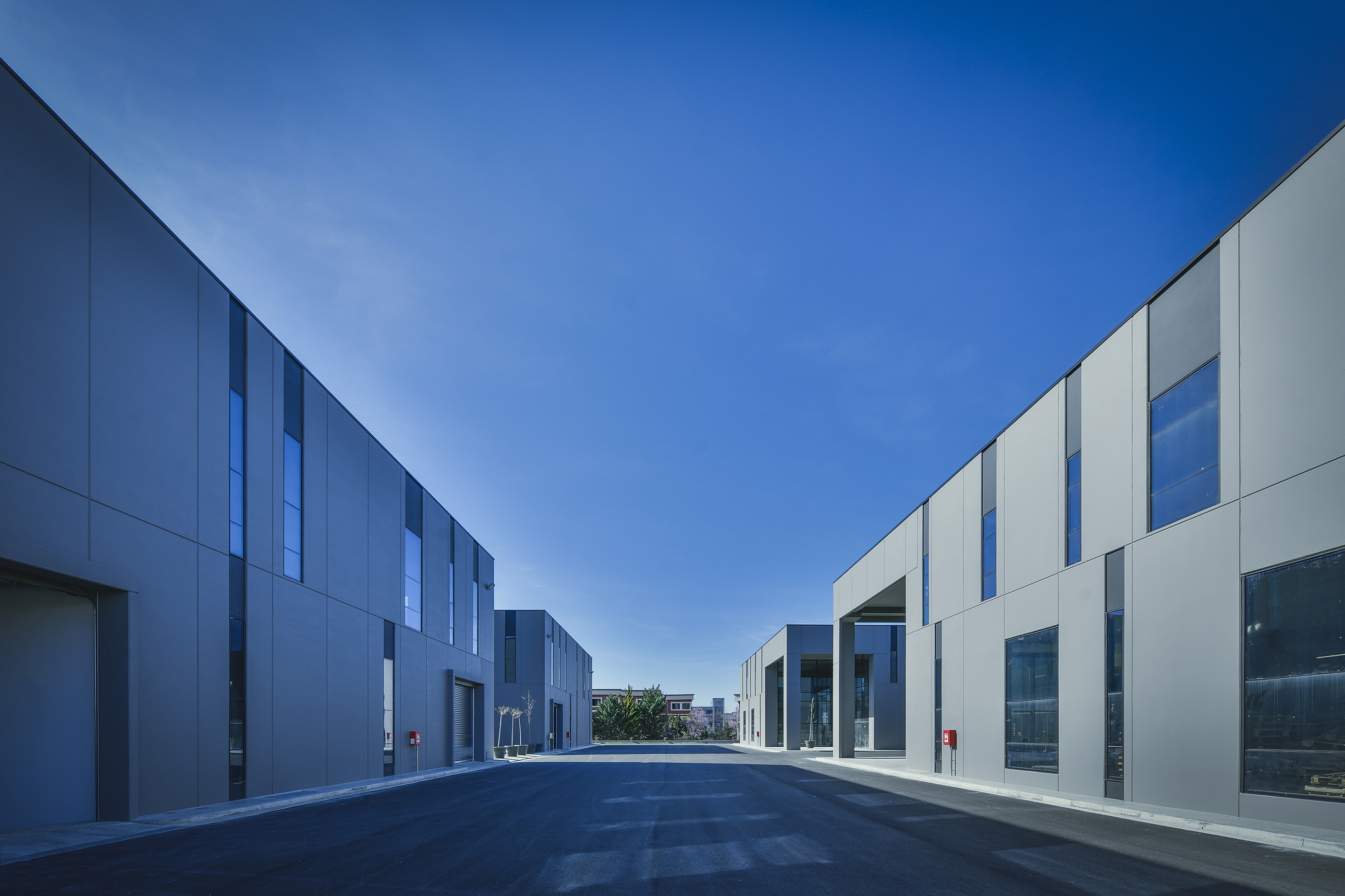 This project extends along the road axis of Tirana-Durrës highway and consists of three story buildings. The challenge in designing this industrial complex lies in combining the different functions of the objects like the showroom, offices and storage, while creating a well-connected façade with the existing urban context.