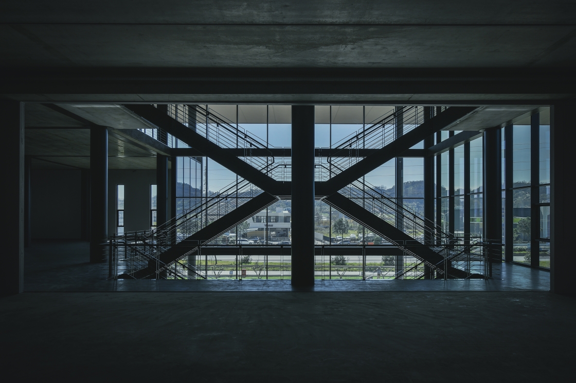 Conceptually, the building consists of 4 volumes as a result of functional division. The showroom is positioned as part of the main façade as the highest and the most transparent volume, while the 4 other objects have a more opaque architecture. The interior remains industrial and flexible in its use by providing the basic arrangements for any future industrial or commercial uses. Flexibility is a big part of the concept for this assembly of objects because its uses can vary from industrial, to commercial, to office uses.
