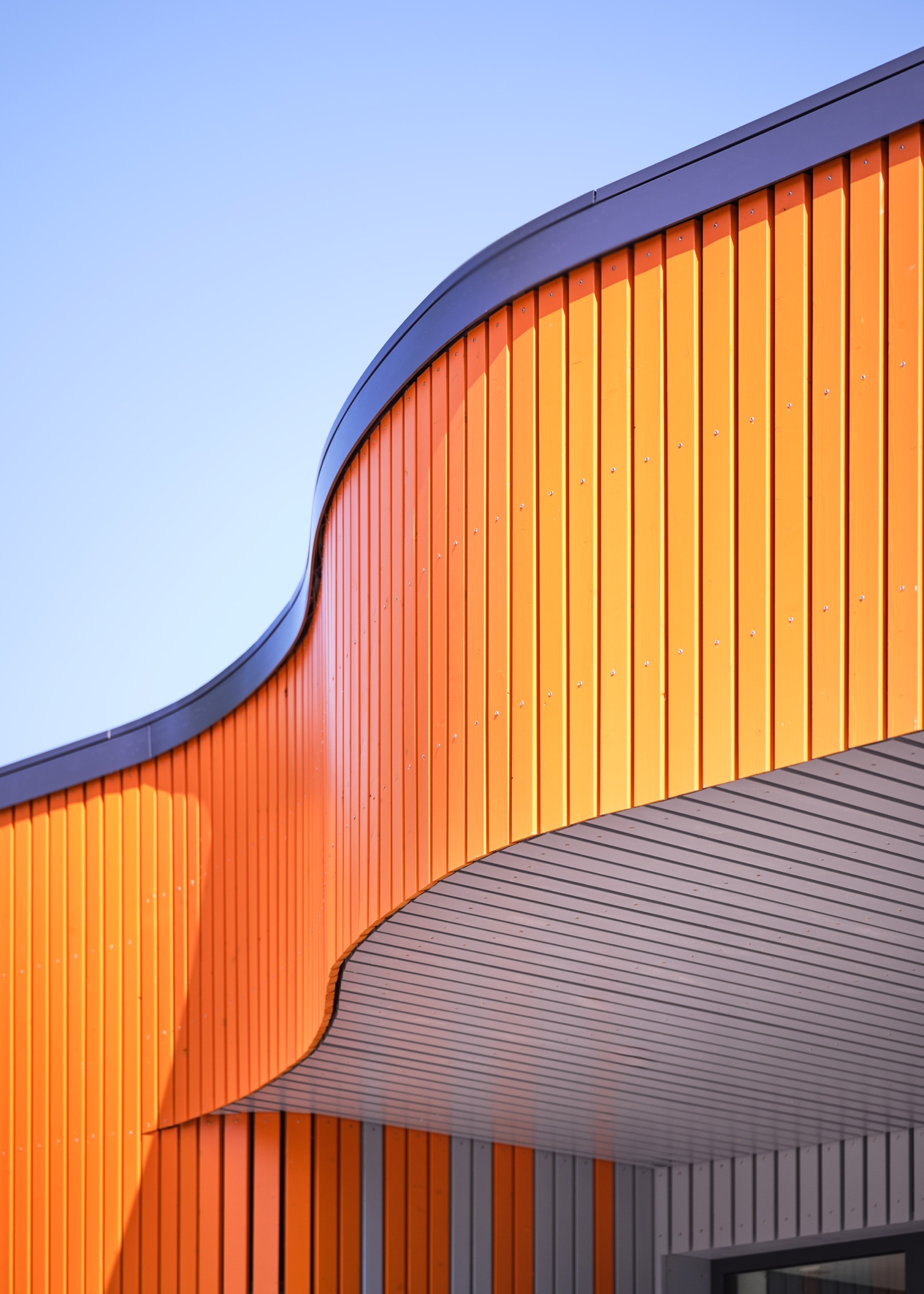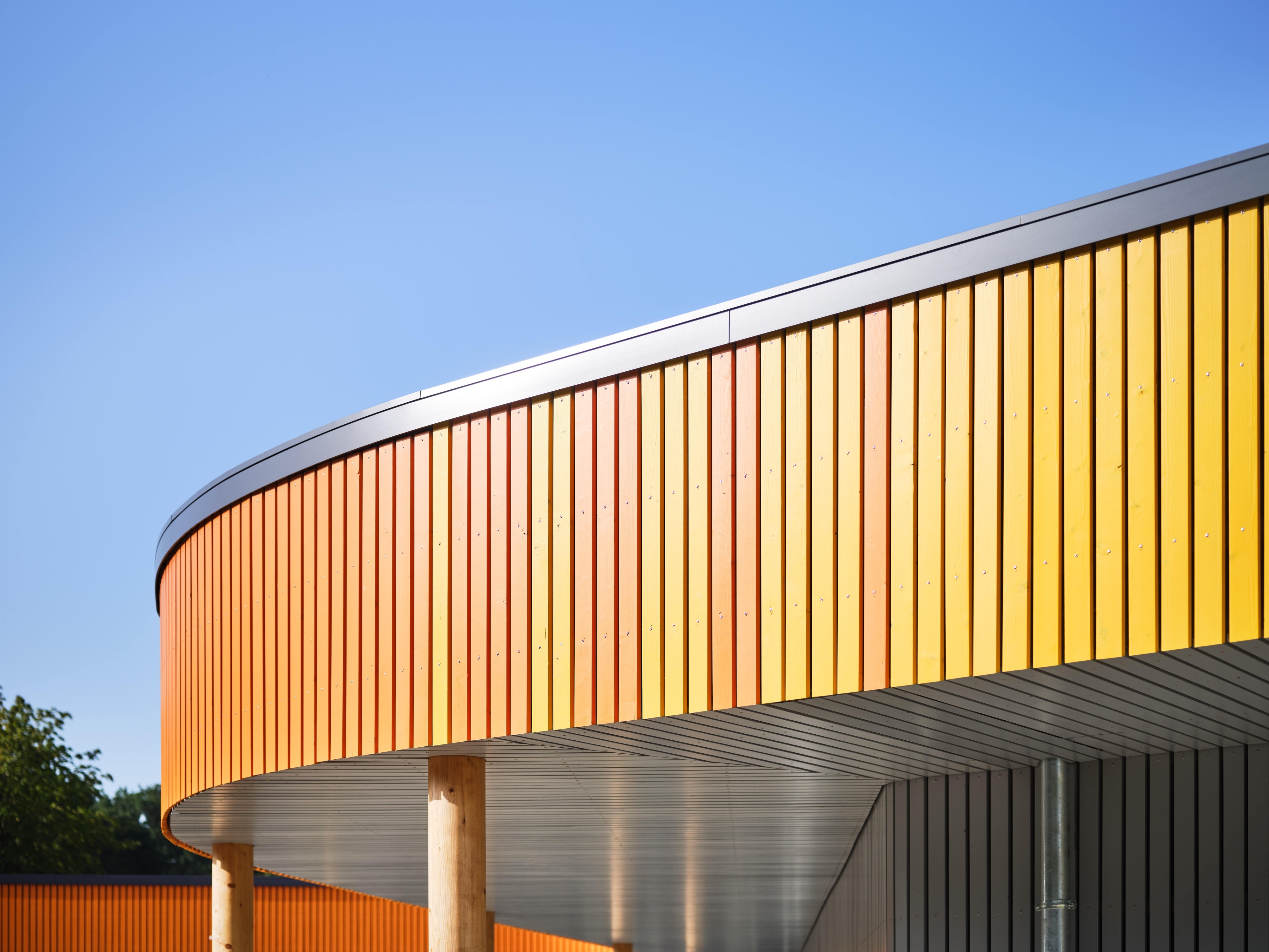 The building envelope is realised to passive house standard. The building components consist of a sustainable hybrid timber construction, with both the exterior walls and the roof structure made of timber. The timber façade with its harmonious colour gradient underlines the organic design language and radiates warmth and cosiness.