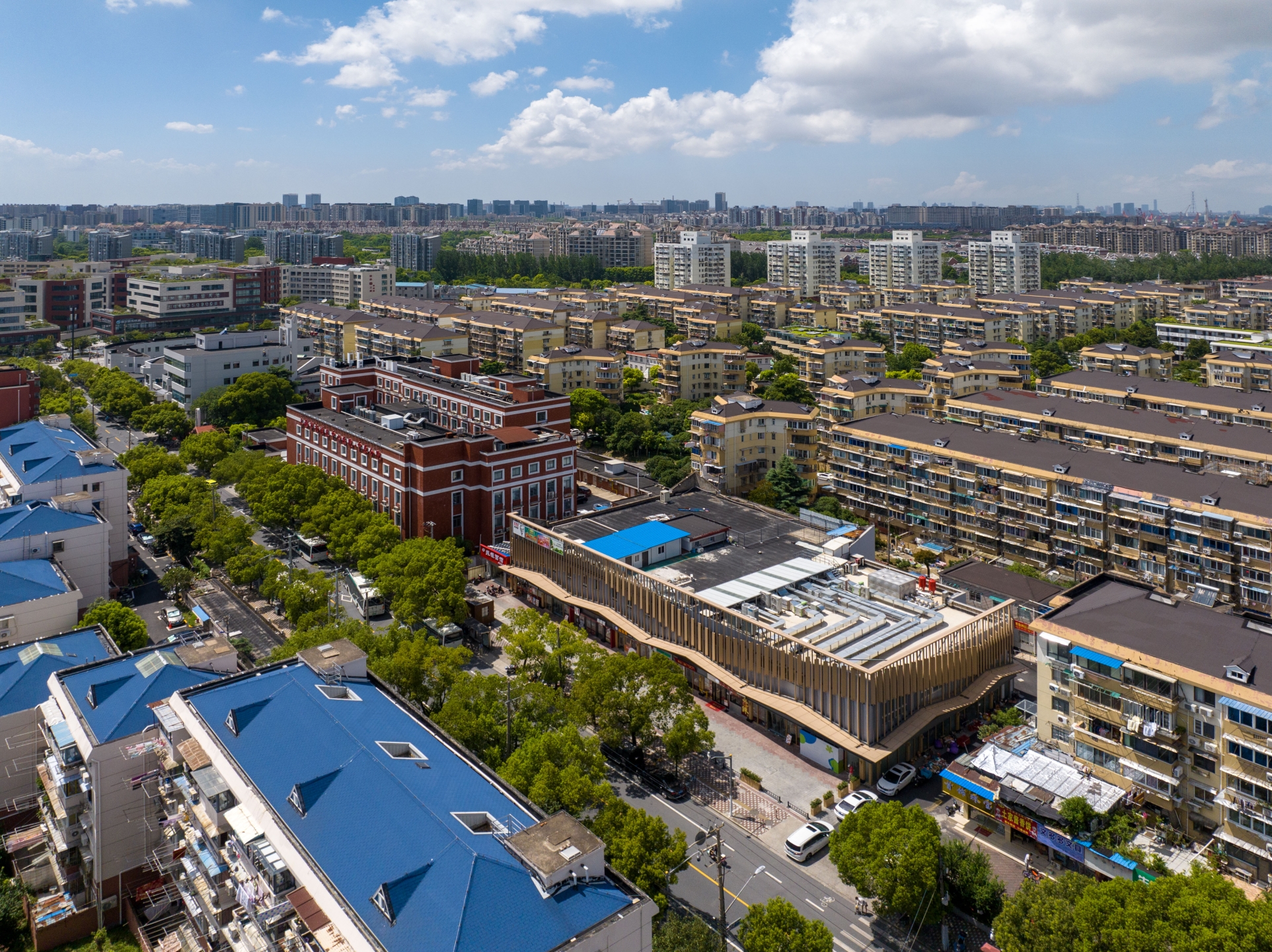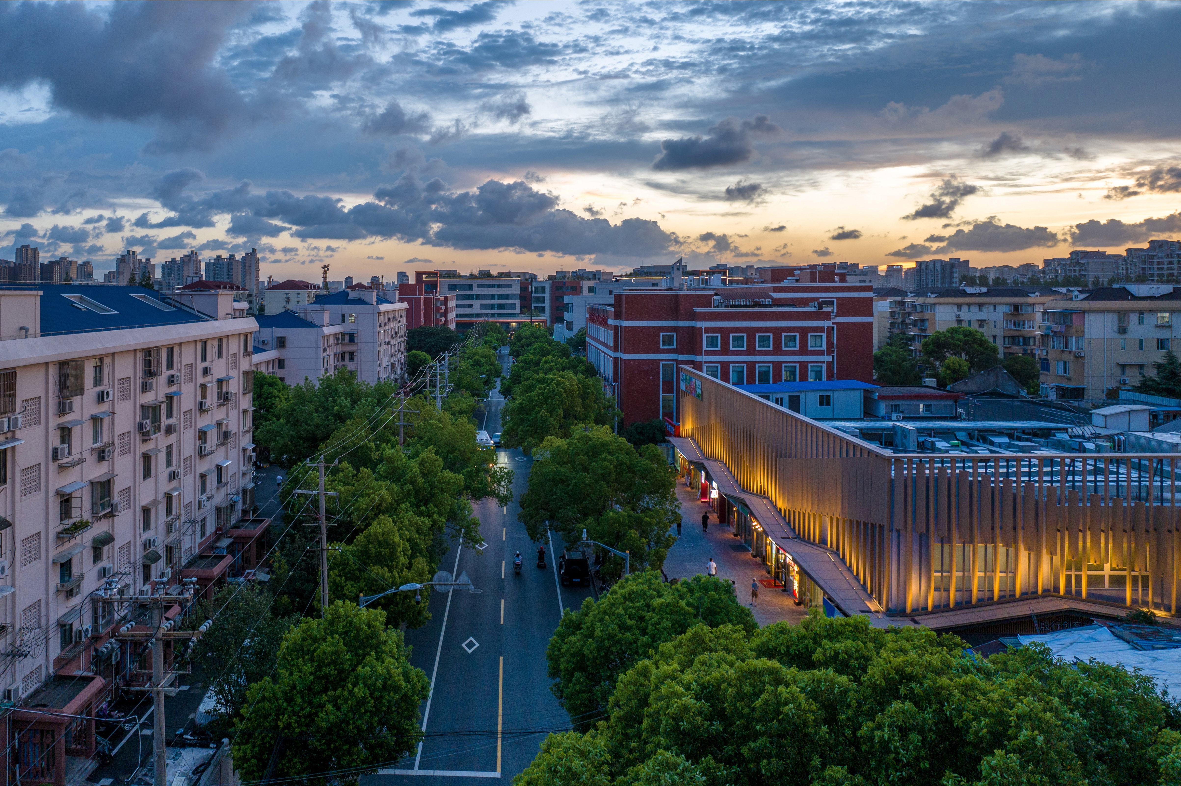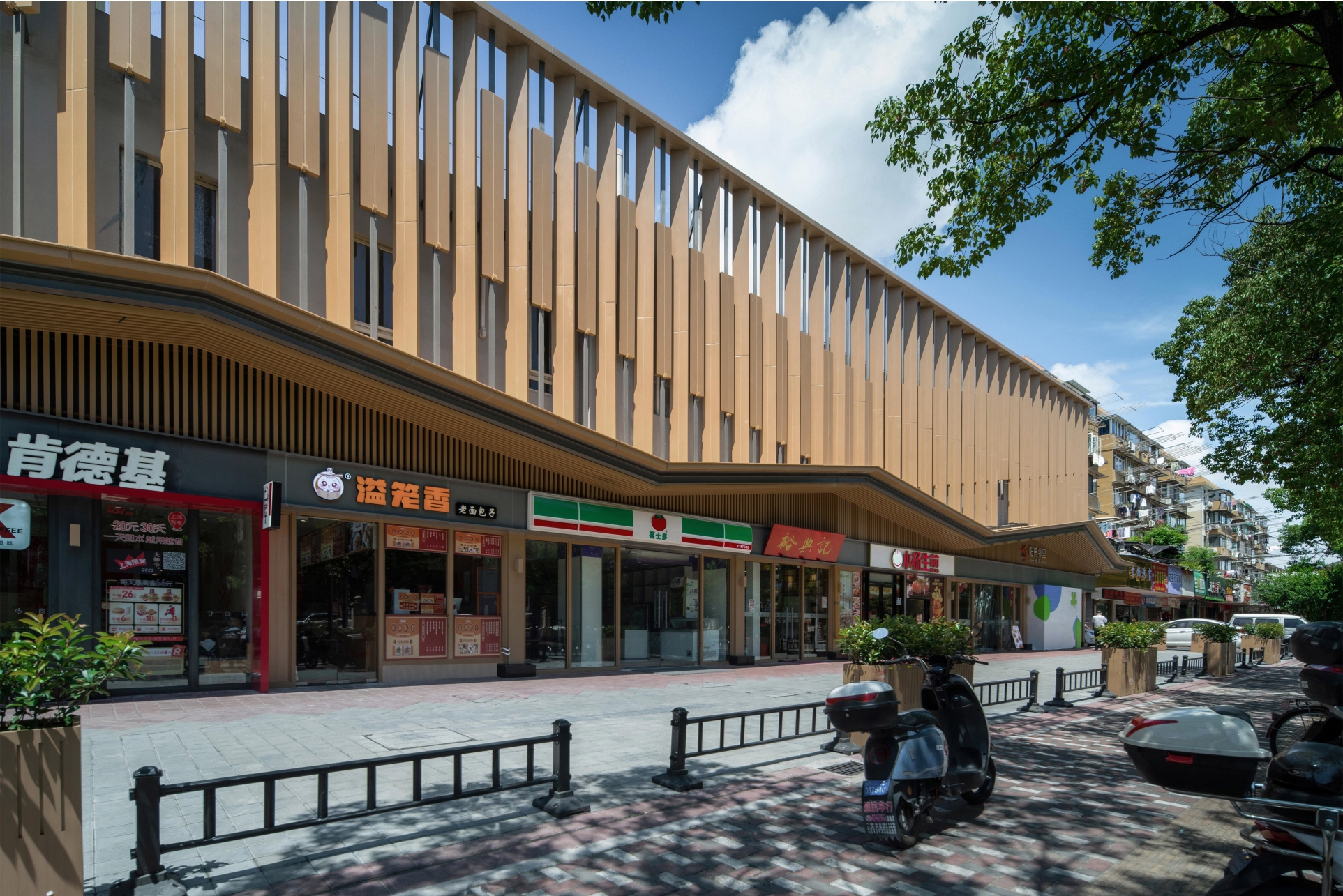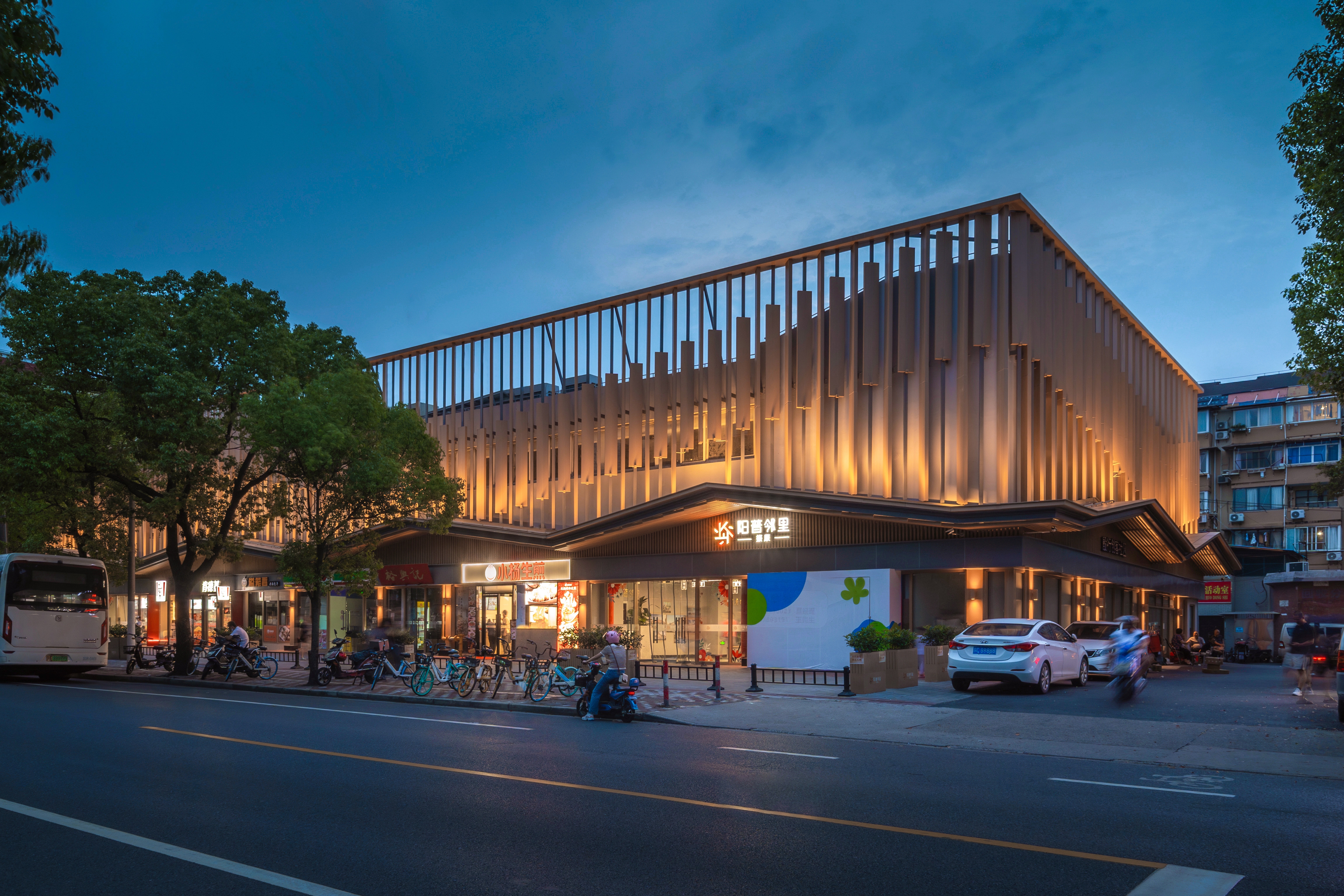 We adopt a warm color palette and use a "double-skin facade" to reshape the exterior. The density and angles of the grilles mimic "eave" contours, creating varied impressions with shifting views.