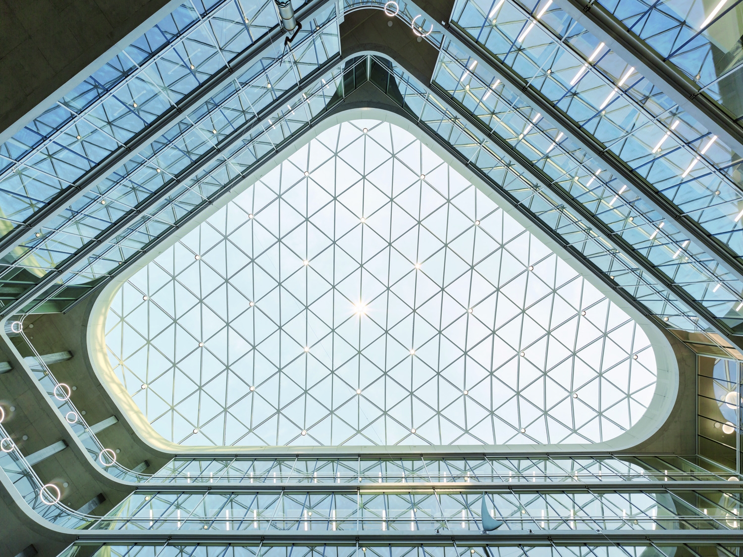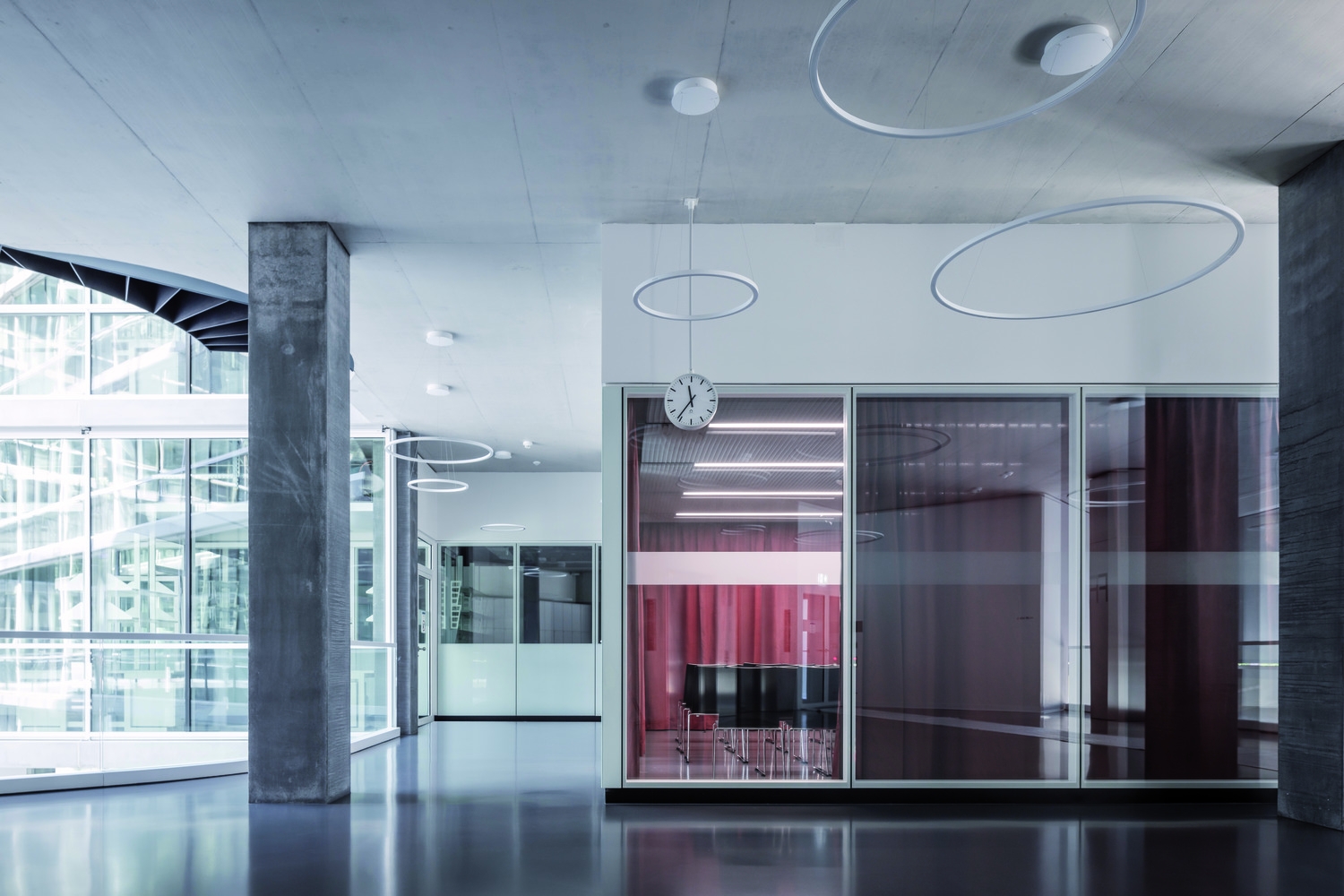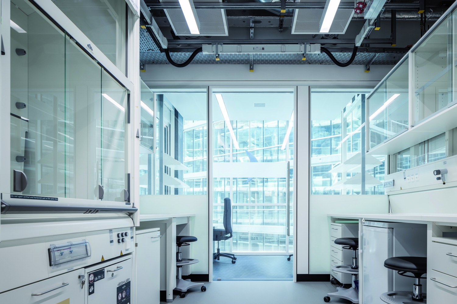 The new building for the Department of Biosystems Science and Engineering (D-BSSE) at ETH Zurich serves as a visual landmark on the Schällemätteli Life Sciences Campus in Basel. Its polygonal design harmonizes with the diverse surroundings, functioning as a gateway to the campus and featuring a public diagonal path, which connects street levels through the building. Furthermore it incorporates a flexible room concept focused around a central laboratory core. The design provides defined work areas for individual units while allowing interconnectivity through spiral staircases. Numerous communication areas and visual connections enhance the user experience, making the building conducive to collaboration and innovation. Unlike conventional layouts, it arranges laboratories, evaluation zones, and seminar rooms along the atrium, making them visible and accessible. Student learning areas animate the ground floor, with research group laboratories on upper floors. The Science Lounge on the top floor offers seminar spaces and a roof terrace with a panoramic city view.The building is certified as Minergie ECO and SGNI/DGNB Gold and is designed according to the GI (Good Indoor Climate).