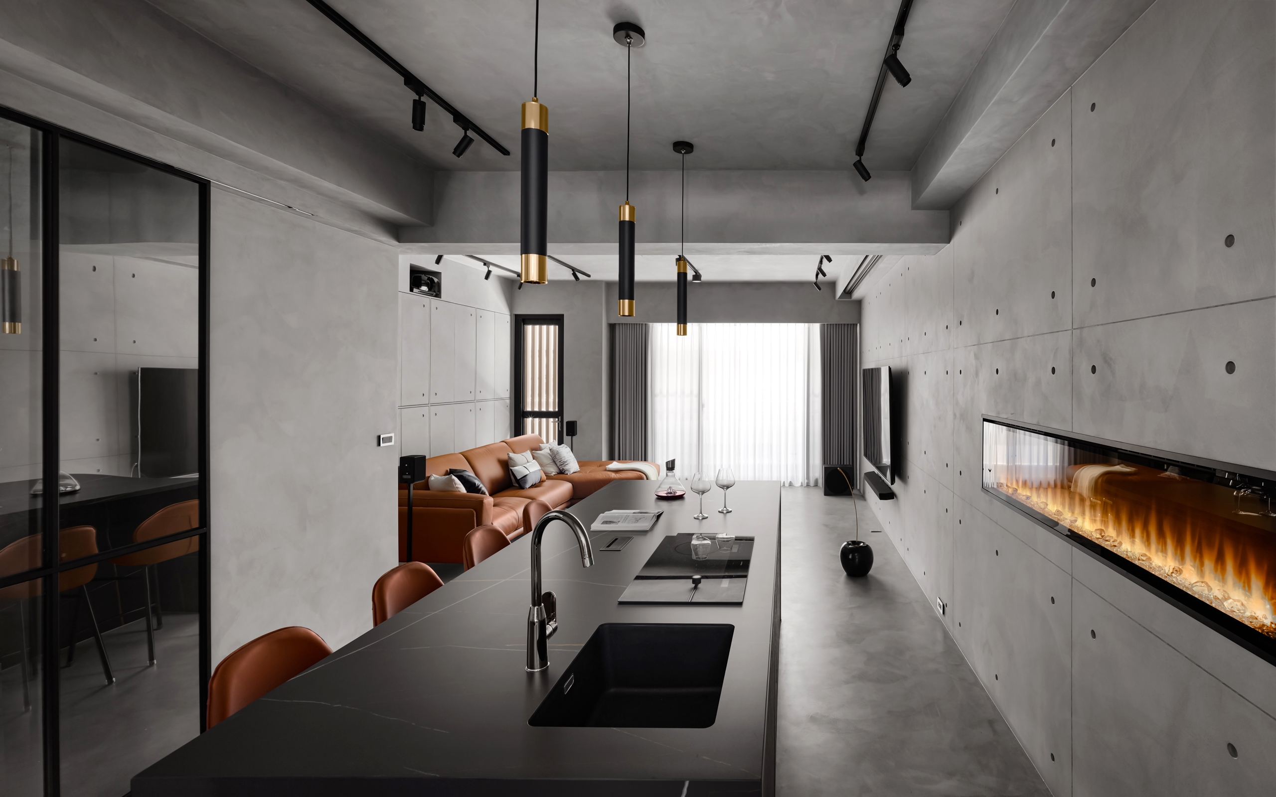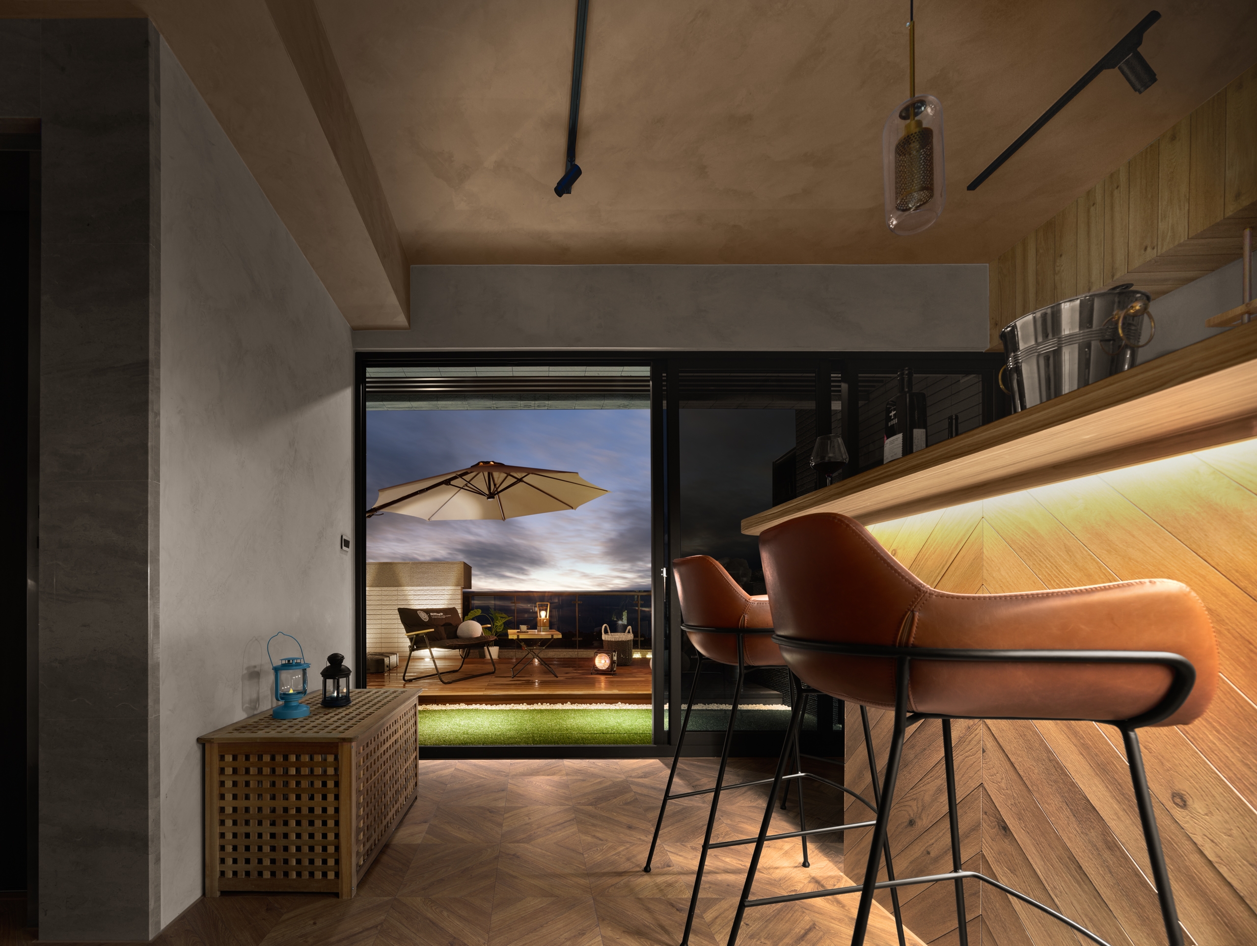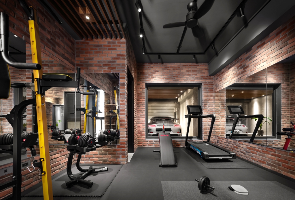 In response to the homeowners’ profound dedication to various interests, each floor is exclusively dedicated to a specific theme, ensuring that each hobby attains a professional standard. Tailoring the design to the unique characteristics of each floor, red-fired kiln stones are selected for the gym, wooden materials connect the terrace bar, and exposed concrete slabs contribute to a sociable atmosphere.