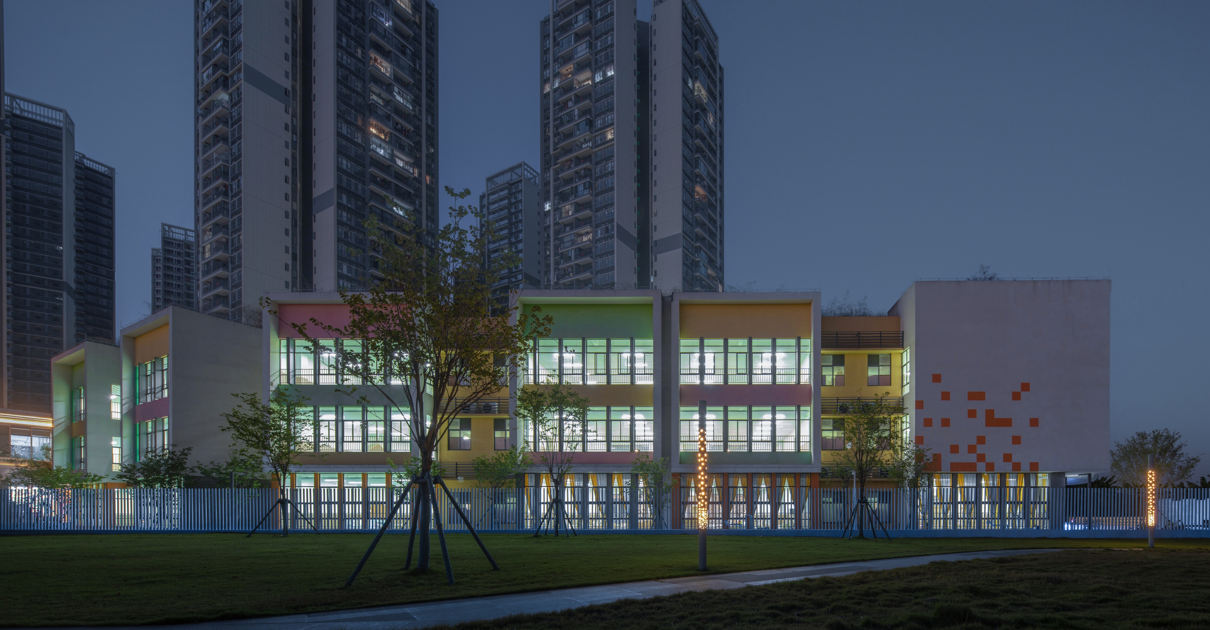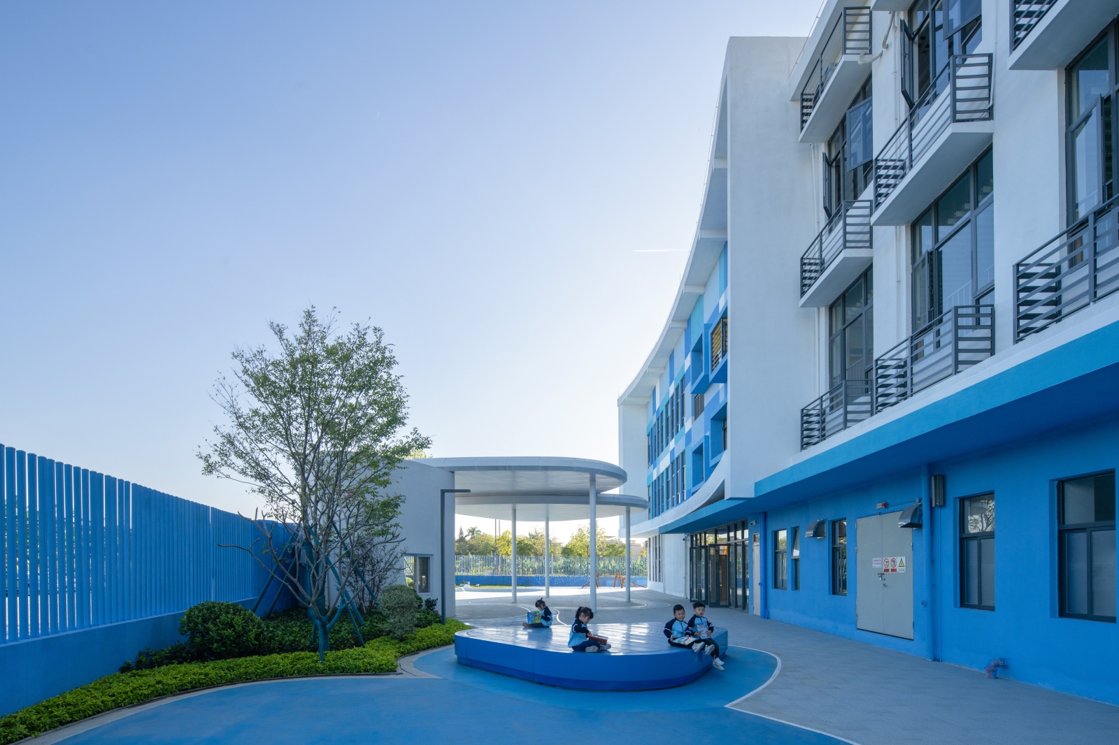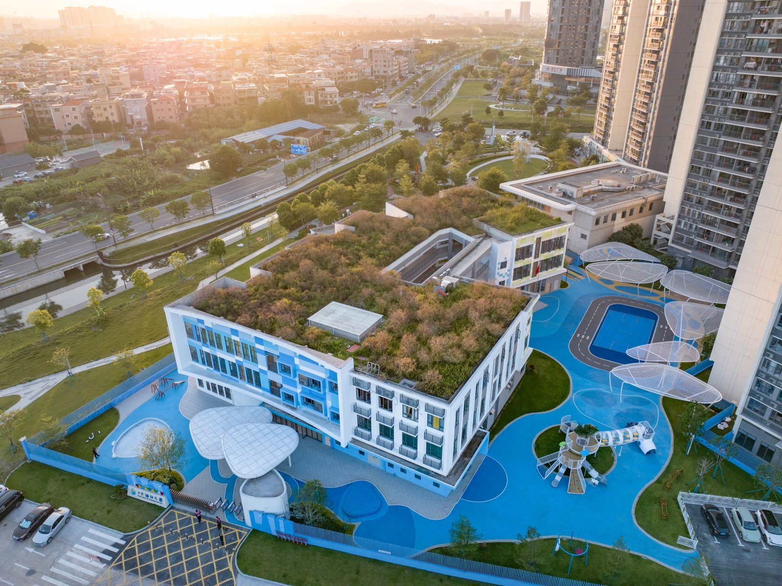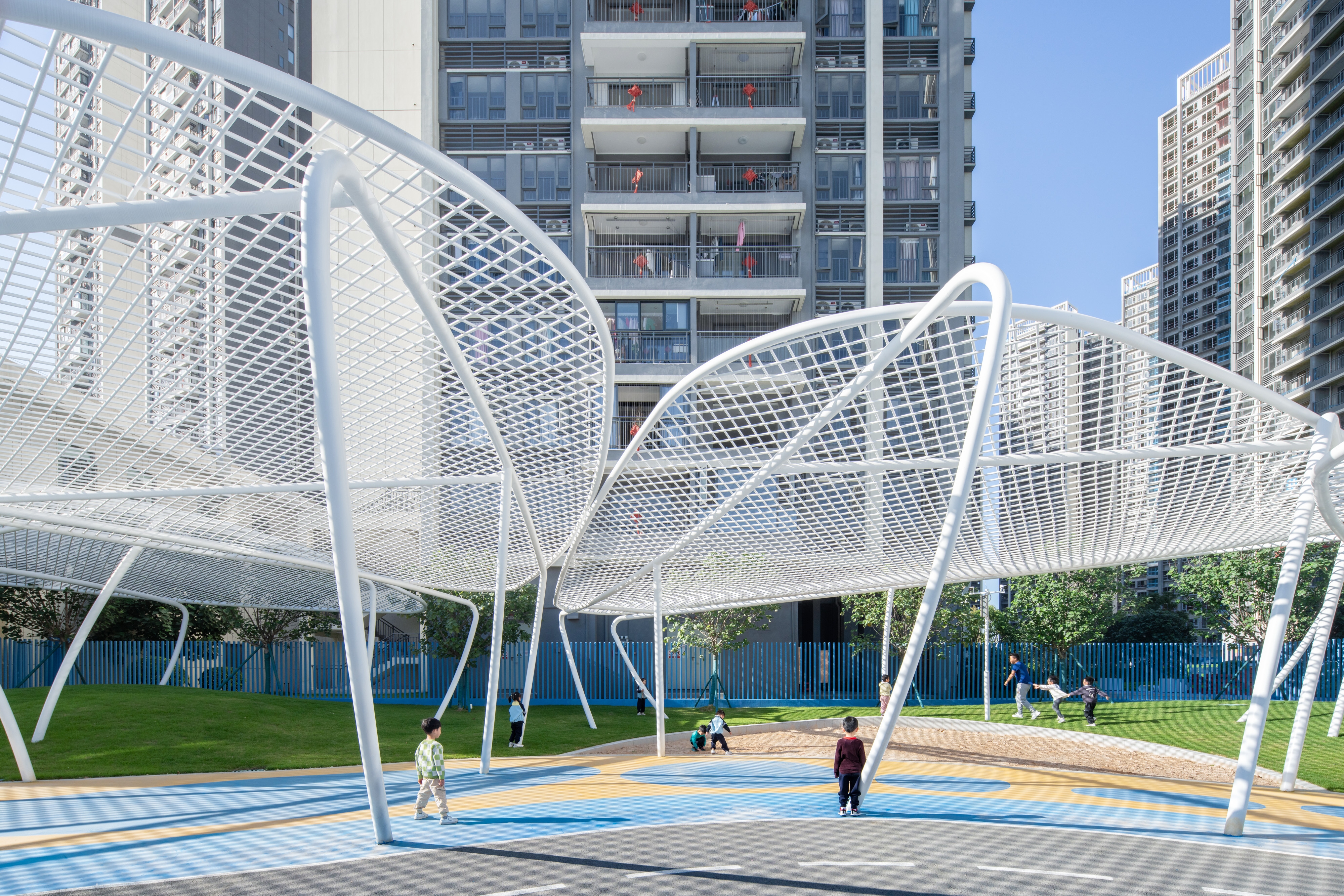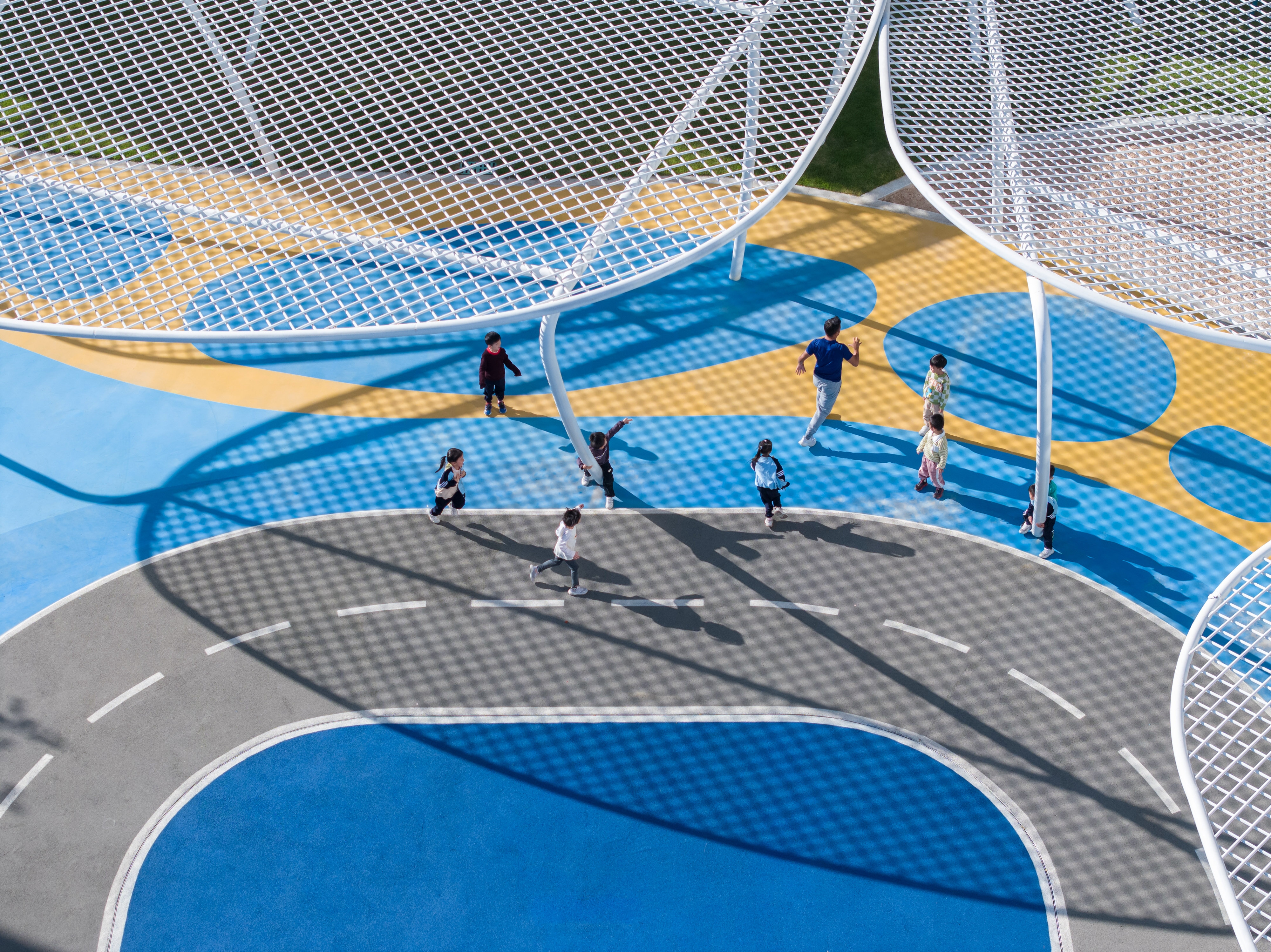 The existing building, serving as a kindergarten, is a part of the facilities of unoccupied properties. The main structure and facade of the building has been completed, with the design task focusing on its exterior landscape and optimizing certain parts of the facade.To integrate the fragmented spaces, a circular pathway was need, which was inspired by the cycle of water: the journey of a tiny water droplet through nature. This pathway can connect the narrow area on the southern side, the inner courtyard of the building, and the activity area on the northern side into a unified whole.The entire landscape system revolves around different states of water in the natural cycle: as clouds, rain or mist, ponds, and even the ocean; as well as formations in the ocean such as islands, sand dunes, sandbars, and even marine life.Through the adventures of water droplets, we've given the site unique significance, created a series of corresponding activity spaces, and provided an immersive environment for children to explore freely. We hope to increase children's interest and extend the duration of their outdoor activities through this.