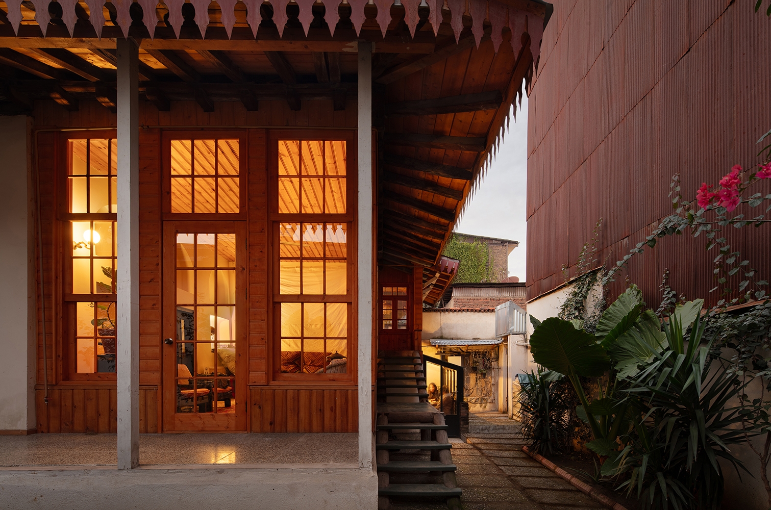 This century-old house project is situated in the heart of Rasht city, within its historic fabric. The unique features of this building include its tiled roof and load-bearing walls made of bricks, which have allowed it to stand out and endure for many years. The spatial characteristics of the house include varying room heights, creating an attractive division between the lower and upper half-story rooms. In the face of restoration and renovation challenges, the new residents’ comfort and modern amenities were considered. Essential interior spaces include a kitchen, sanitary facilities, and a semi-open intermediate space that can serve as a multipurpose room. Additionally, addressing the lack of direct communication between the lower half-story and the main courtyard, steps were added to connect them. Externally, a glass-roofed kitchen box was integrated, providing both a direct link to the courtyard and a cozy sitting area.