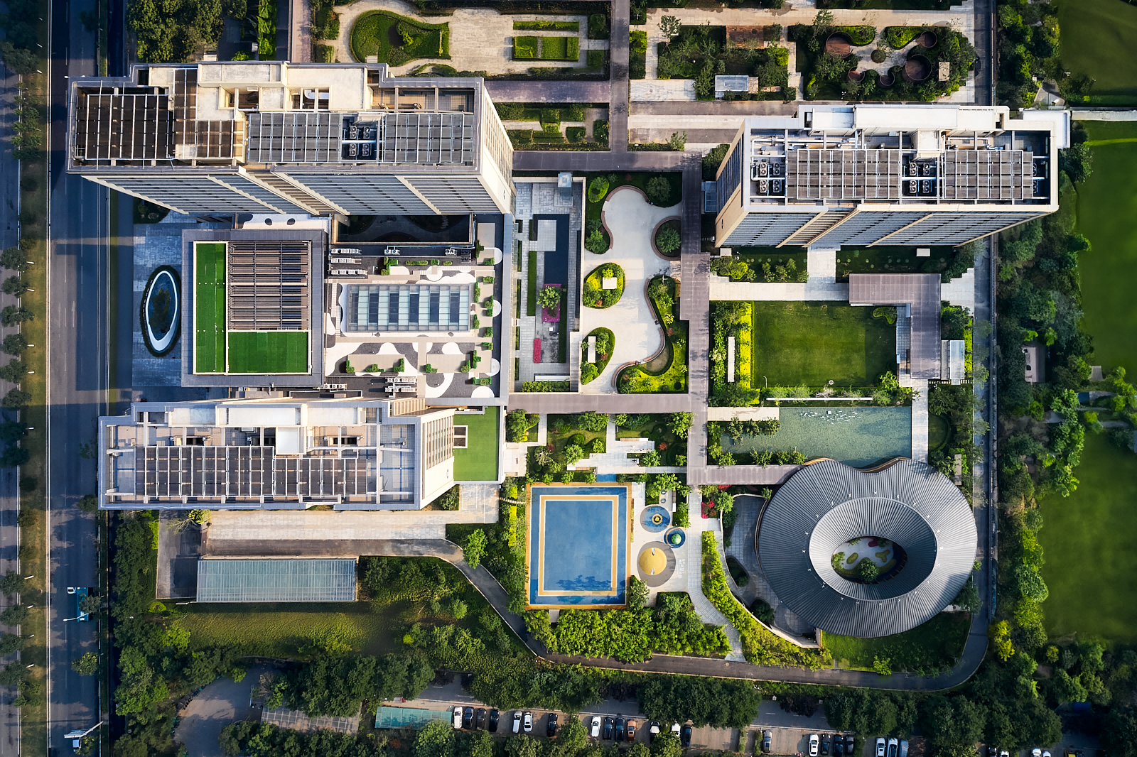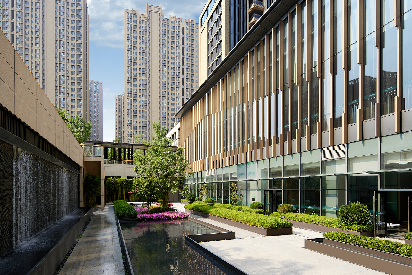 It focuses on integrating and dispersing layouts to optimize building spacing and landscape view. The planning of entrances disperses traffic flow, reducing congestion and enhancing safety and convenience within the community. In terms of service integration, underground passages connect hospitals and elderly care services, ensuring convenient access to medical resources. The design of restaurants and Jinchun Academy incorporate local cultural elements, offering a unique visual and experiential atmosphere, providing seniors with a high-quality living environment and cultural activities. It is not only a high-end eldercare community, but also a demonstration area integrating modern facilities with natural surroundings. It creates a safe, comfortable and vibrant living environment for seniors.