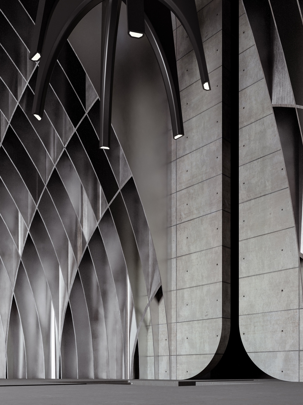 With strong sense of ritual and pioneering sense of the future, HOTALE blooms like a black lotus in the desert. Being interdependent, the mountain supports the hotel and constructs its unique form. This contradictory and novel combination presents guests with an unprecedented sensory experience. From the entrance to the lobby, this very ritual path attracts every attention of the guests to experience the magnificent narrative.