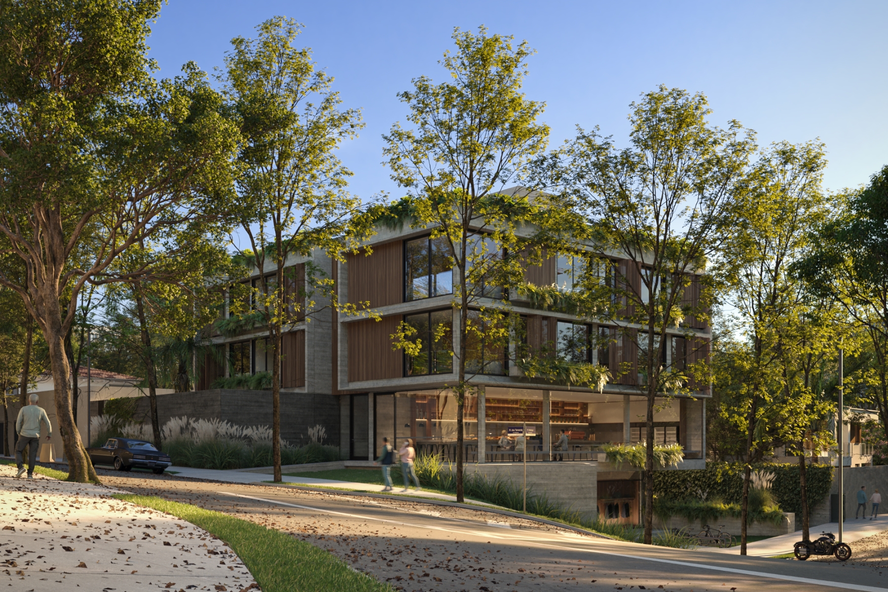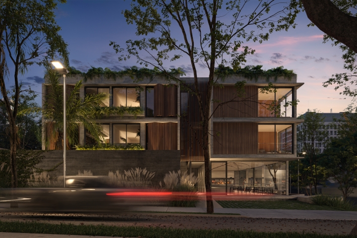The pleasant, wooded surroundings led us to design units where we made the most of the spaces open to the outside. We also created the planters as architectural elements in the facade, to reinforce the integration of the interior with the exterior and bring movement to the orthogonality of the facade.