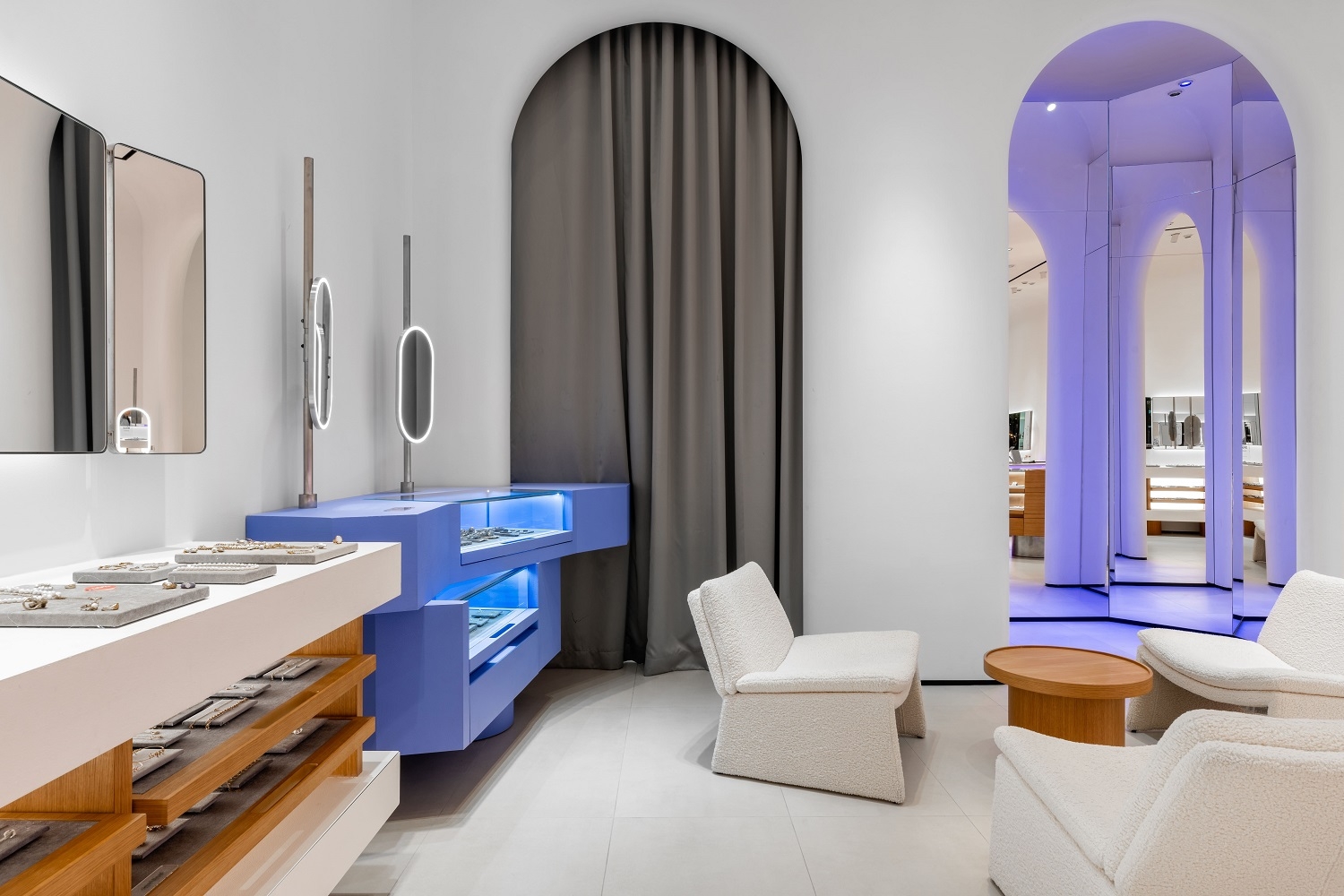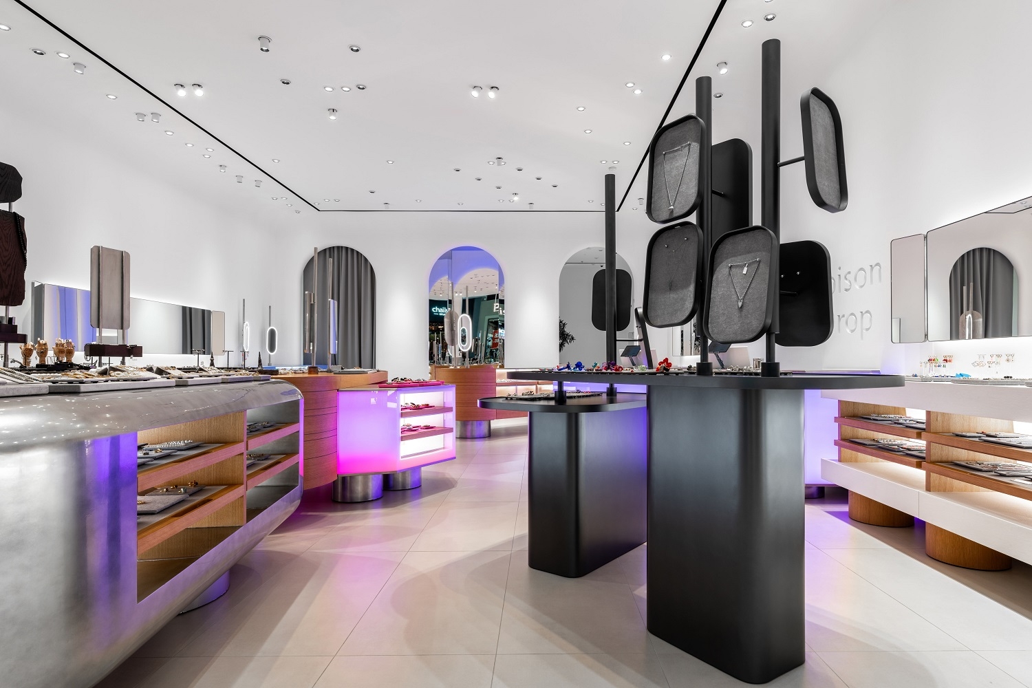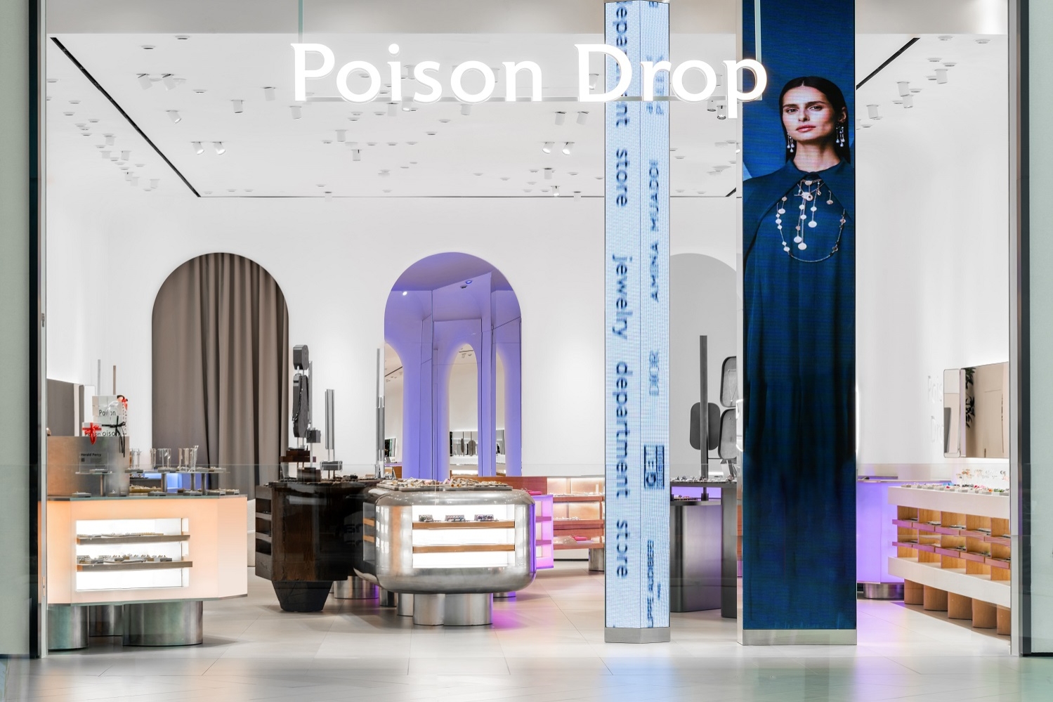 This is a project to entirely change the visual style of jewelry reseller Poison Drop. The most difficult part of the project was the combination of different stylistic concepts of corners in one space. As a result, we turned this into the main feature of the project, giving it recognition and uniqueness.