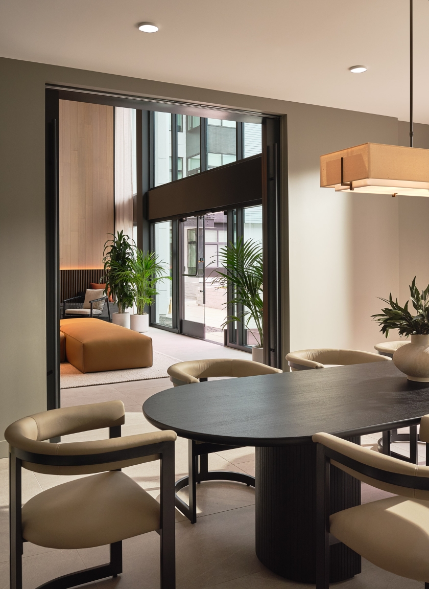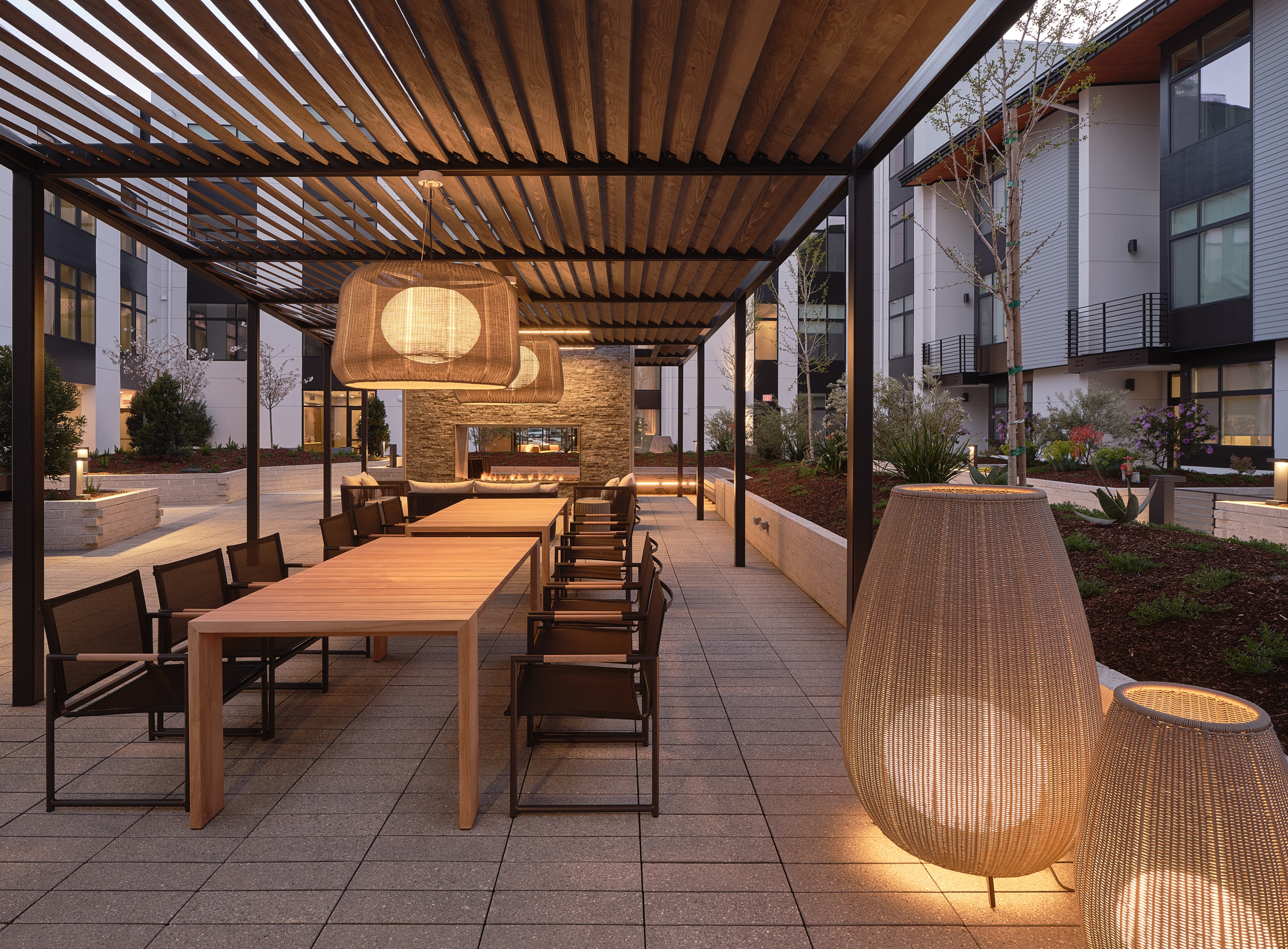 The design is influenced by California’s enduring architectural tradition of indoor/outdoor living. The amenities seamlessly connect with the outdoors and the inner courtyard, creating communal destinations from which nature is always within reach.