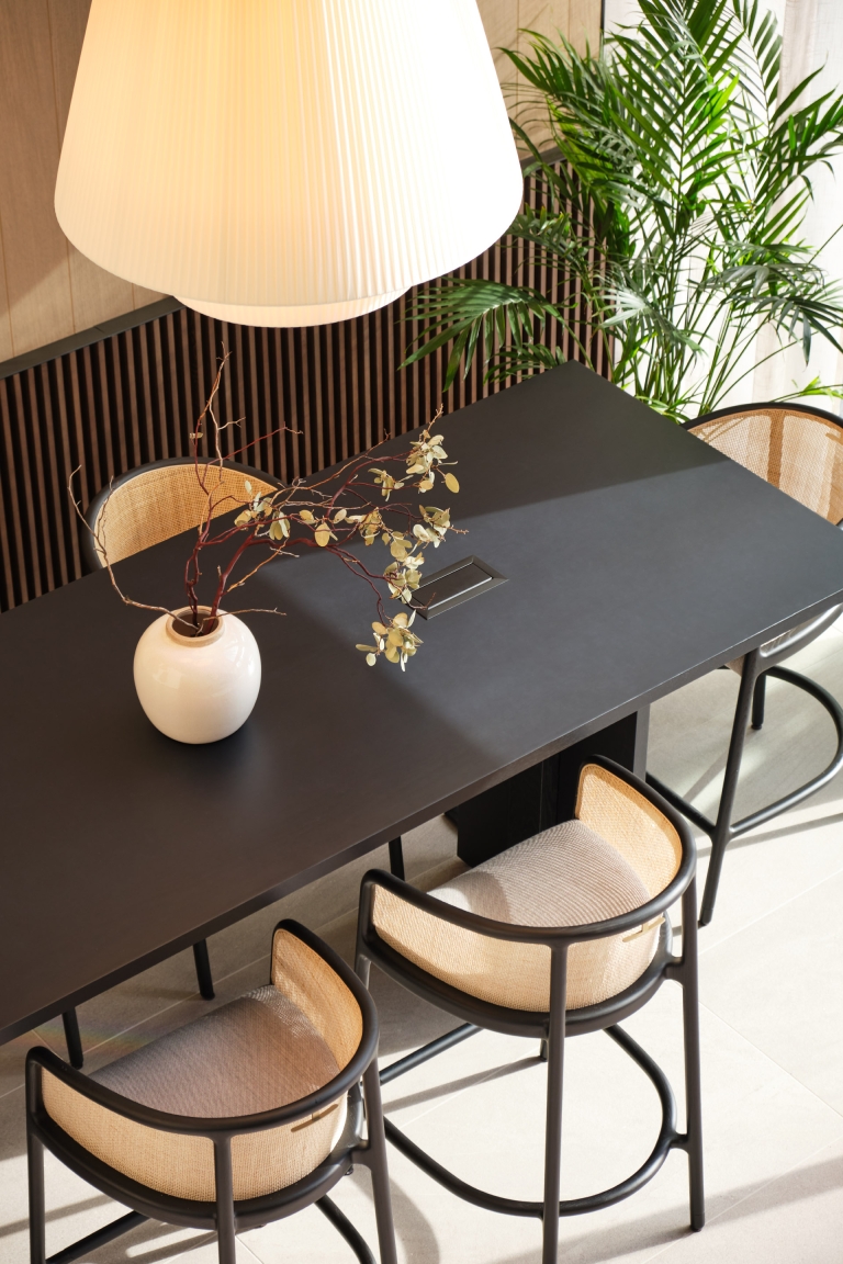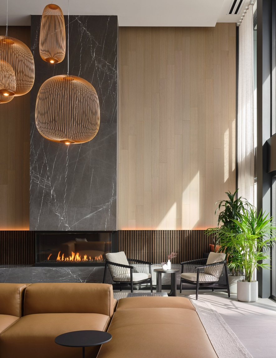 Our scope focused on the interior architecture, which embraces a distinctly urban and contemporary essence in contrast to the other buildings. The design exudes a sense of familiarity while eschewing conventional embellishments and moldings. Our approach adopts a modern aesthetic leveraging spatial dynamics, volumetric play, and materiality to articulate the architectural style.