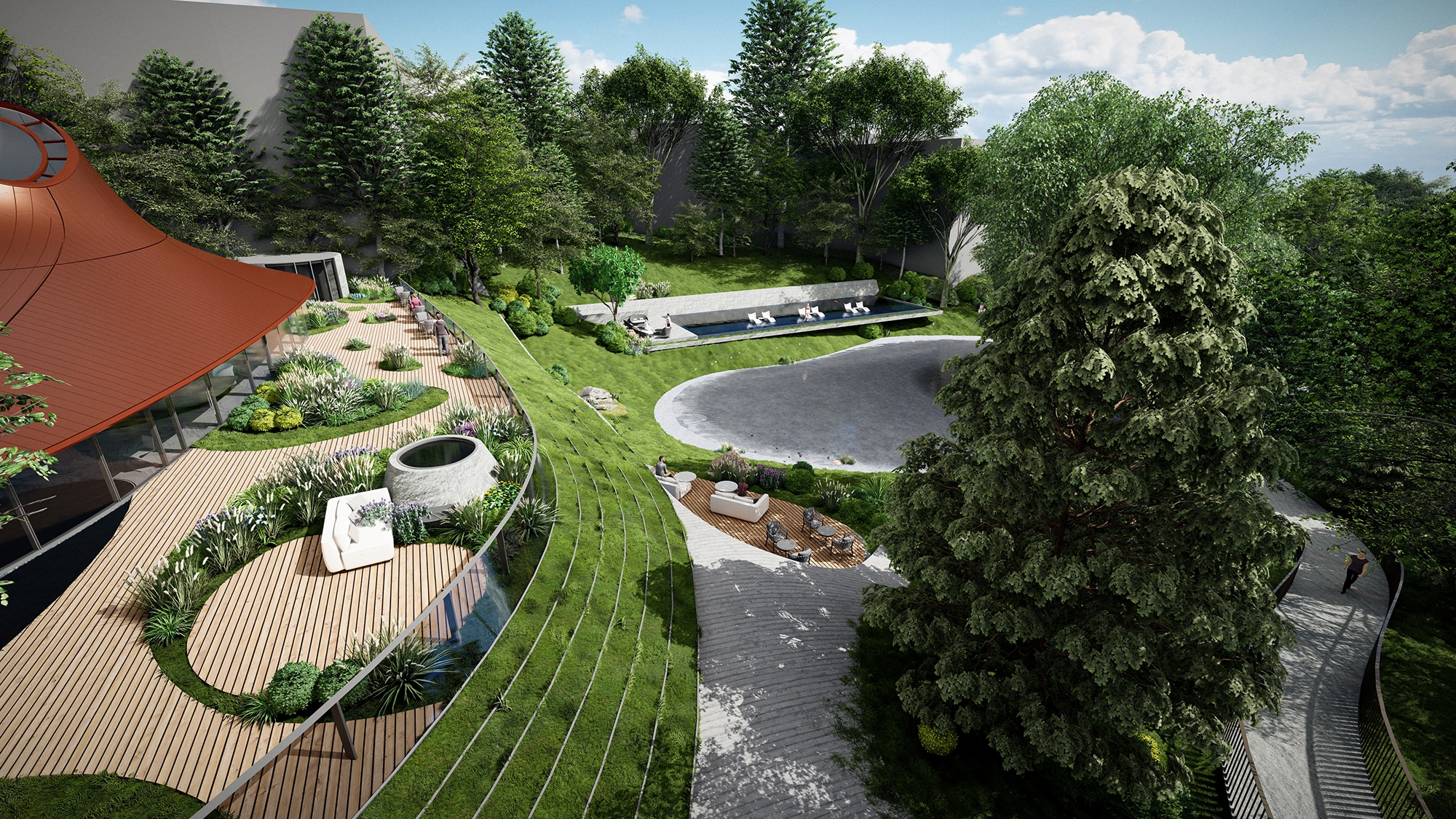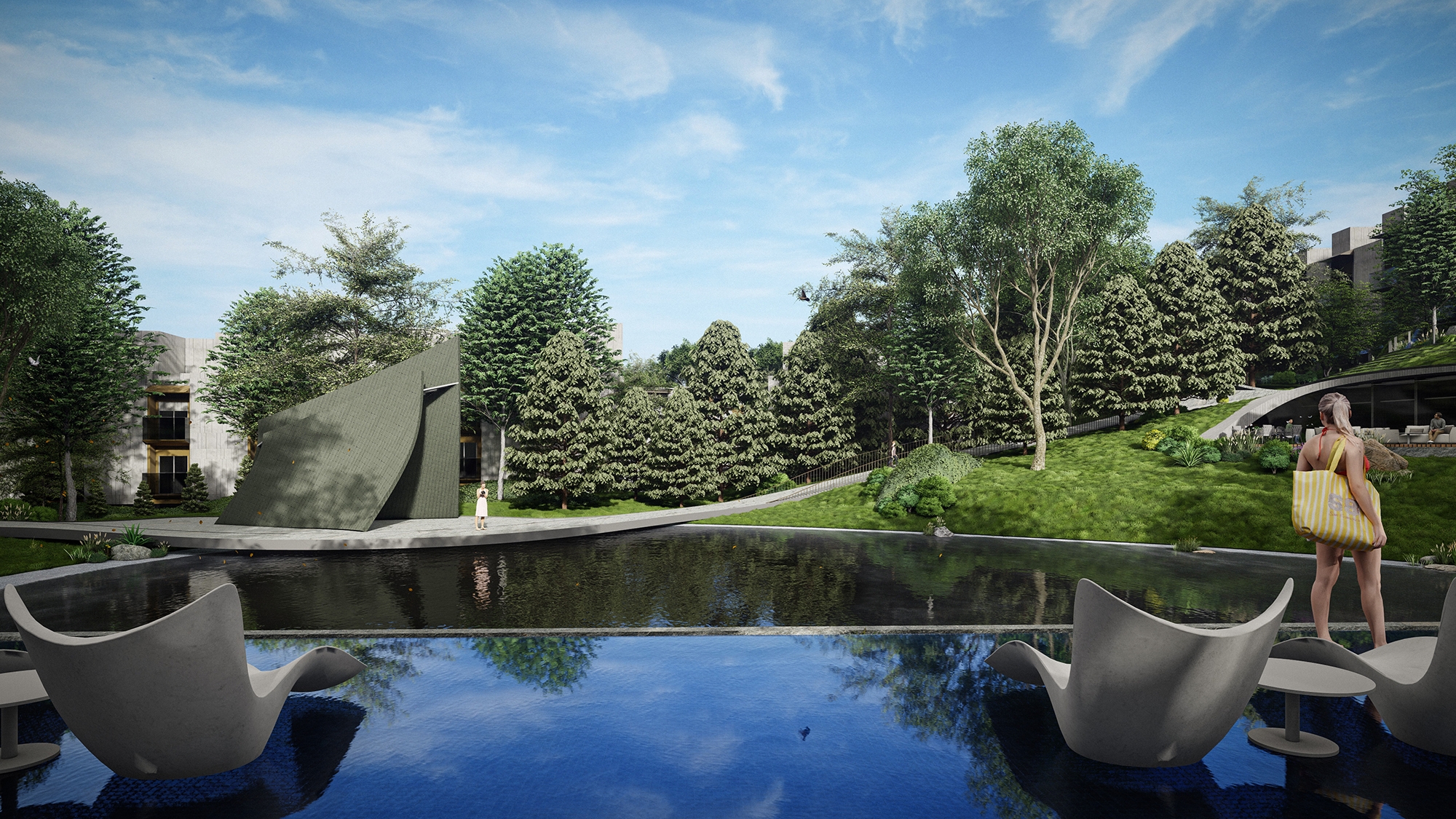 The primary aim of this project is to realize a harmonious coexistence and mutual prosperity between humanity and the natural environment. By incorporating cave-like structures, the architectural space becomes intricately integrated with the surrounding natural landscape, thereby minimizing ecological impact and fostering sustainability. Furthermore, this design approach aims to evoke a profound emotional and sensory experience for inhabitants, ultimately contributing to advancing a "Conscious Economy".