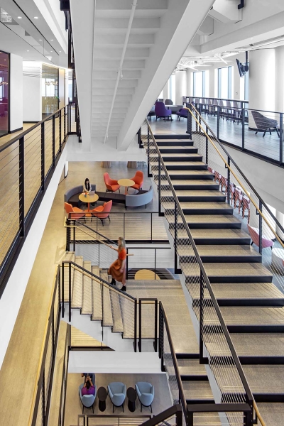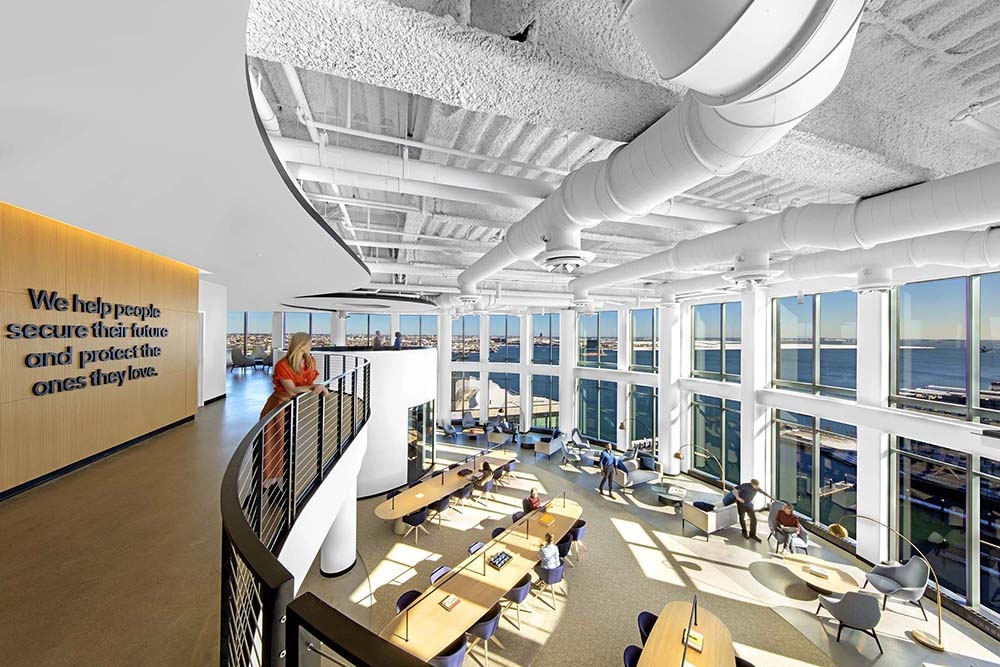The design honors MassMutual’s proud heritage with an environmentally responsible, forward-looking landmark destination and an inspiring, human-centered work environment that fully supports 1,000 associates, accommodates today’s hybrid work models, and can flex and adapt to future trends. The building and its site incorporate sustainability and resiliency strategies in every aspect, contribute to the public realm, and promote employee health and wellness.