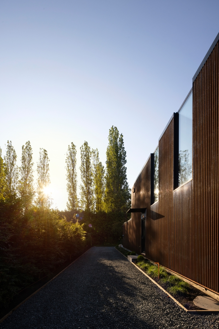 Nestled discreetly on a single lane road in Vancouver’s Southlands, Paddock House is a testament to modern elegance and tranquil refuge. Originally constructed in 1991 with distinct slanted shed roofs and sharp 90-degree angles, the house underwent a transformative redesign.