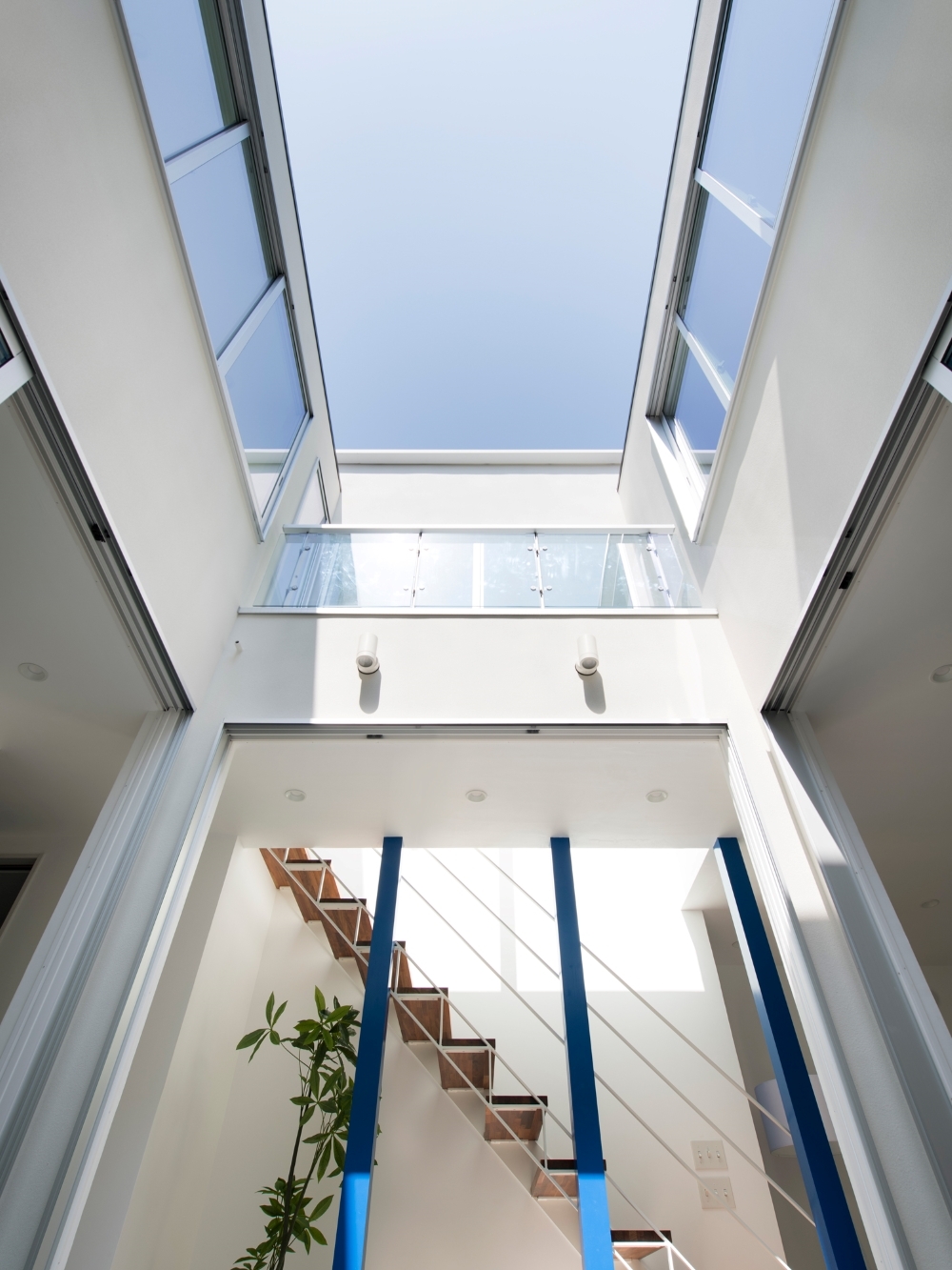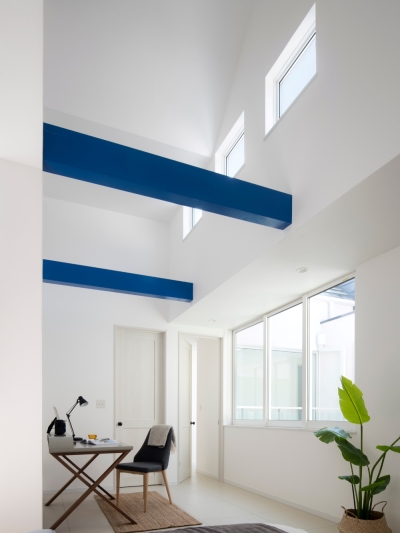 Traditional Japanese townhouses (machiya) integrate nature by placing a garden at the center, nurturing a unique aesthetic and respect for the natural world. However, modern houses, with their focus on functionality, tend to isolate themselves from the outside environment. In response, architect Shin Takamatsu designed this house, inspired by traditional living, with the mission of coexisting with the sky. On a narrow urban site, a large courtyard is placed at the center, with all rooms and corridors surrounding it. This design connects every space in the house to the courtyard, making the entire home feel like one unified space centered around the skyWindows facing the exterior are limited, and most of the light comes from the courtyard, filling the home with indirect, natural light. Even when artificial lighting is turned off, the space retains its value. The design allows the space to connect not only horizontally but vertically as well, creating a feeling of openness towards the sky, as if being embraced by it. The skyline, reminiscent of rugged mountain ranges, lifts the gaze of passersby, giving them an opportunity to see and experience the sky.