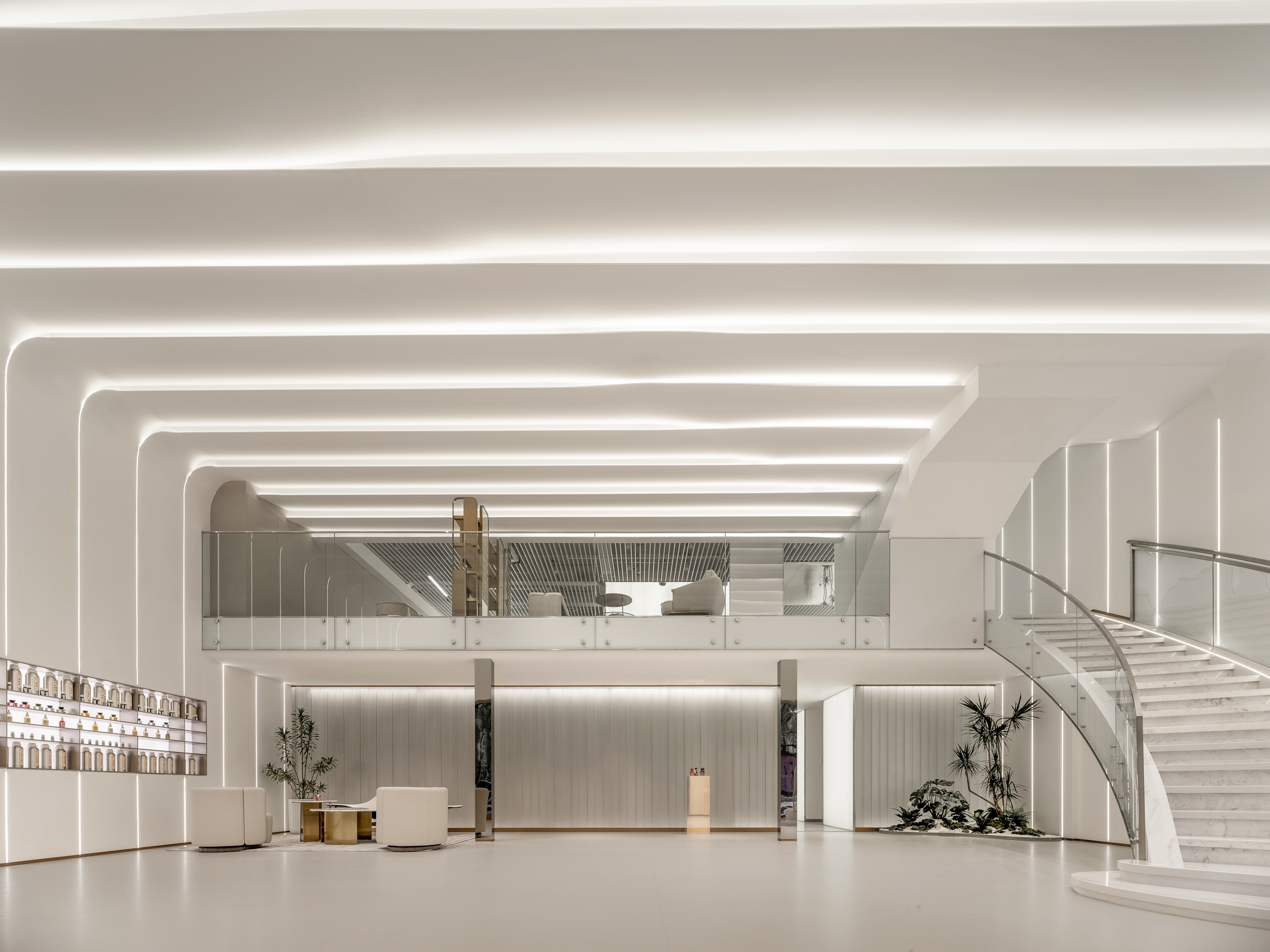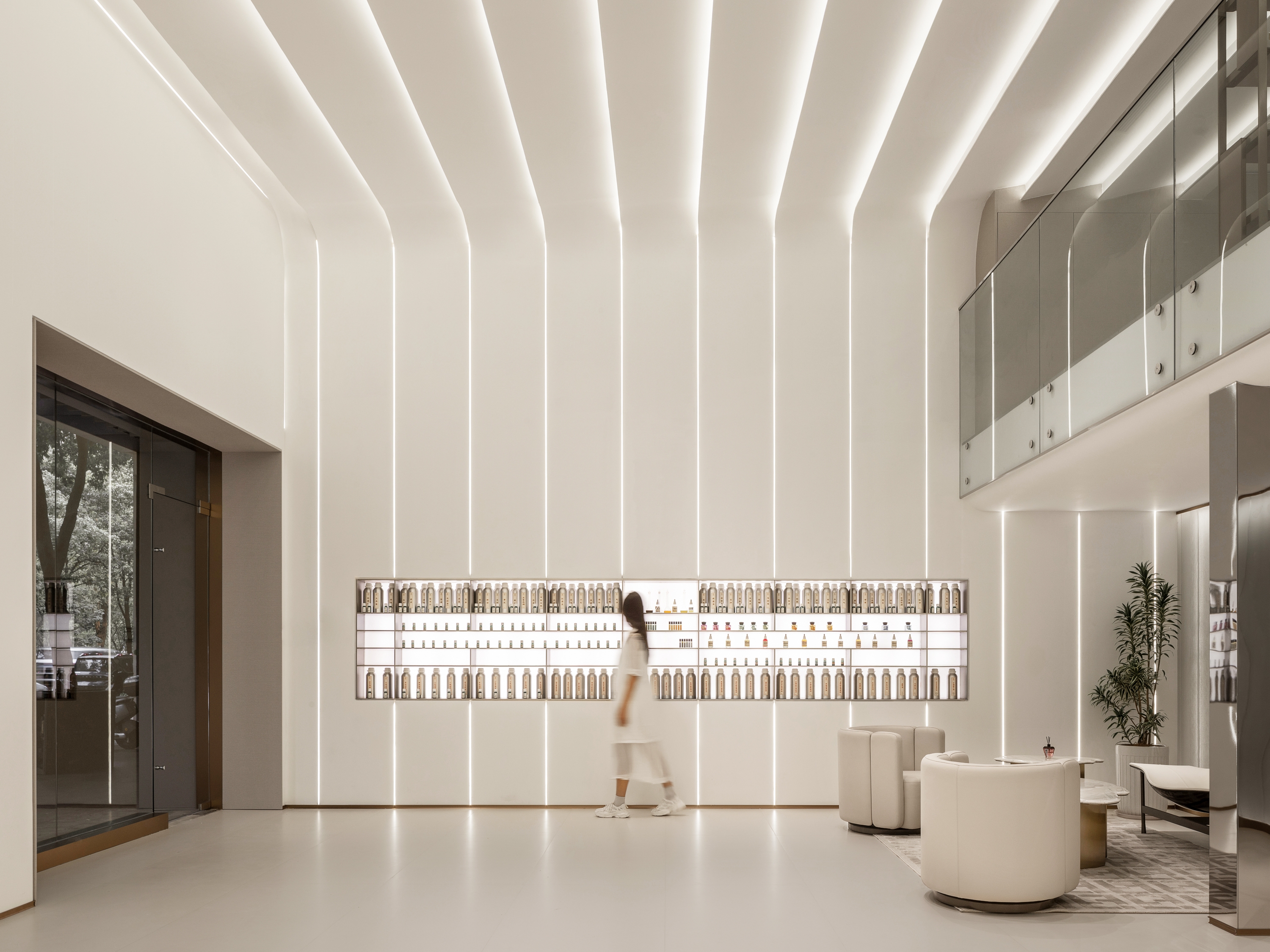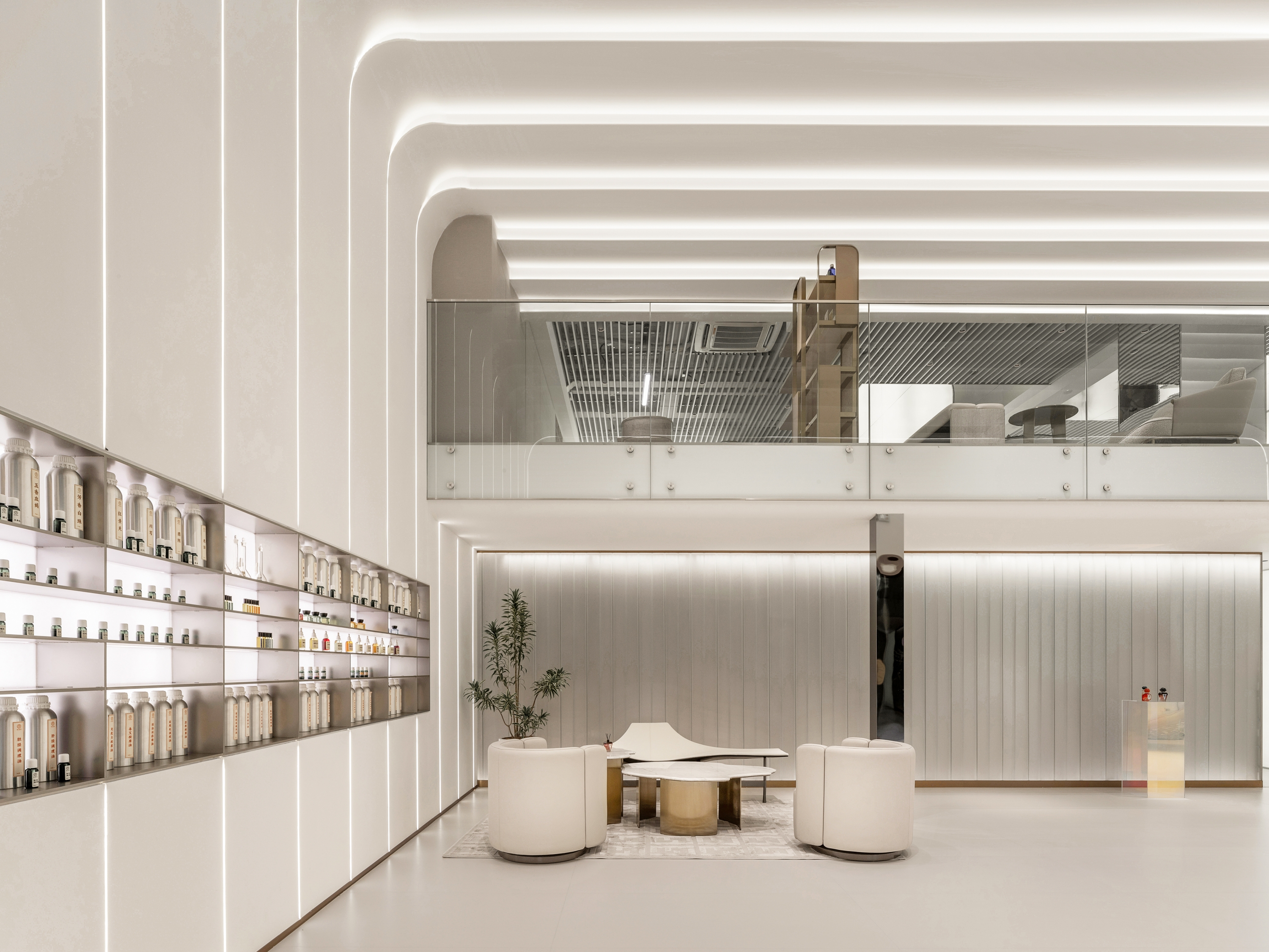 SI XIANG PU · AI Han-healing Aromatherapy Clinic is the world's first innovative brand that integrates traditional Chinese medicine aromatherapy with modern AI technology. In spatial design, the designers boldly transcend traditional boundaries, adopting pure white as the dominant color and ingeniously incorporating dynamic light bands filled with a futuristic technological aesthetic, meticulously weaving a modern urban oasis that exudes warmth and comfort. This unique space perfectly blends technological innovation with humanistic care, precisely aligning with the brand's value proposition of highlighting technological innovation and offering customers an unprecedented immersive experience.