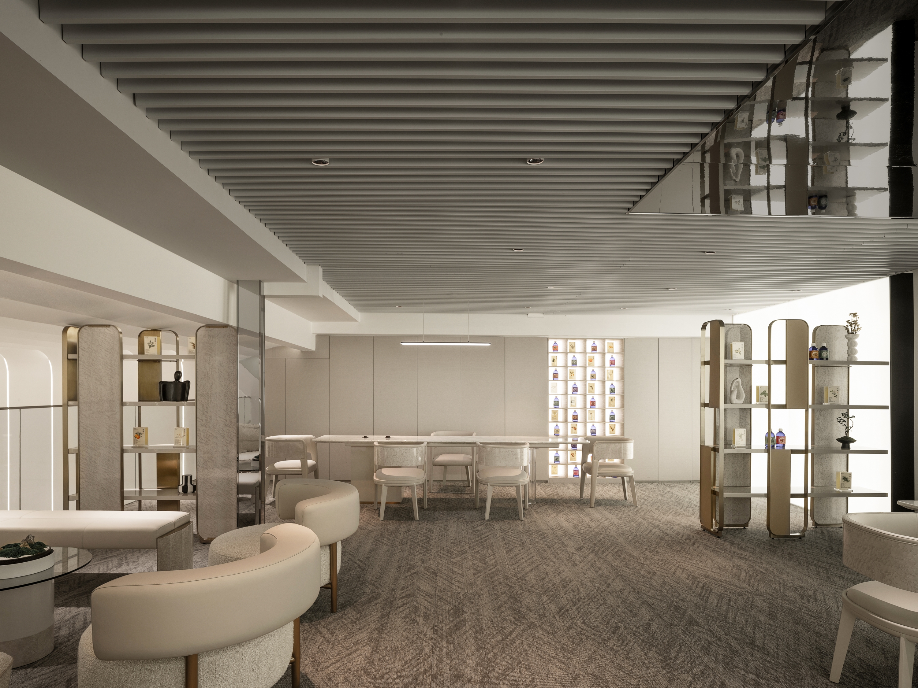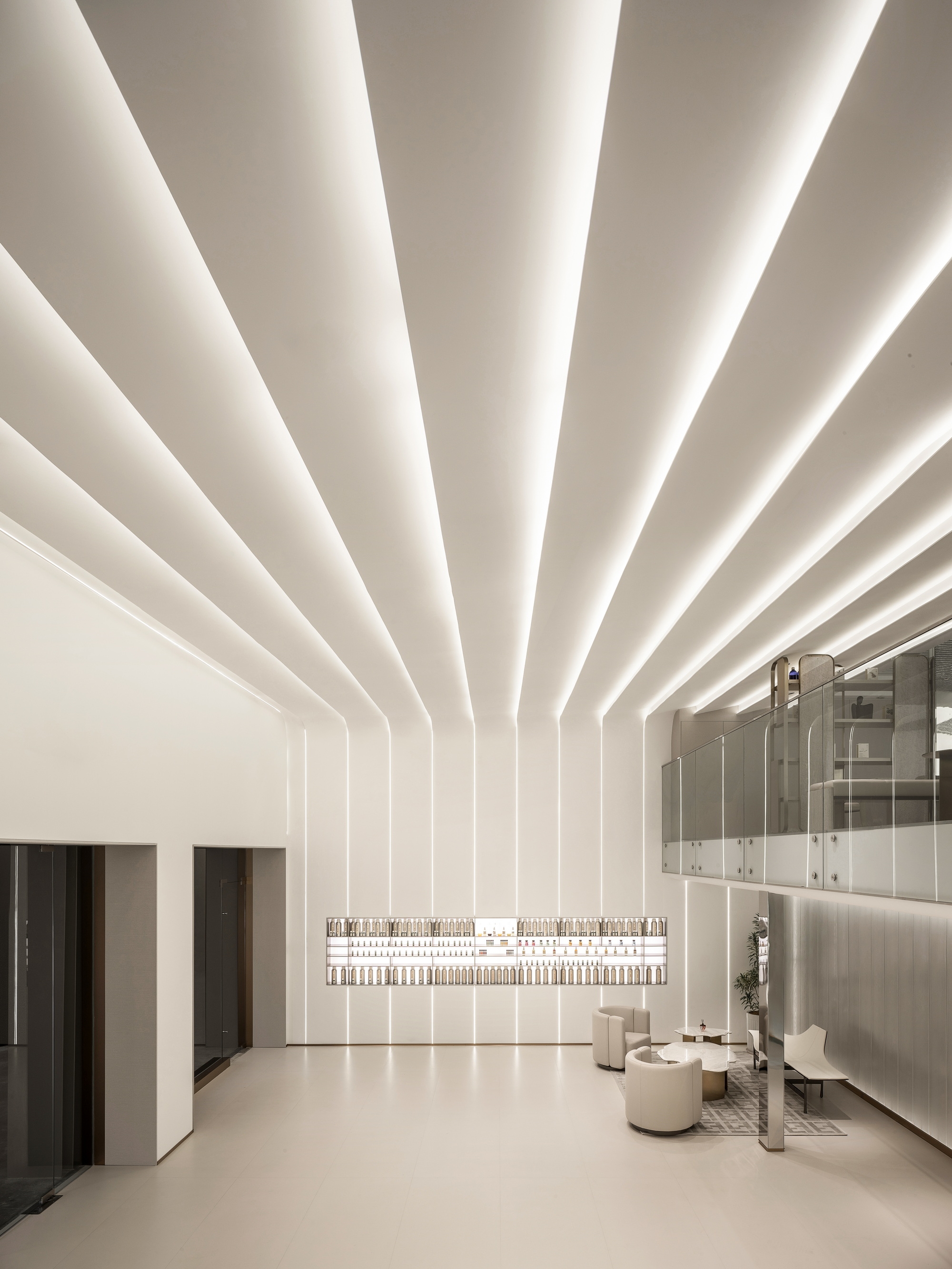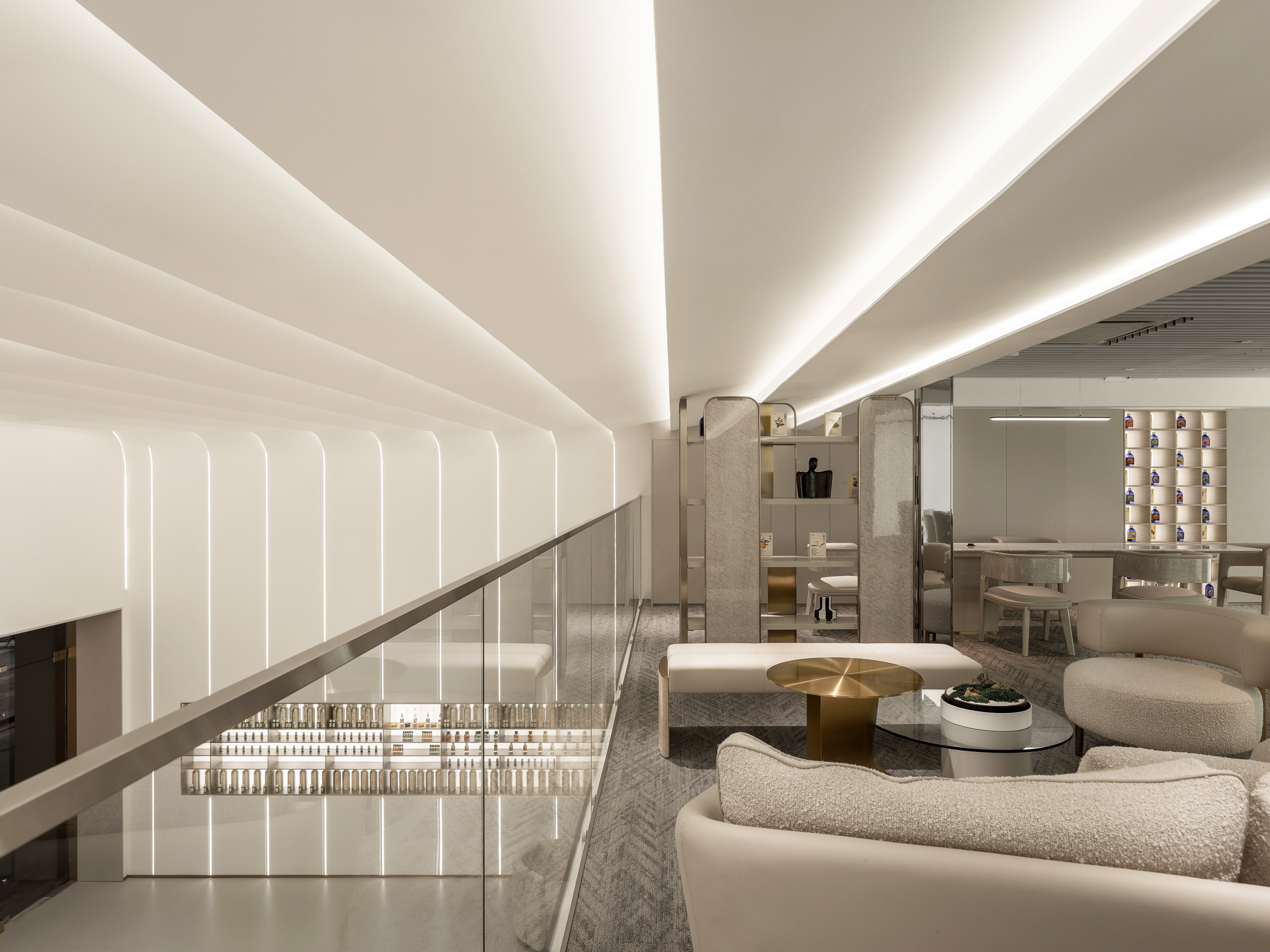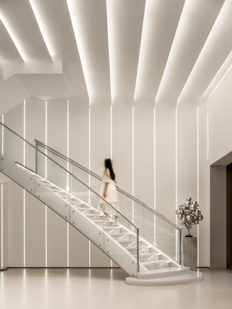 SI XIANG PU · AI Han-healing Aromatherapy Clinic is the world's first innovative brand that integrates traditional Chinese medicine aromatherapy with modern AI technology. In spatial design, the designers boldly transcend traditional boundaries, adopting pure white as the dominant color and ingeniously incorporating dynamic light bands filled with a futuristic technological aesthetic, meticulously weaving a modern urban oasis that exudes warmth and comfort. This unique space perfectly blends technological innovation with humanistic care, precisely aligning with the brand's value proposition of highlighting technological innovation and offering customers an unprecedented immersive experience.