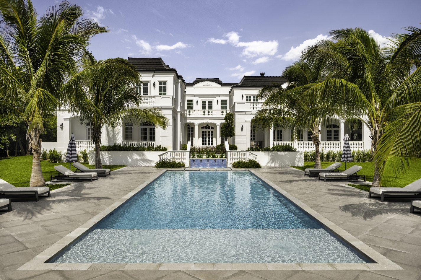 This residence showcases a modern style French chateau with a blend of traditional and contemporary elements.