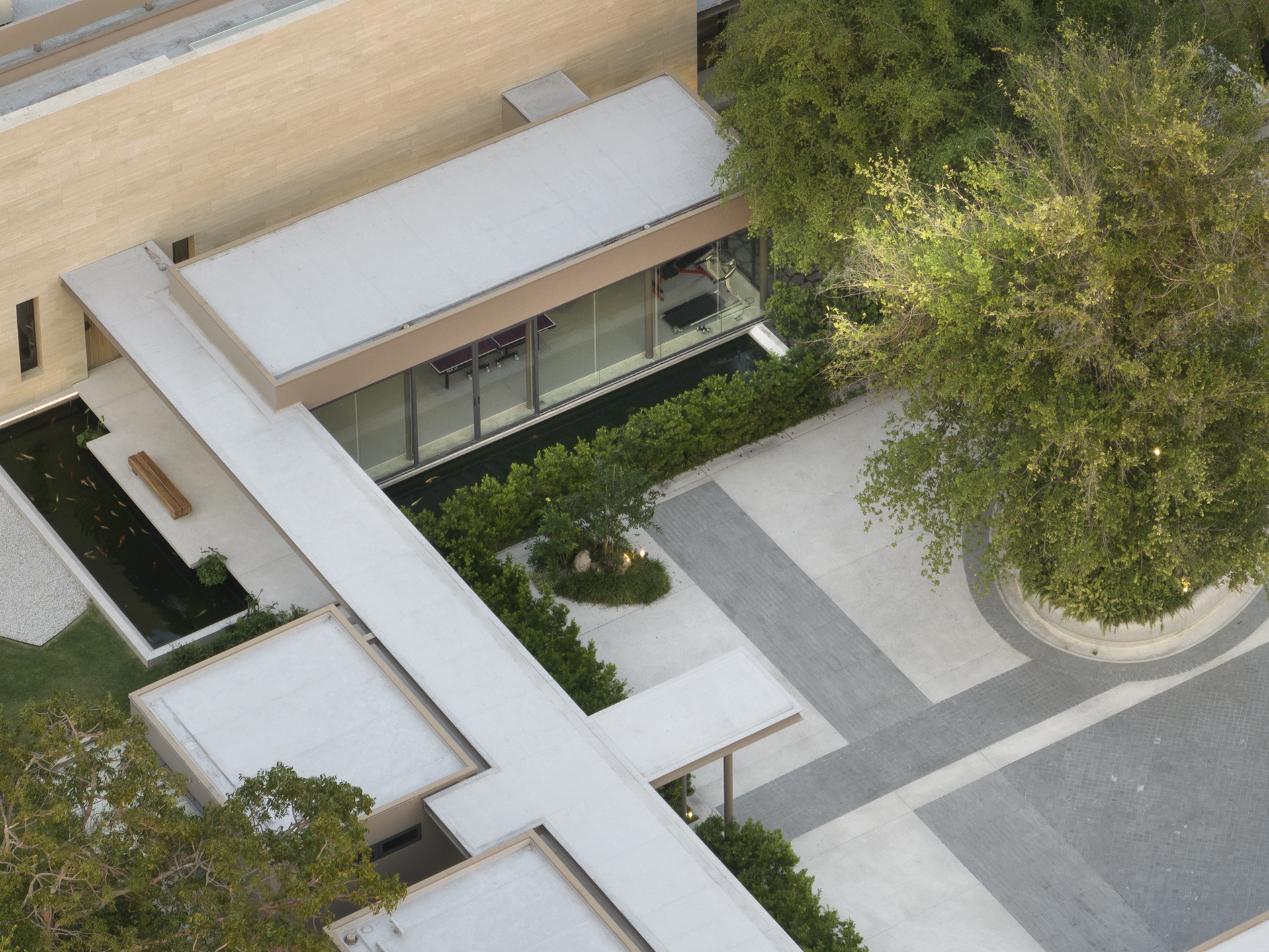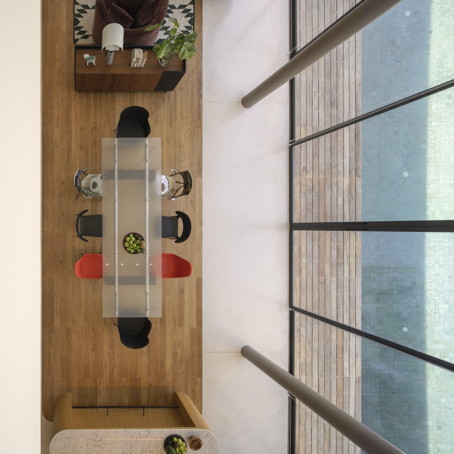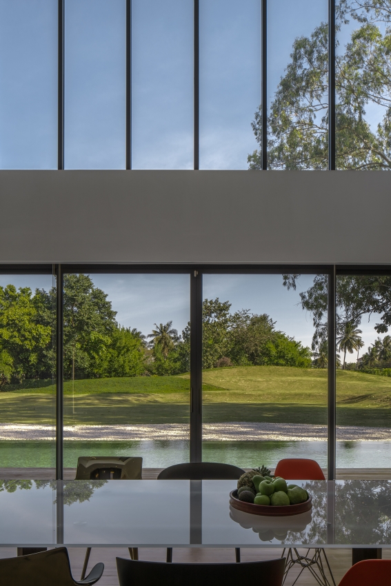 Sequence House, situated on a 3,200 sqm plot adjacent to a lake within a golf course in Rayong, Thailand, is designed for an extended family seeking both privacy and tranquility. Inspired by the Japanese Kaiyu-shiki-teien (Stroll Garden) concept, the layout guides visitors through a thoughtfully curated journey of serene experiences. Upon arrival, guests are welcomed at the entrance and led through a peaceful front garden with various viewpoints. The journey begins at the arrival court, gym and reception room, offering glimpses of the property’s natural harmony. Beyond a Travertine wall, guests enter the private zone, where they are greeted by the stunning centerpiece—the back garden, featuring the Karesansui, a dry rock garden, meticulously positioned to be viewed from the main house’s living and dining rooms. The house was built in a very simple concept, undecorated style, reminiscent of the Japanese architecture in The Edo period, called Sukiya style, a prototype for future Japanese architecture. This design seamlessly blends openness with seclusion, creating an inviting yet intimate retreat for family and friends.