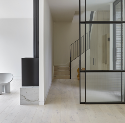 Brief was to design 1 owner occupied generously sized family townhome fit for future generational change and another detached dwelling for investment opportunity . A multi residential development of only 2 townhouses was a challenge on a small site together with planning restrictions at hand. Refined detailing and carefully composed series of new solid volumes dictated by program within. A paired back earthy and calming interior complements the exterior expression.