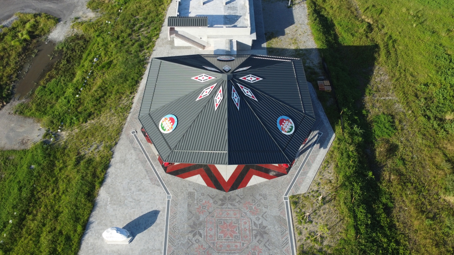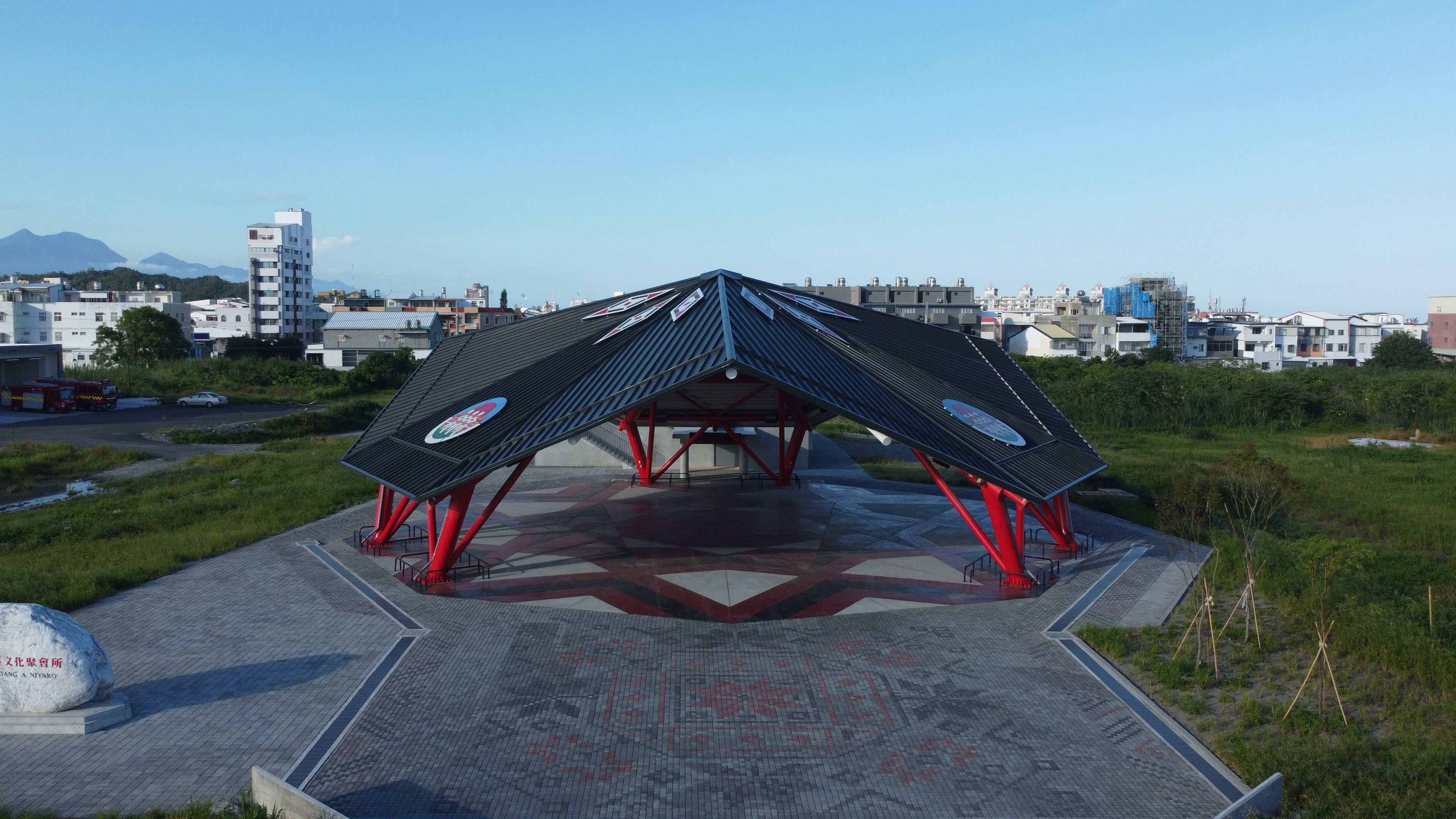 The building uses red, black, and white, the main colors from traditional Amis attire. The umbrella-shaped exterior and nonagonal layout accommodate traditional Amis dances, allowing the tribe to form a circle to celebrate the annual harvest. The Amis place great importance on age hierarchy, ancestors, and deities. Therefore, the roof is lifted at the corners, facing the sun god and the elders’ residence, symbolizing a welcoming entrance. Three trusses support the structure, balancing wind and seismic forces while representing the three age groups in Amis mythology. Traditional Amis totems around the building declare it as their property and symbolize respect for deities, nature, and ancestors.