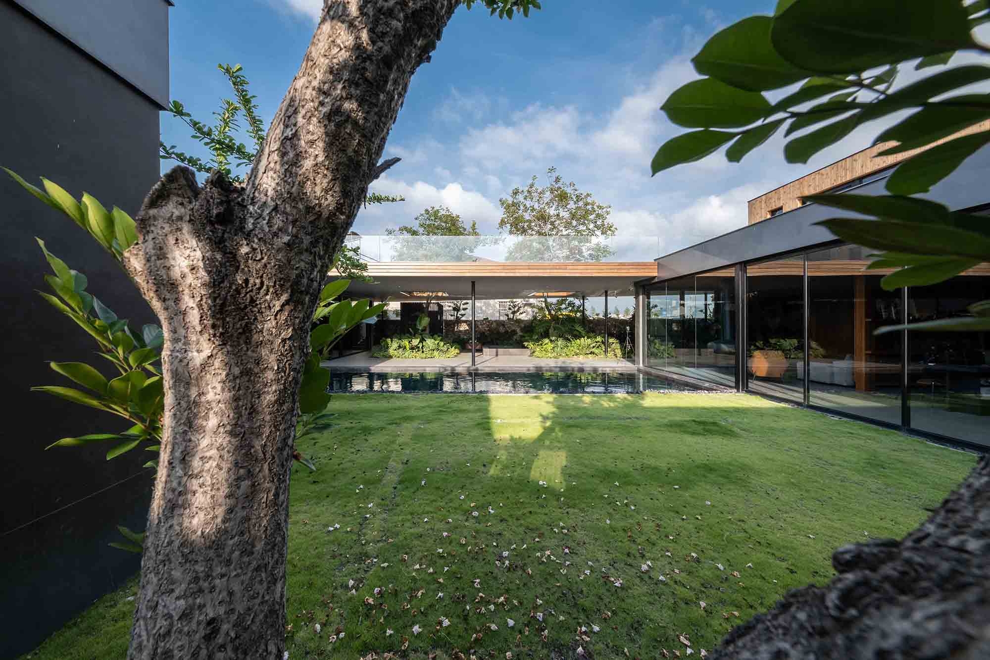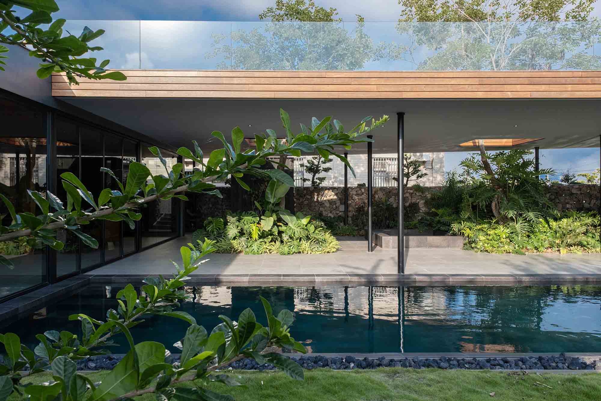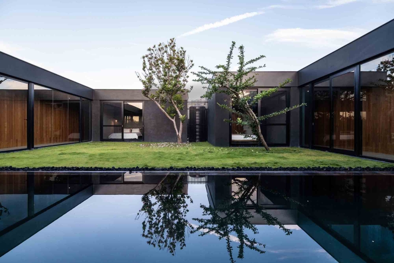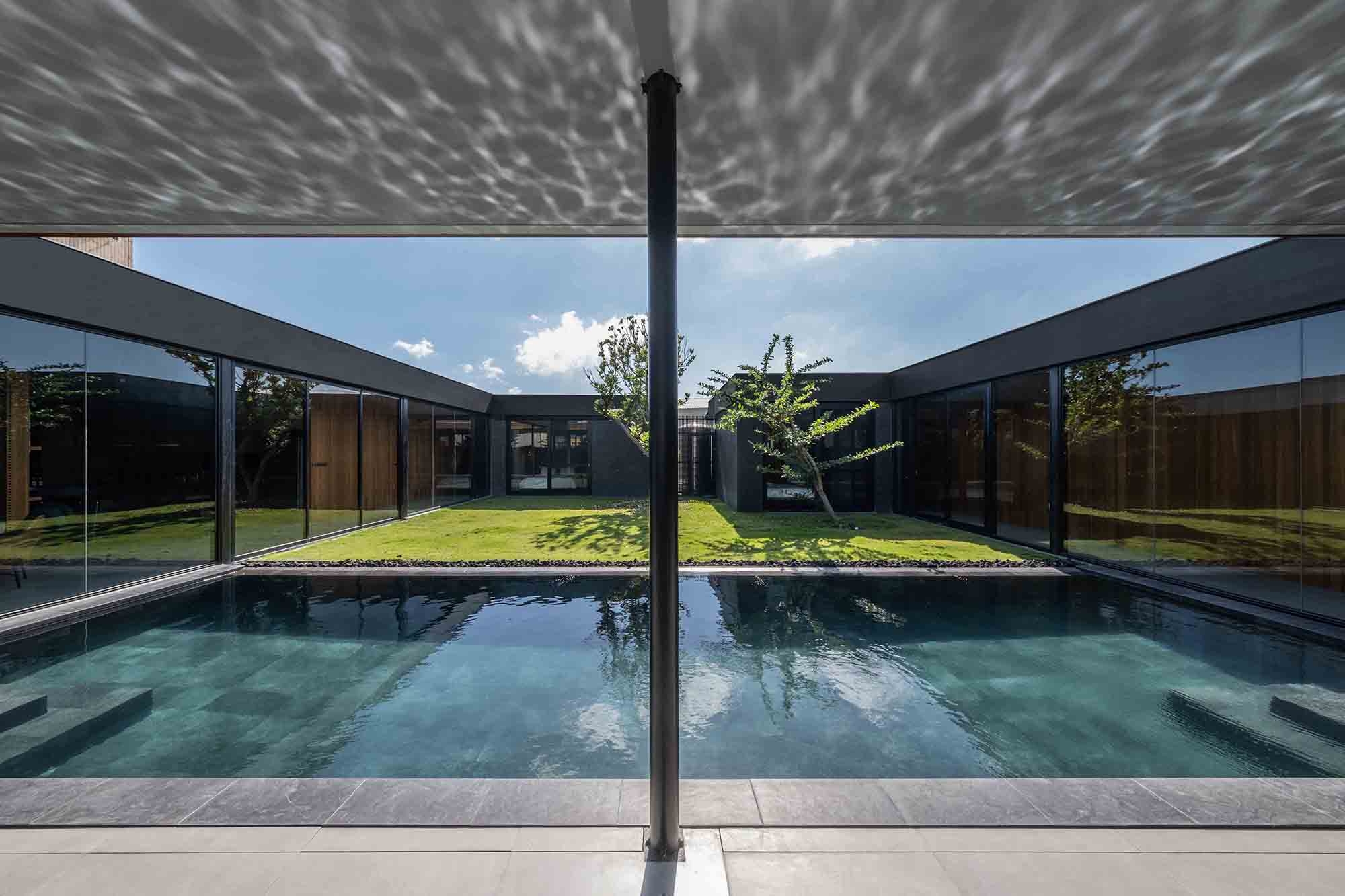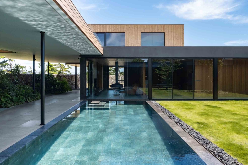 This exquisite vacation home serves as a serene retreat for two brothers and their families. To achieve a harmonious balance between independence and connection, the designer thoughtfully employed a O-shaped layout. This innovative design not only safeguards the privacy of each household but also fosters interaction through a shared, cohesive atrium, enhancing family bonds. Moreover, the residence is infused with a modern South Pacific style, which brings a refreshing, laid-back resort atmosphere to life. This design aesthetic elegantly blends natural elements with contemporary comforts, resulting in a unique holiday paradise. Consequently, residents can fully immerse themselves in a tranquil environment that is both modern and intimately connected to nature.