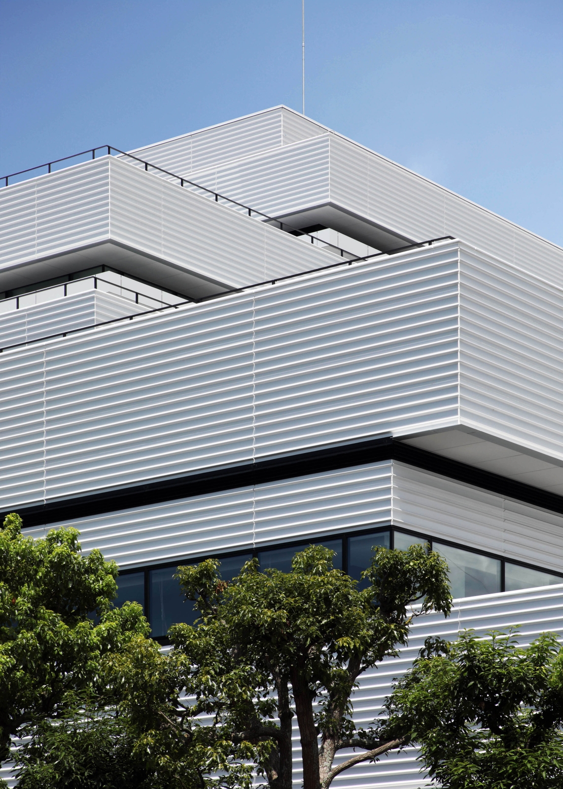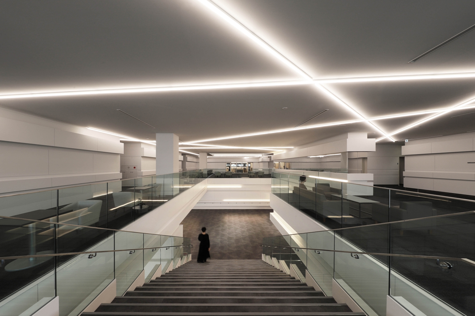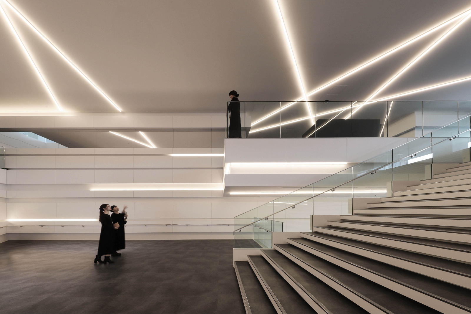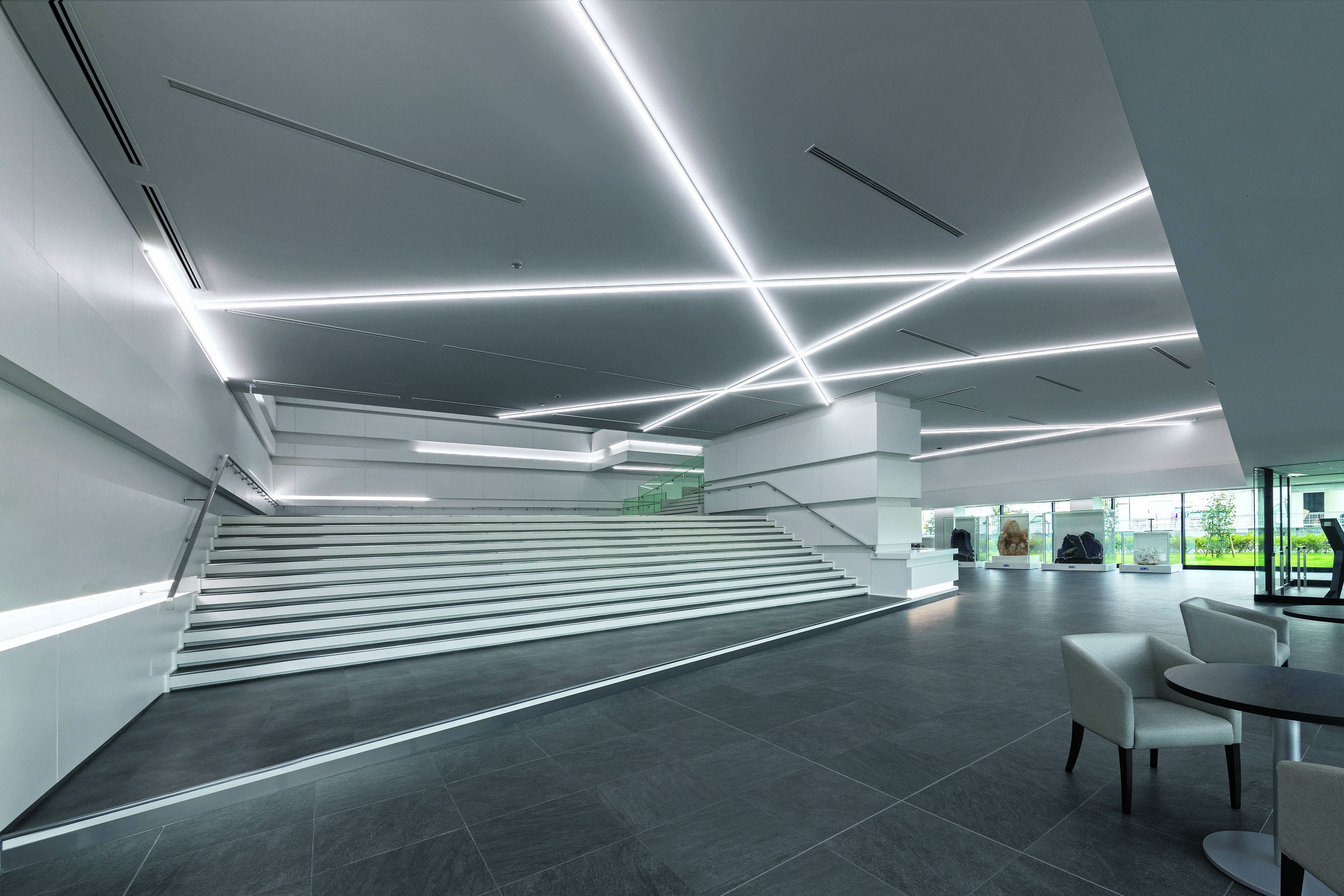 DAISHINKU CORP. is a leading Japanese manufacturer of quartz devices. This project creates a smart factory integrating headquarters and plant functions on a site. The exterior design, inspired by stacked crystal chips, features five layered rectangular volumes of different sizes, symbolizing DAISHINKU’s technological innovation and growth.?A crystal chip’s frequency characteristics depend on its thickness and angle. The architectural design emphasizes this by layering volumes of varying thicknesses, shaping a space that embodies the identity of DAISHINKU. This concept extends to the interior space. Each floor is organized around an atrium pierced through the center, with natural light from the skylight spreading across each layer. This stimulates encounters and communication among workers on different floors. The line lighting, based on unique angles, intricately combines to create a lighting environment that embodies the identity of DAISHINKU. This holistic design integrates architecture, interior, and lighting, reinforcing DAISHINKU’s commitment to innovation while providing a symbolic and immersive spatial experience.