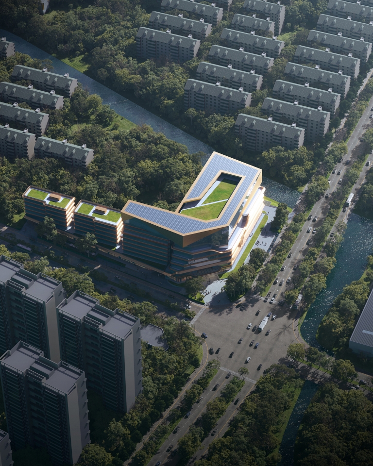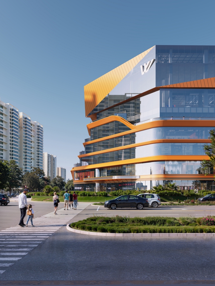 W City Crown is a multifunctional urban sports complex located in Cangnan, China. The design blends sports, ecology, and community services in a flowing architectural form inspired by the letter "W", symbolizing “between two mountains.” The project integrates a public sports center, neighborhood service hub, and business facilities into a vibrant, inclusive destination for people of all ages. Its undulating structure echoes the surrounding mountain landscape, forming a distinctive crown-like silhouette that stands as a visual landmark in the city. With expansive urban frontage and an open, layered layout, the building fosters connectivity and interaction between people and place. The rooftop doubles as a professional basketball training venue, hosting elite teams in preparation for national competitions. Emphasizing sustainability, cultural continuity, and a human-centered philosophy, the design reimagines the traditional sports venue as a shared urban living room—an inviting space where daily life, recreation, and community culture seamlessly converge.