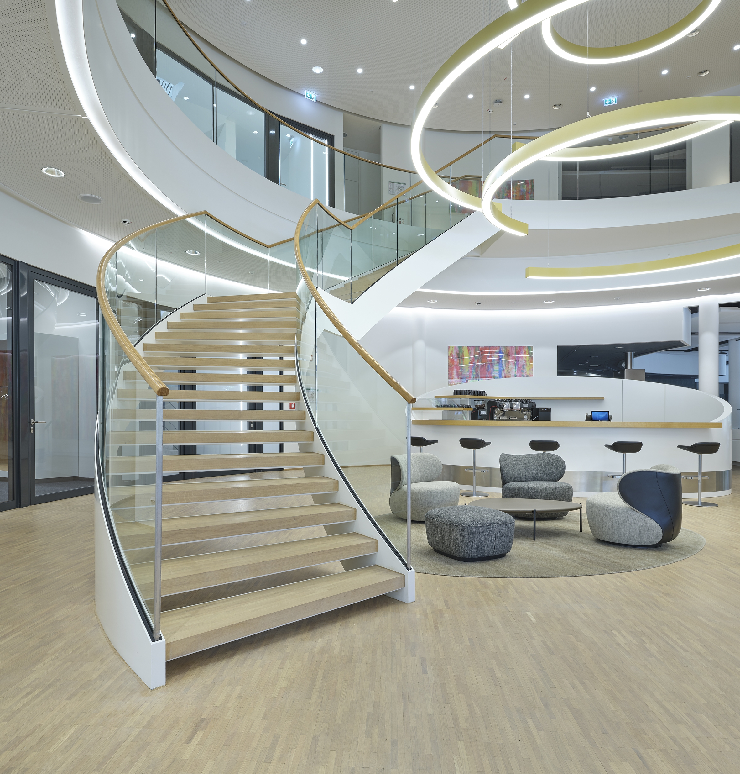 Out of several design proposals for the new administration building, the decision was made in favour of the “Welcome” concept. This motto is reflected in all areas, from the architectural design of the building to the interior design and furniture. The innovative and modern design—both inside and out—creates ideal conditions and a high-quality working environment through its multifunctional layout.