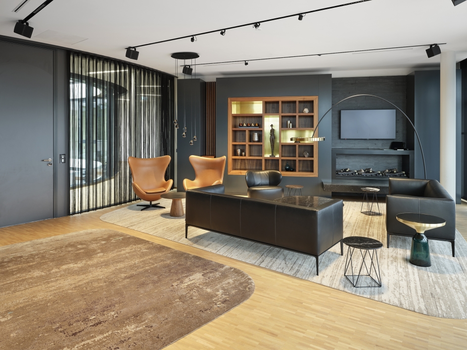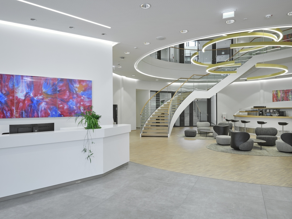 The bright and spacious visitor reception area on the ground floor offers a welcoming first impression. Together with the floors above, it acts as a central distributor and meeting point. Open-plan office spaces for the Marketing, Advertising, International Sales, and Supervisory Board departments characterize the building. This contemporary working atmosphere, the new company restaurant and terrace, training areas, multimedia exhibition spaces, and individual quiet zones are just some of the new features added to the company premises.