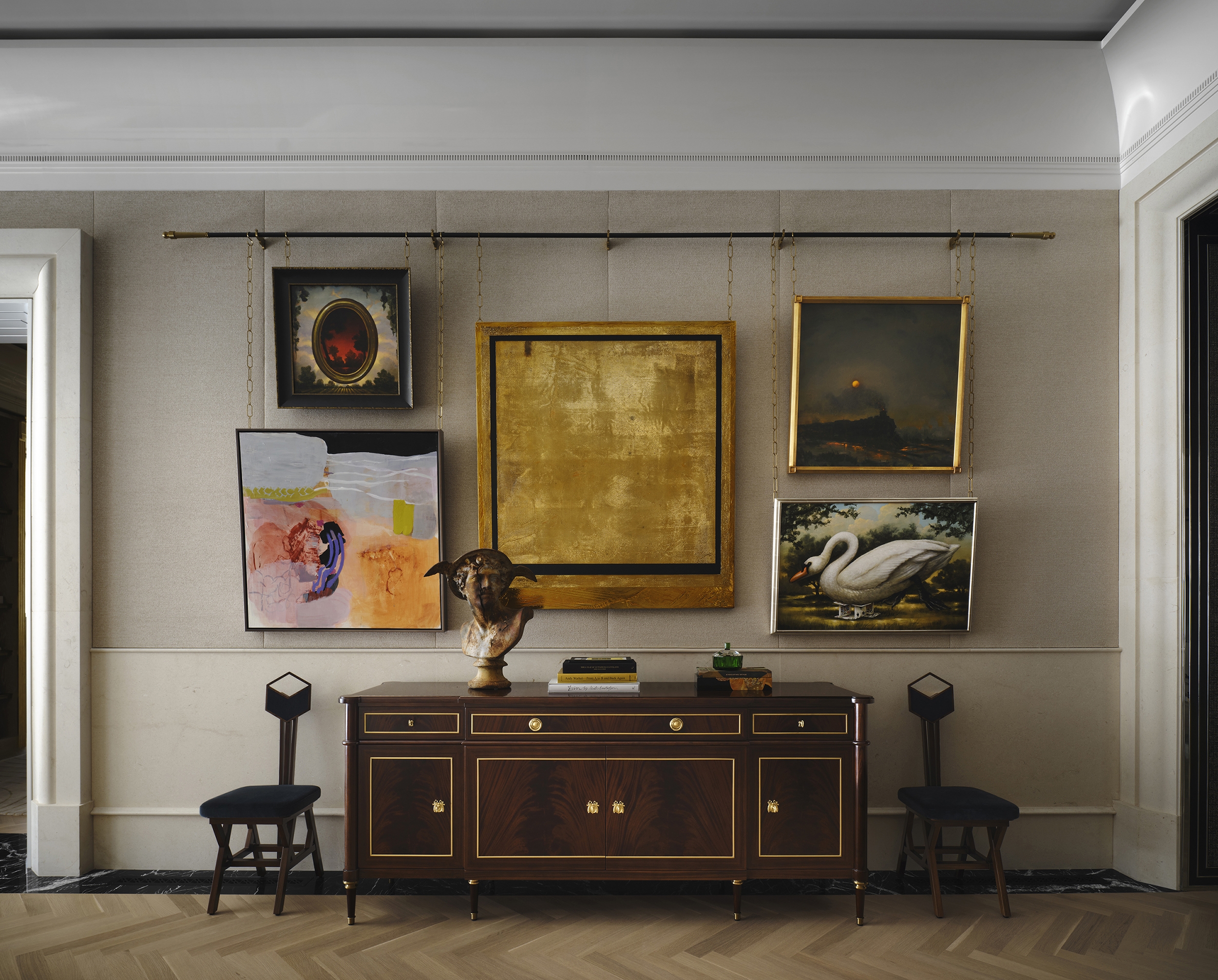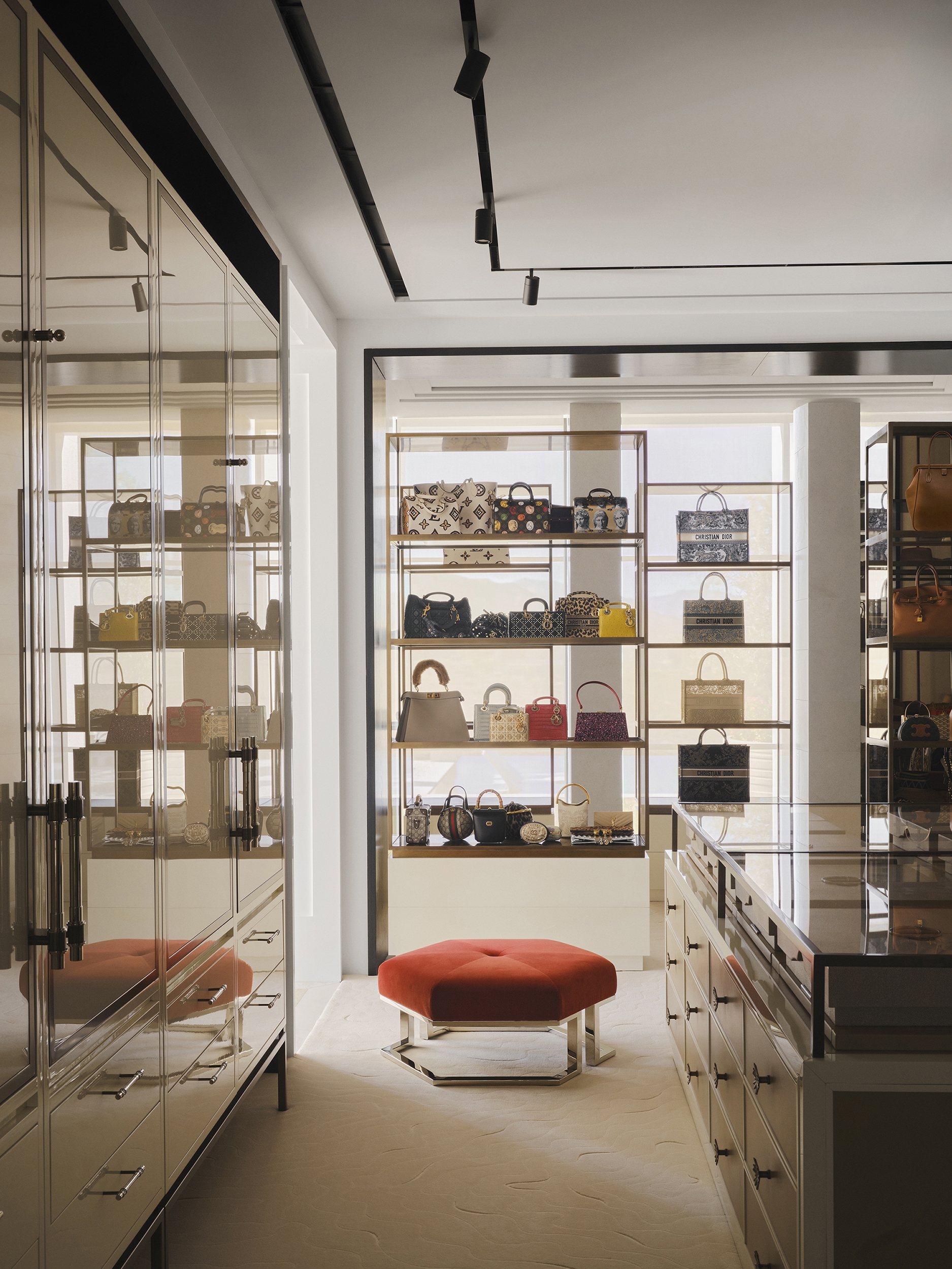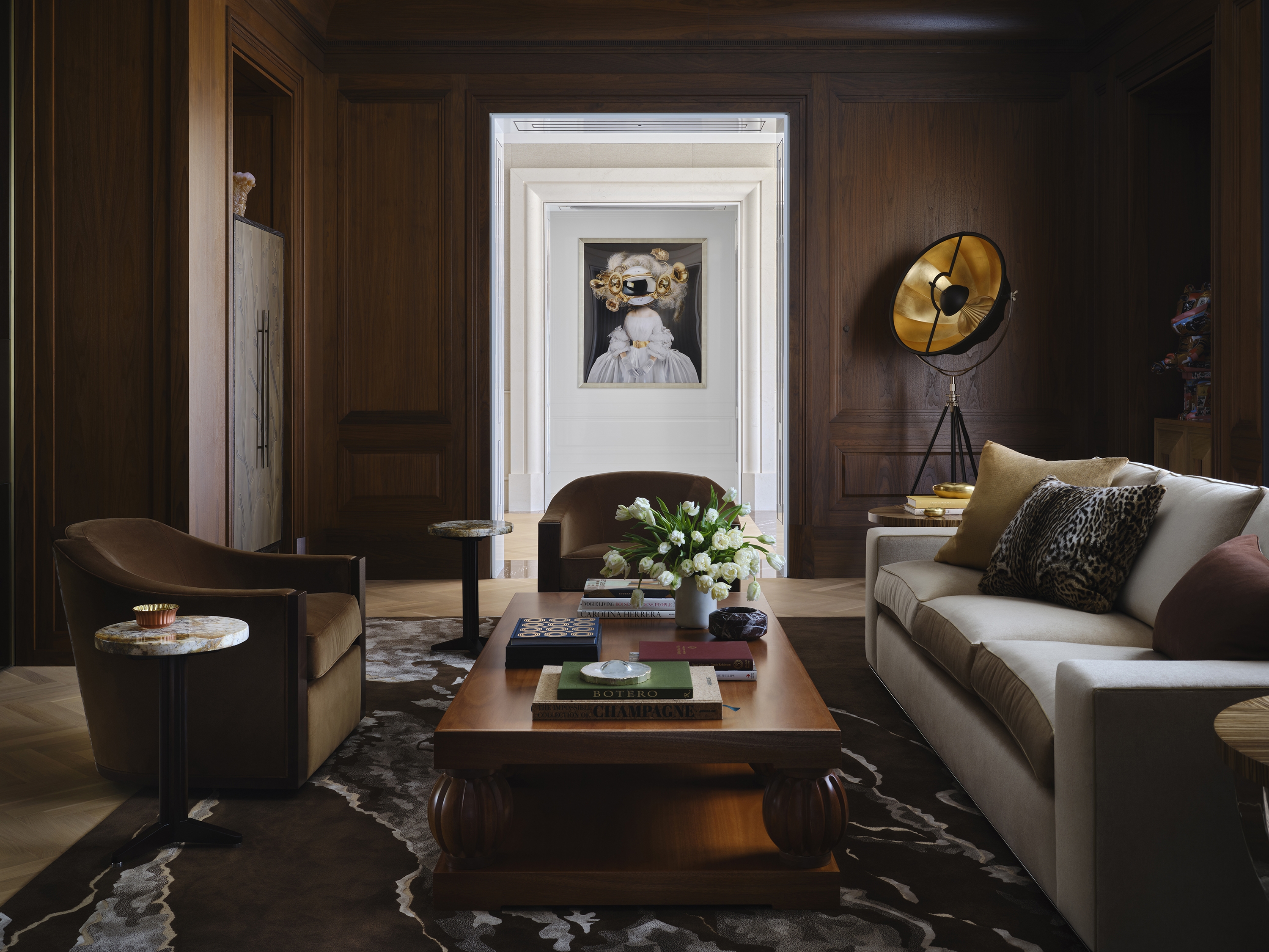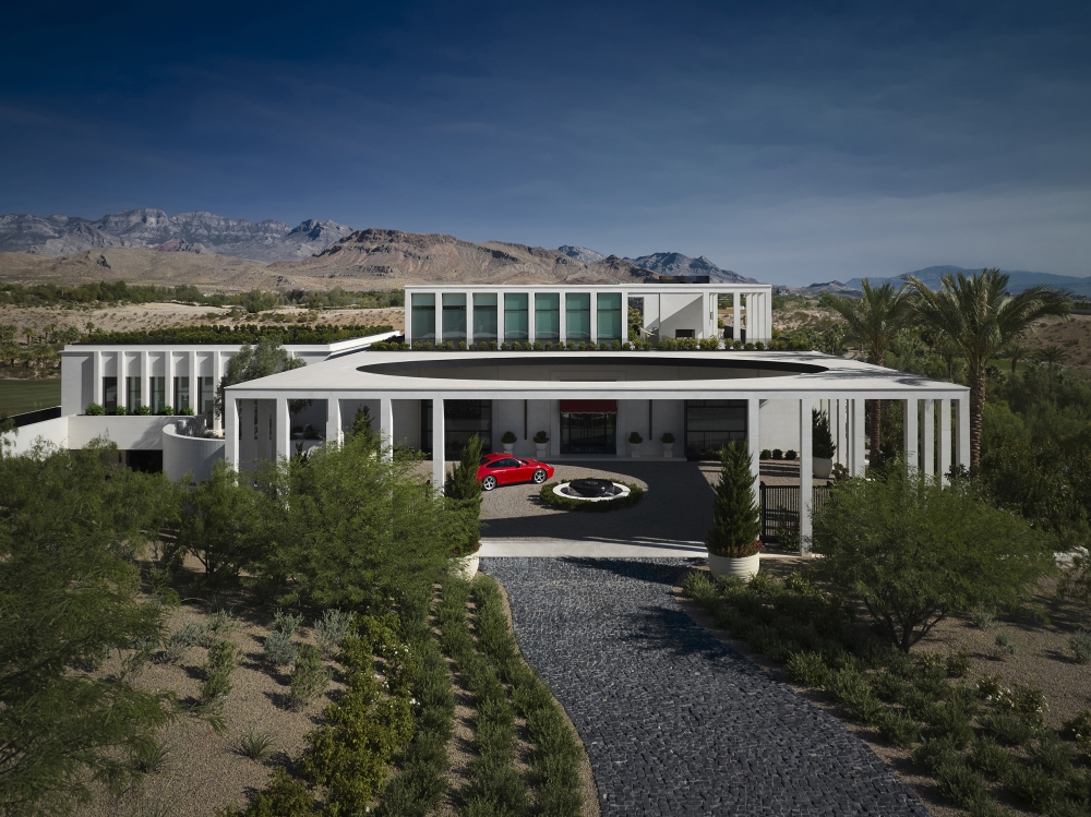 The architecture asserts a striking presence through bold geometries and rhythmic colonnades, while the interiors offer a contrasting counterpoint: layered, immersive, and richly tactile. Spaces shift between openness and intimacy, sculpted by light and shadow. Warm wood tones, reflective surfaces, and a curated interplay of textures soften the exterior’s formal rigor, shaping an environment that is both refined and expressive.